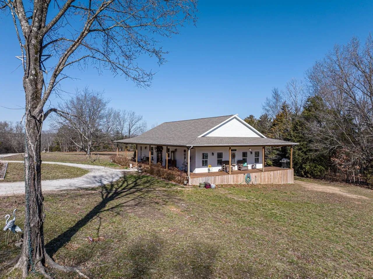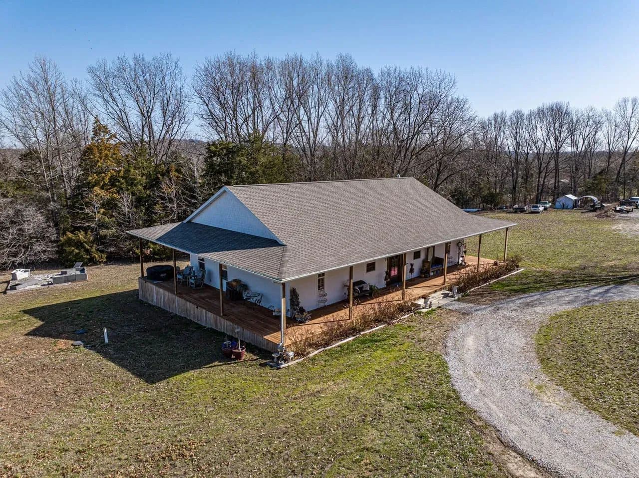 Amazing custom lakeside home built in 2022 riverside at the Kings River in Shell Knob, MO in Table Rock Lake area. This three bedroom and two bath home is on 10 +/- acres with a spacious shop that has an additional one bedroom and one bath located in it. The shop is walled, insulated and has heat and air. This property can be your new primary residence and use the property as a hobby farm, small horse ranch, garden paradise, business location and much more. Also could potentially use location as an investment for Air BNB, retreat rental or other revenue generating opportunities! The property is located within minutes from Dogwood Canyon Nature Park and Pine Ridge Pass Trailhead, 14 minutes to Shell Knob, 17 minutes to Berryville, AR, 27 minutes to Eureka Springs, AR, 40 minutes to Branson and Silver Dollar City area, about 1 hour to Bentonville, AR and 1 hour 15 minutes to Springfield, MO. This home is custom made with gorgeously finished flooring, wood walls and ceilings. The home siding is very durable Hardie siding. All interior and exterior walls have been insulated and plenty of windows throughout the home along with a wrap around porch. The property has a small pond and there are water spigots located in many areas around the property so access to water for whatever purpose should never be an issue. The property has a generac back up generator that powers the whole house if there was ever a loss of power to the property.