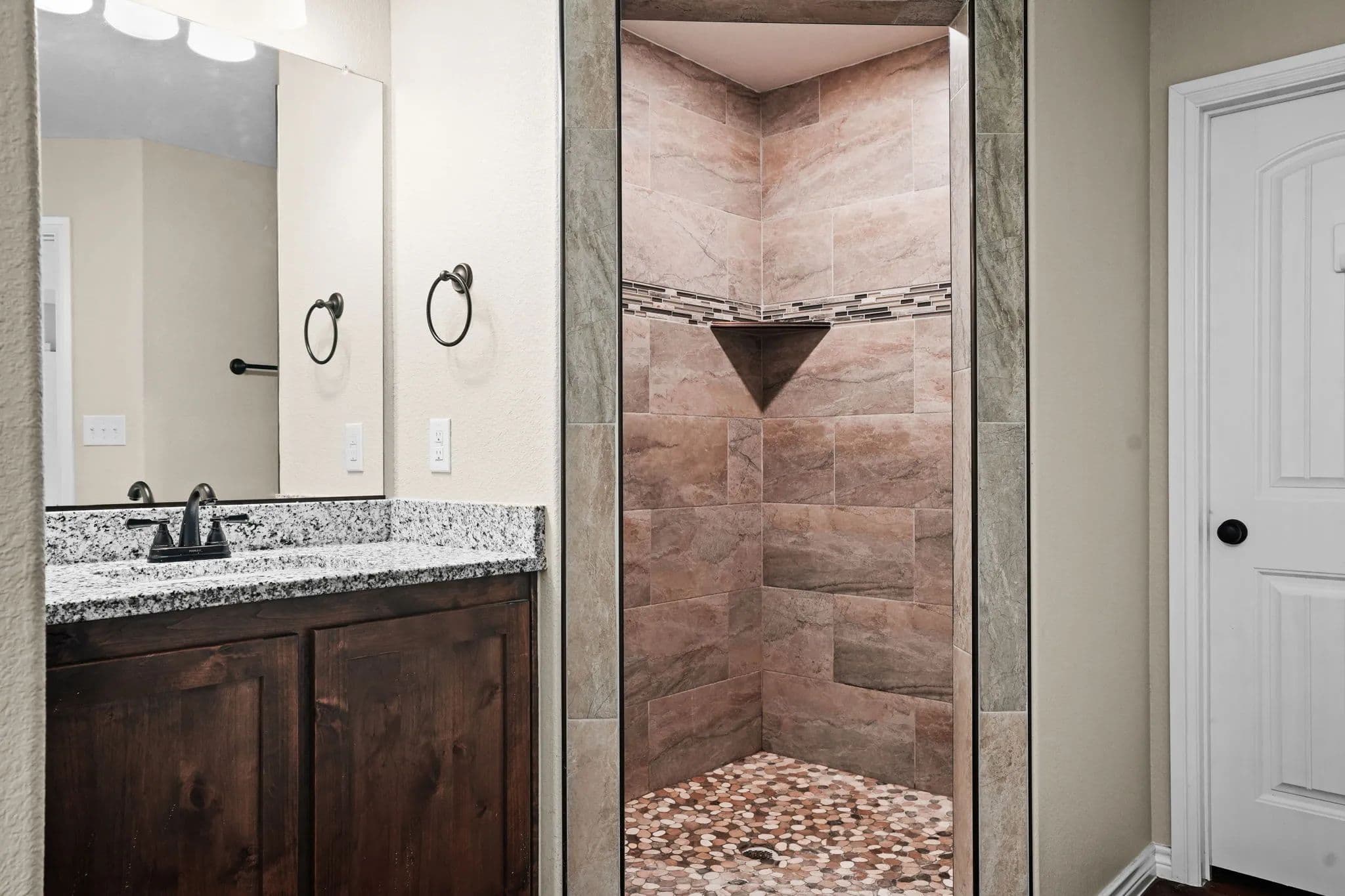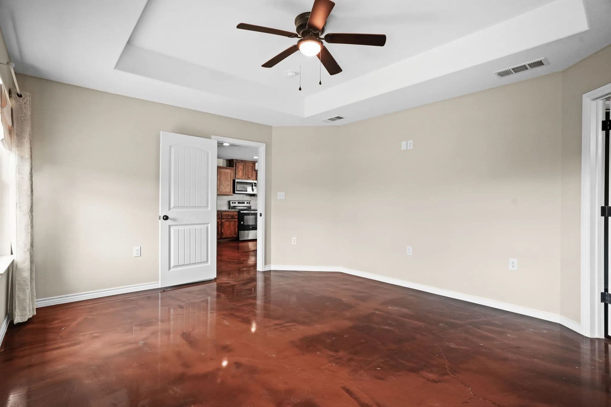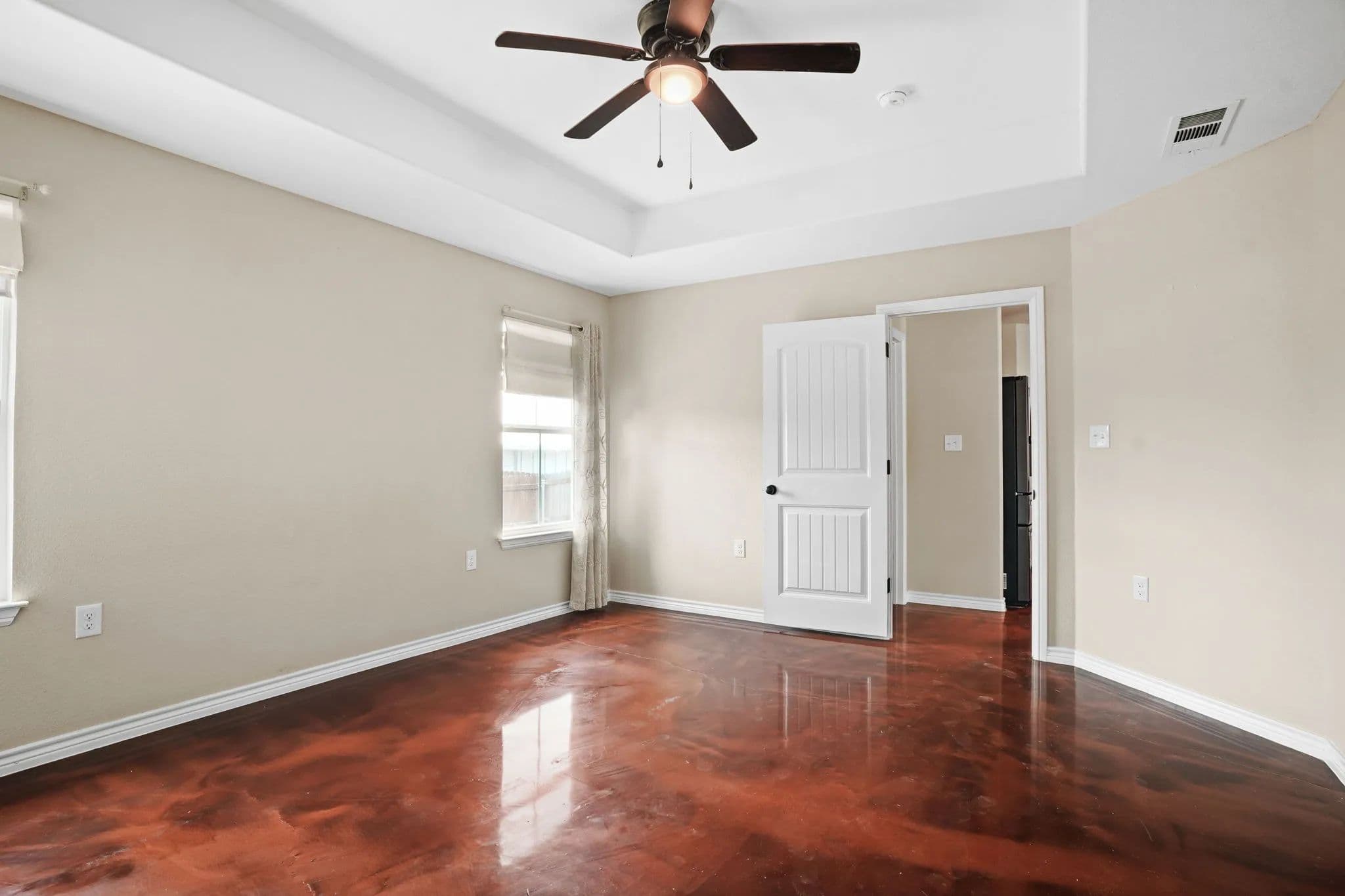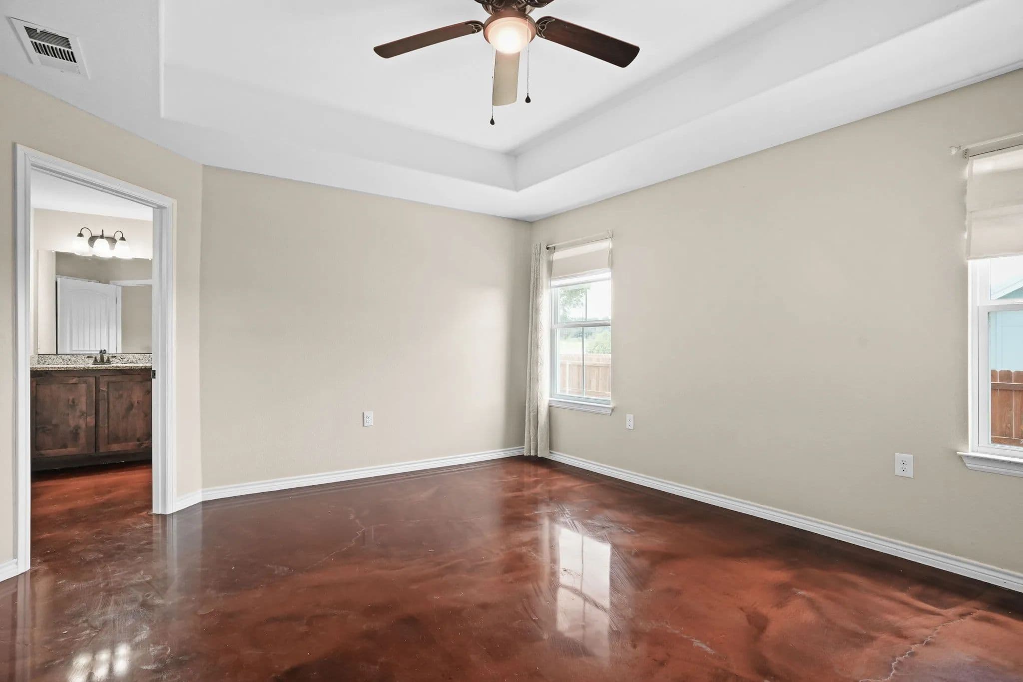 This spacious 3-bedroom, 2-bathroom home in the desirable Stone Valley Subdivision offers a perfect blend of functionality and luxury. With concrete floors throughout, an open and split floor plan, and a double garage, this property is perfect for families looking for a comfortable and practical living space. The kitchen is equipped with a breakfast island, separate dining space, custom cabinets, walk-in pantry, and stainless steel appliances that convey. The master bathroom features a double vanity, his and her closets, and a doorless walk-in shower, while the privacy-fenced backyard provides ample space for outdoor recreation and relaxation. Plus, the property backs up to a plot of land that will not be developed, ensuring a peaceful and serene atmosphere. The neighborhood is also great for outdoor activities like walking, biking, and playing, making it an ideal location for families.