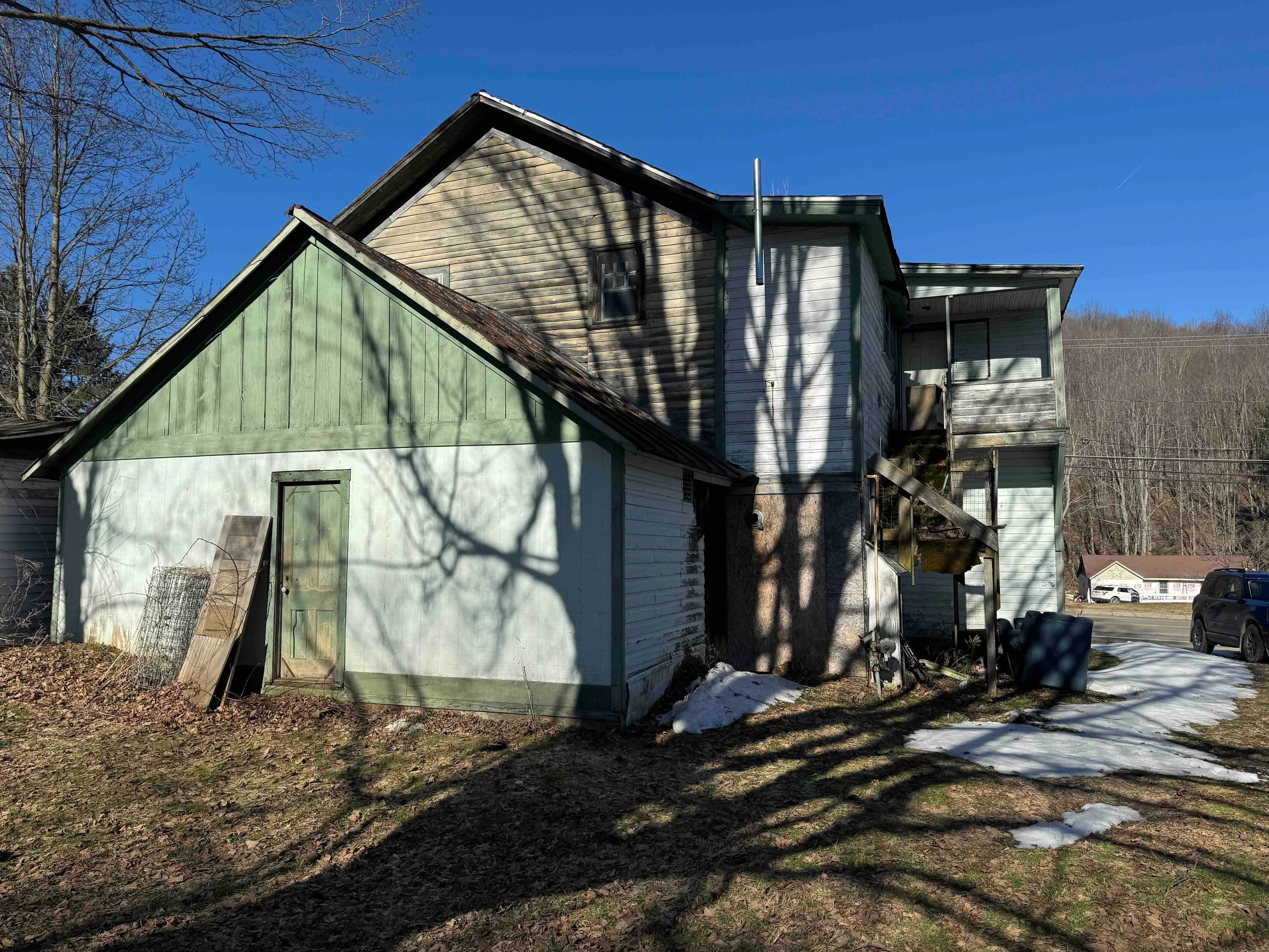 Featuring wood siding and an asphalt roof, the building has an upper deck that could easily be converted into a duplex, offering separate upper and lower rental units for additional income. With some vision and updates, this property could serve as a multi-unit rental, a large single-family home, or even a commercial/residential mix, the possibilities are endless!