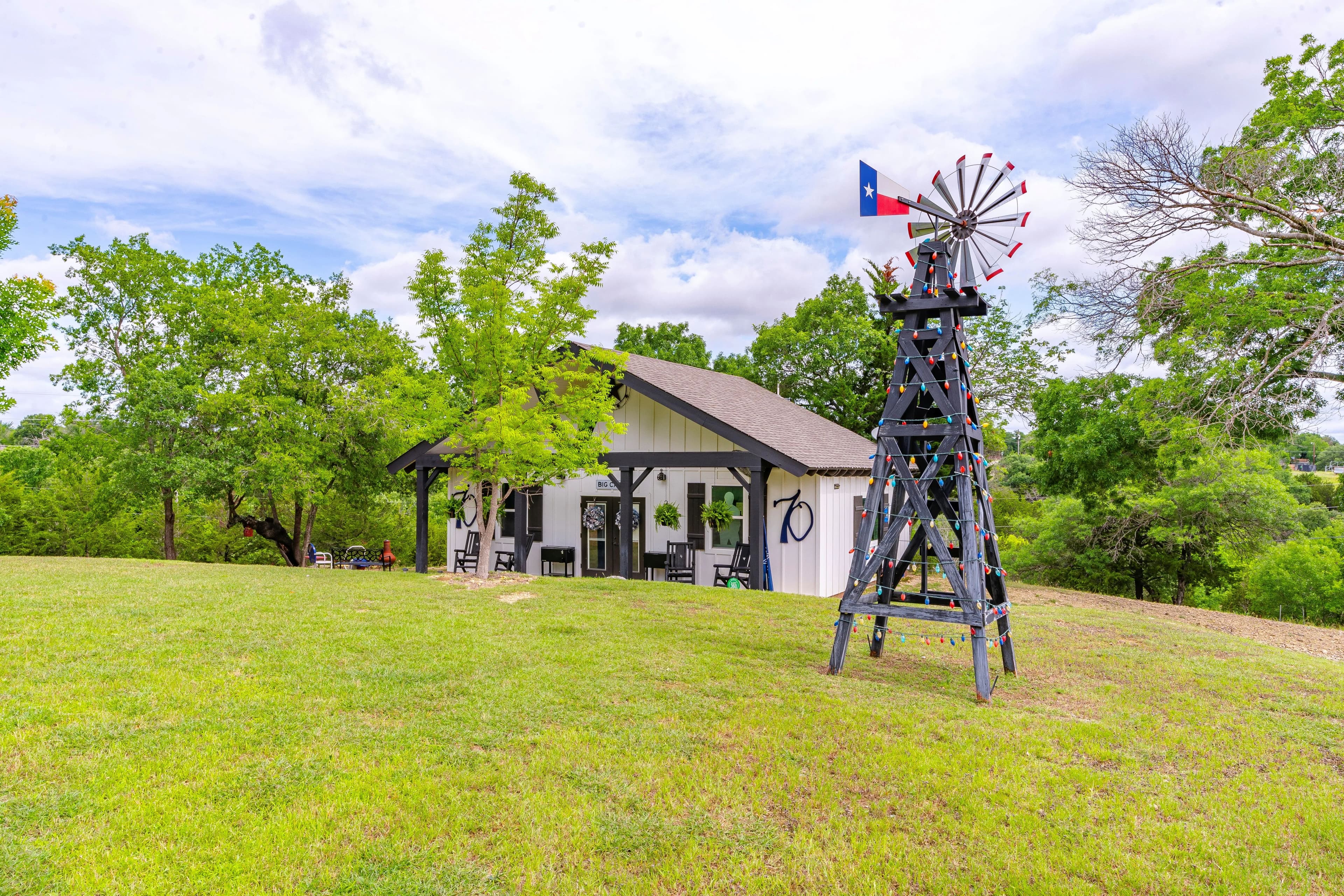 Imagine finding your haven of tranquility in this stunning 2.3-acre property. In the main house, a large open floor plan creates an inviting space perfect for entertaining or family gatherings. Upstairs you’ll find 4 bedrooms and 2 full bathrooms, with a second-floor game room that could be transformed into an additional bedroom. Beyond the main house, the expansive lot is perfect for all your recreational toys, 2 horses allowed, a pond with a floating aerator fountain is stocked with catfish, perch and crappie. The backyard is an oasis with a pool, and fountain, where you can unwind while watching the deer graze peacefully. The backyard features a dedicated dog run for your furry friends' enjoyment. The inviting guest quarters is currently utilized as an entertainment-sports retreat. Just 5 minutes away, you'll find the Lake Weatherford Marina and a nearby golf course. This property offers a unique blend of comfort, convenience, and the spaciousness and tranquility of country living.