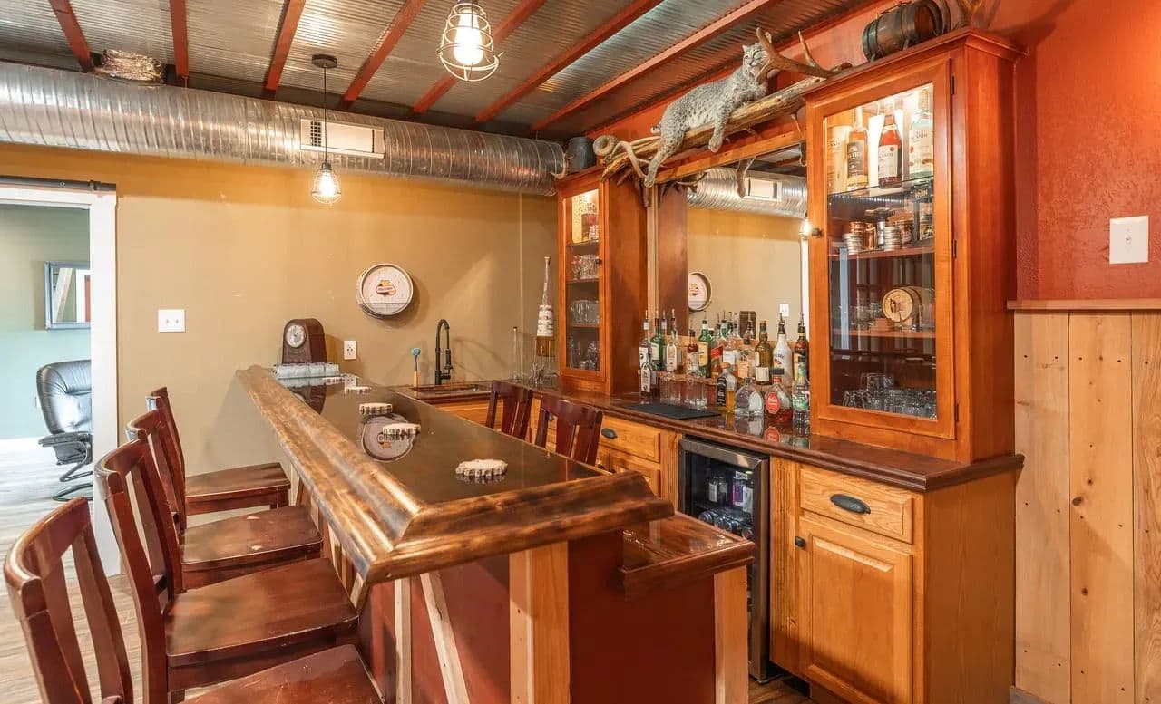 The walkout basement boasts two additional sleeping rooms, a full bath, and an antique tavern-style bar—a true homage to timeless charm. Plus, the man cave offers the perfect hideaway for relaxation or hobbies. A three-car garage provides ample space for vehicles or storage.