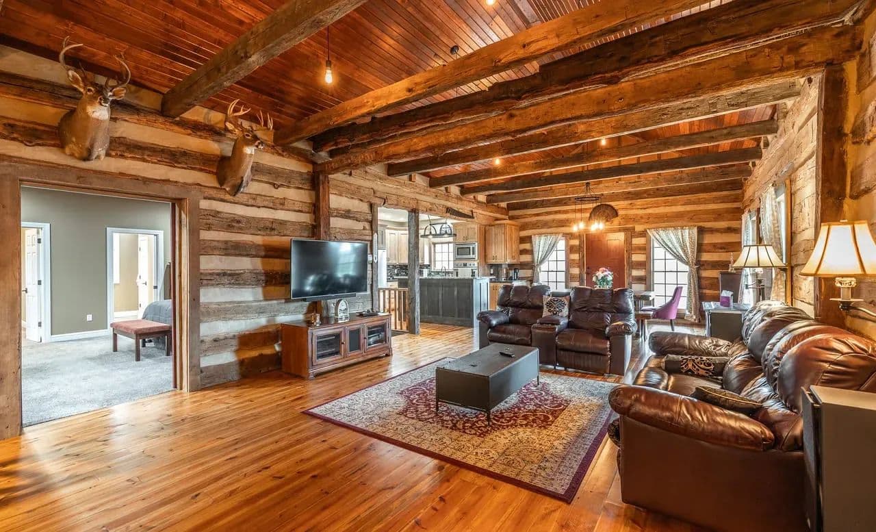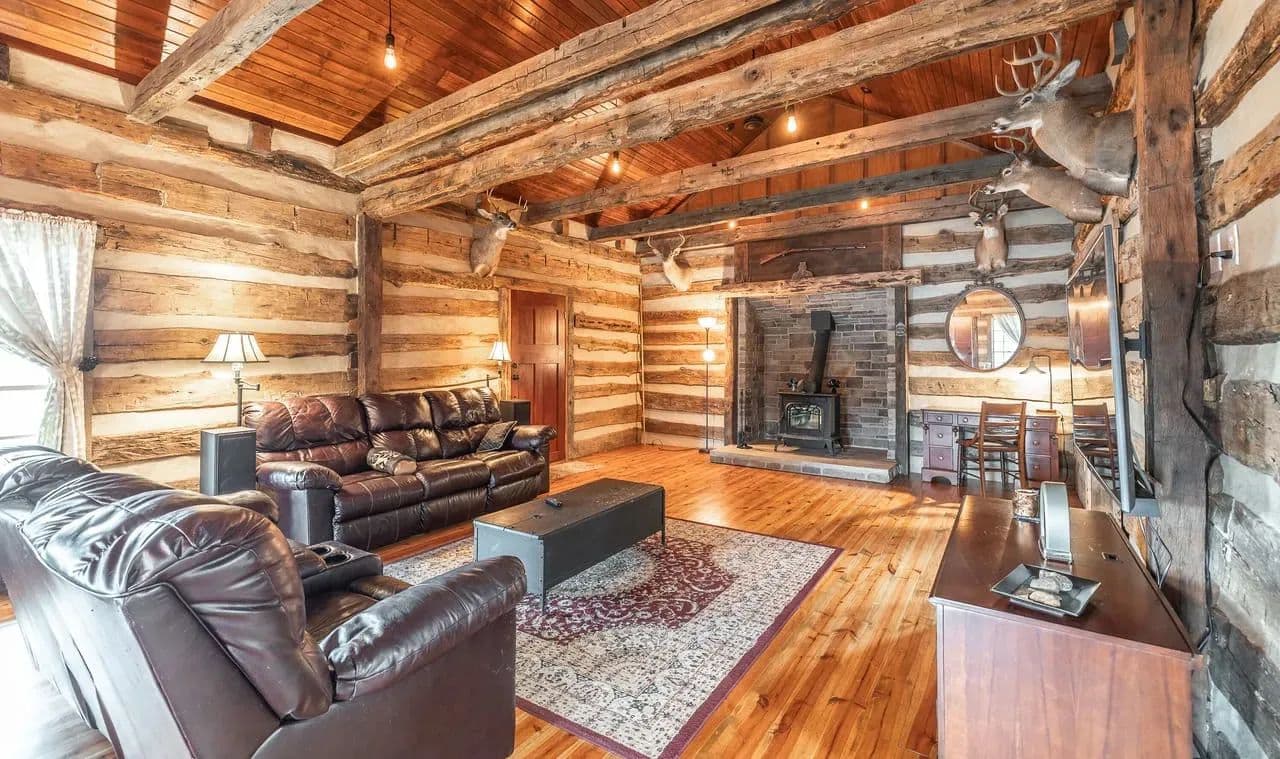 Step back in time while enjoying modern-day luxury with this stunning 160-year-old log home, thoughtfully updated and set on a solid modern foundation. This charming retreat features a spacious two-bedroom, two-bath layout upstairs, complete with a walk-in closet. Cozy up by the wood stove in the inviting living room or whip up culinary delights in the modern kitchen adorned with upscale appliances and gleaming granite countertops.