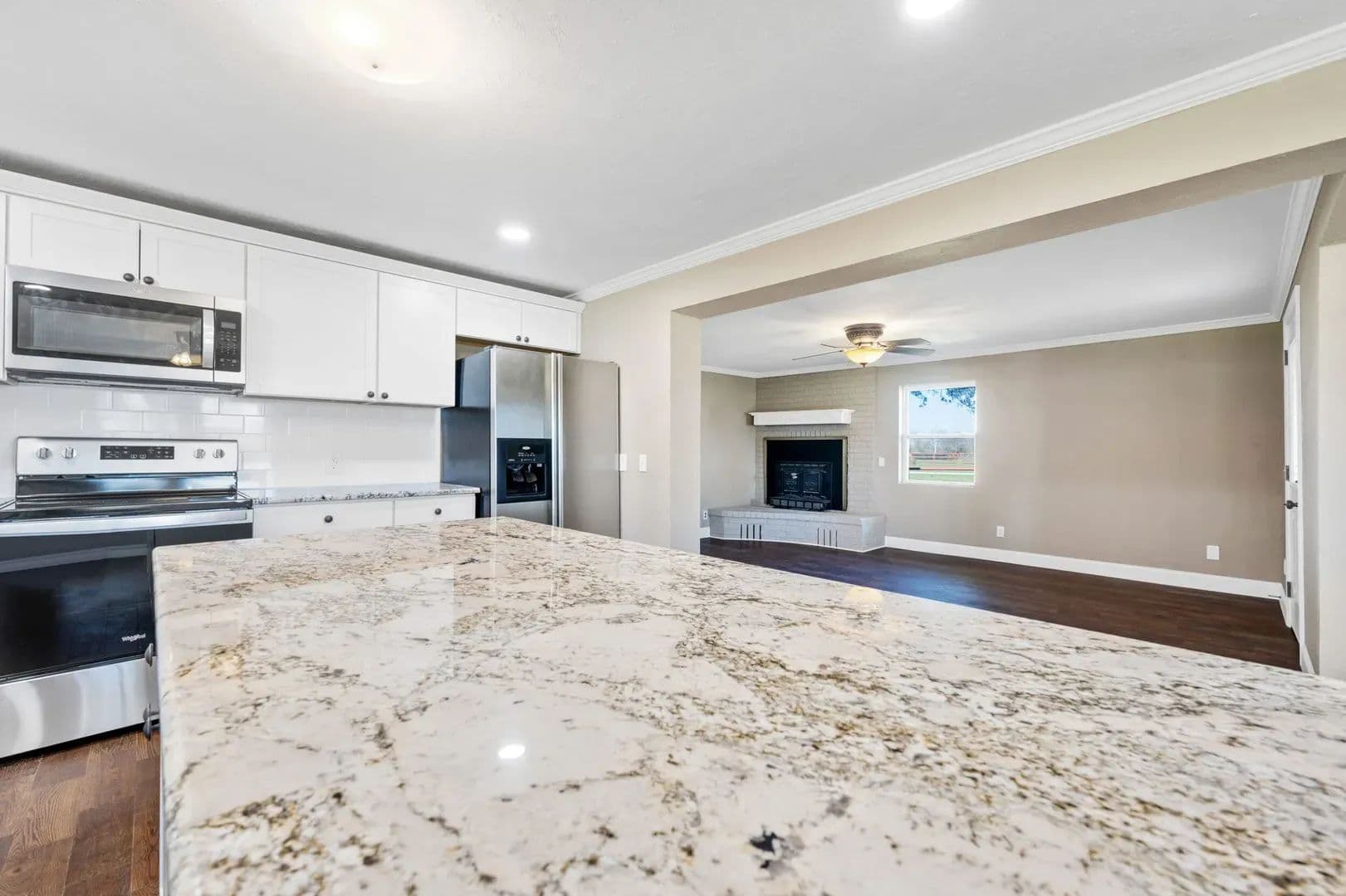 Improvements The 3 bedroom 2 bathroom brick home has been completely renovated to include new flooring and fixtures, Granite countertops, brand new appliances in the kitchen, fresh paint throughout and so much more. The horse facilities include a 130′ x 130′ covered arena, a separate 90′ x 100′ covered pen with 7 oversized stalls and room for a round pen and warm-up area. The 10-stall horse barn features a tack room, feed room, office, half bathroom, and a 1 bedroom, 1 bathroom 800 square foot apartment. The outdoor arena is 275′ x 225′ and there are multiple turnouts and pastures with shelters. DC Ranch is private and quiet but has easy access to I-35 and is just 1 hour and 20 minutes from Fort Worth.