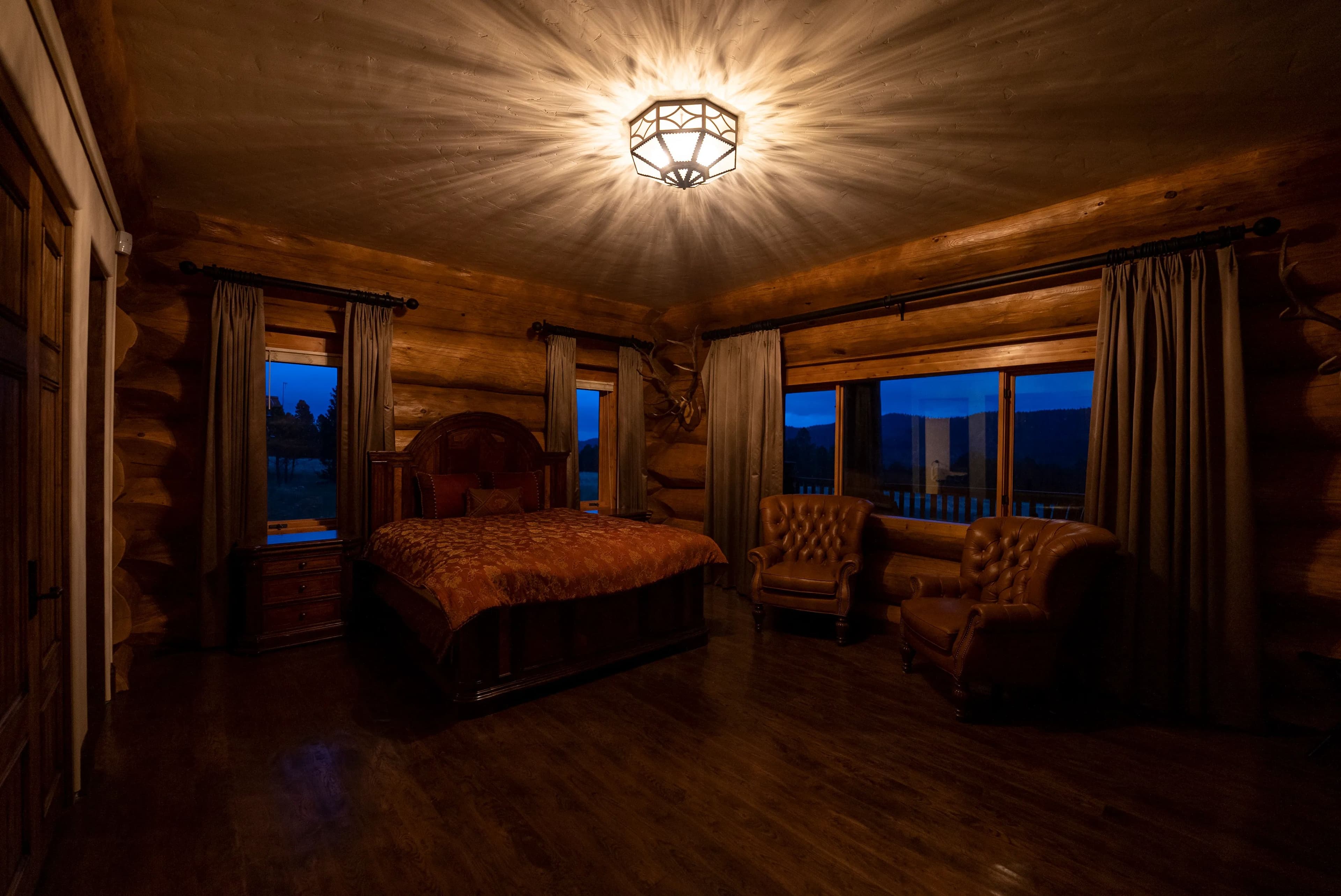 Bonito Canyon Ranch features a 6,500 square foot, 3 bedroom, 4 bath luxury log home constructed by Pioneer Log Homes of British Columbia which is considered by many experts as the most state-of-the-art, high-quality handcrafted log building company in the world. The meticulous attention to detail on display throughout the home is extraordinary. From the tile mosaic entryway depicting two bull elk battling created by world-renowned wildlife artist Chris Lacey to the hand-carved doors and up to 40” diameter western red cedar log beams throughout the home. The home is nicely positioned on the east-central boundary of the 566 acres with excellent trophy elk and mule deer hunting in the renowned Sangre De Cristo mountains of southern Colorado. Bonito Canyon is surrounded by large, world-renowned hunting properties such as Ted Turner’s Vermejo Park, Hill, Tercio, and nearby Bar NI Ranches and other well-managed trophy hunting properties ensuring the ability to employ excellent resource and game management practices with like-minded neighbors.