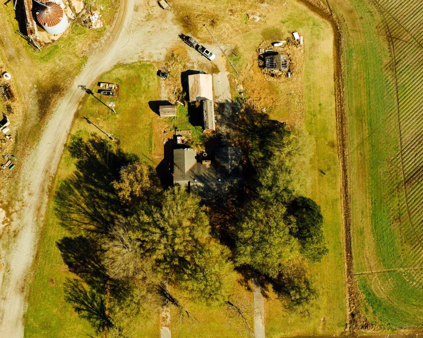 amp service, currently rented on monthly, weekly, or daily rates. The property also includes a three-bedroom, two-bath home built in 1979 and renovated in 2019, ideal for an owner-operator or farm manager. The closest airport is Holly Grove Municipal Airport with a paved 4,500’ runway.