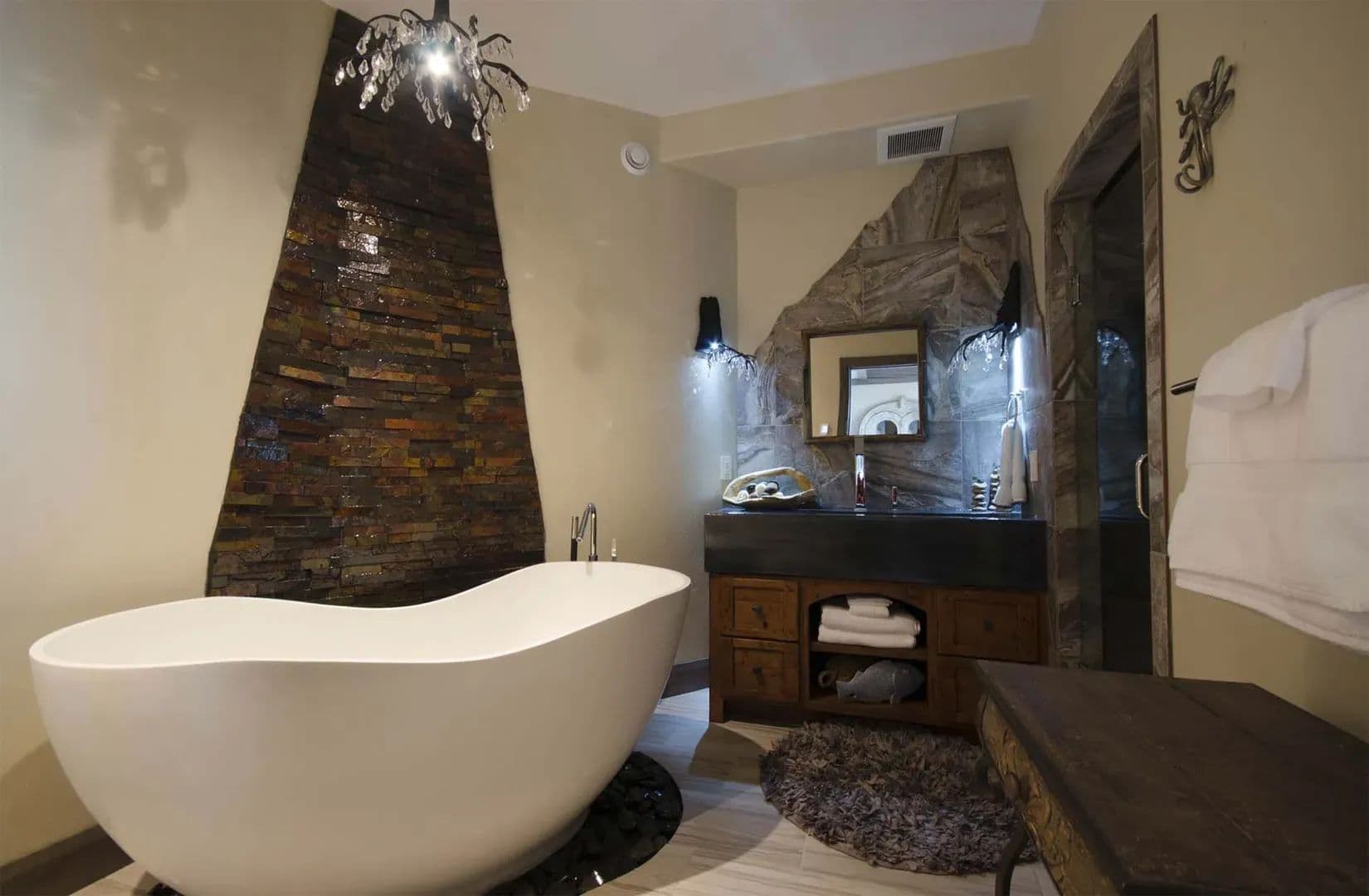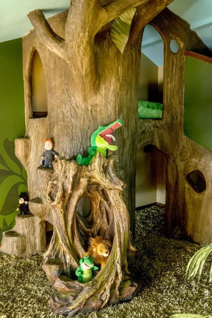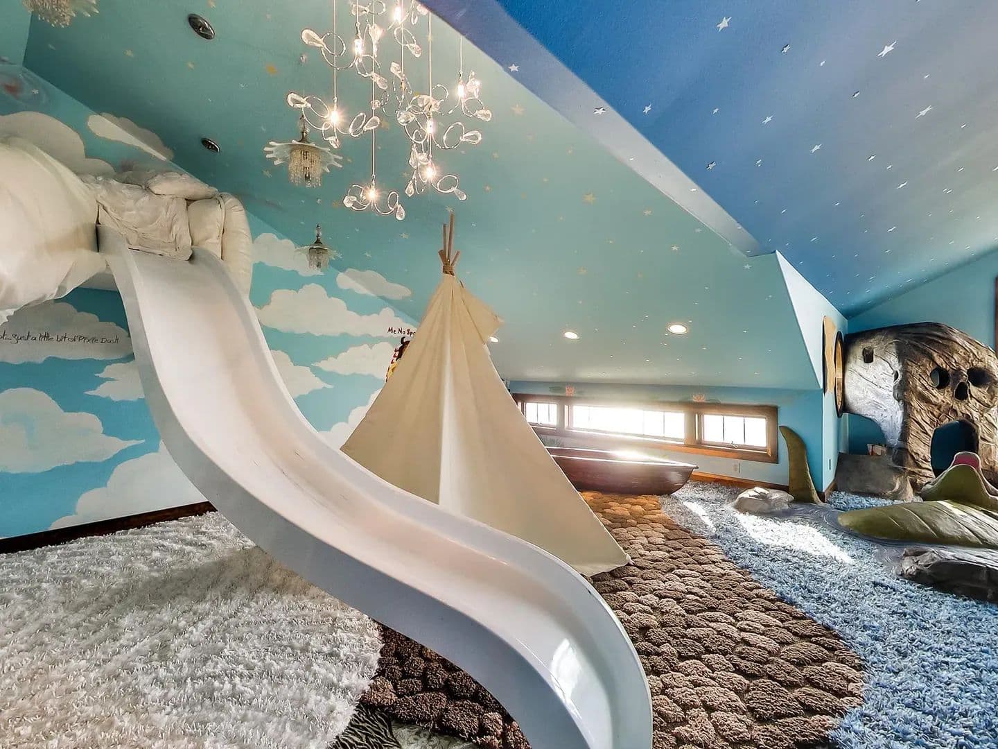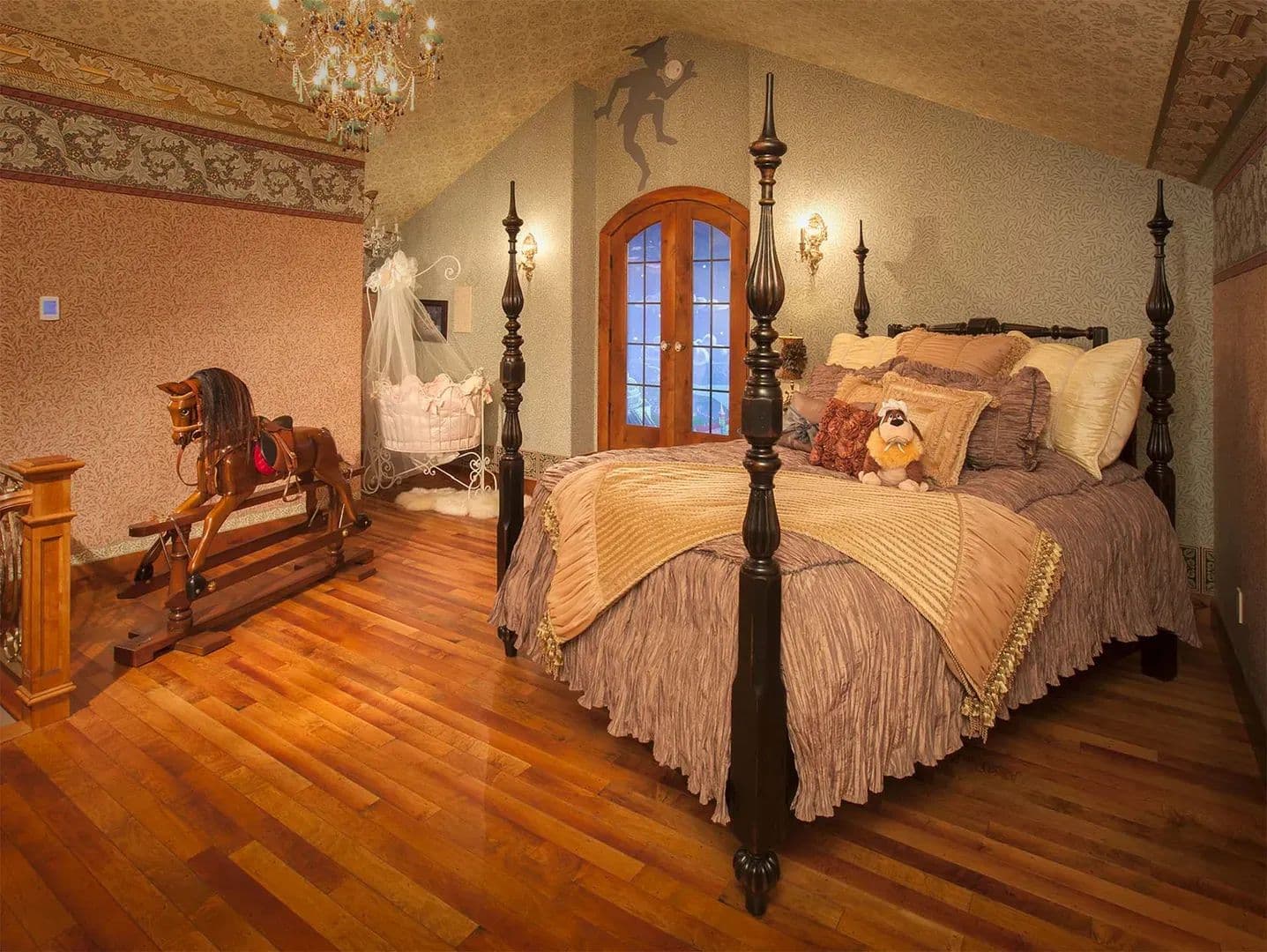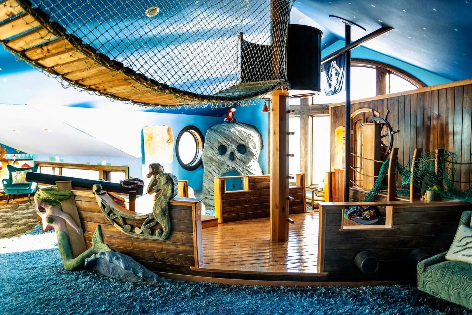 The mansion boasts eight uniquely designed bedroom suites, each crafted to evoke a distinct and immersive ambiance, comfortably accommodating up to 30 guests. The top floor features an enchanting 2,000± square-foot replica of Peter Pan’s Neverland, complete with a pirate ship, hidden nooks, and whimsical décor, offering a magical retreat for guests of all ages. Whether seeking relaxation, adventure, or both, Second Star provides an unforgettable escape unlike any other.