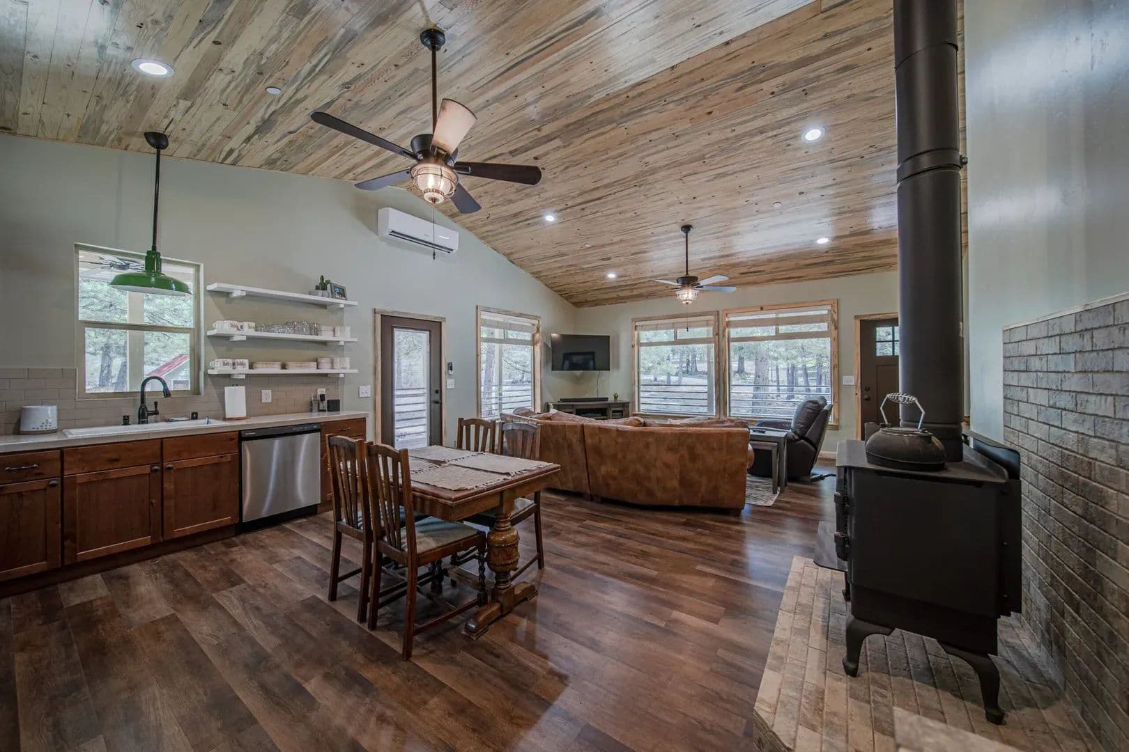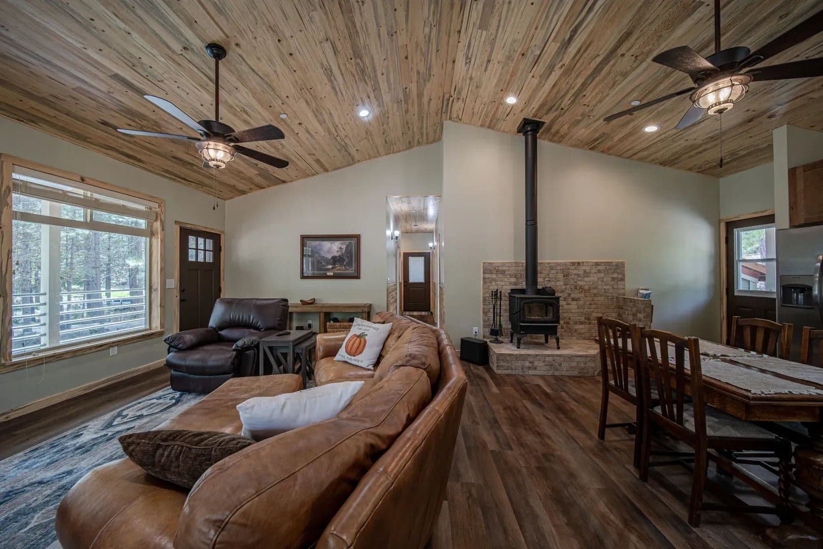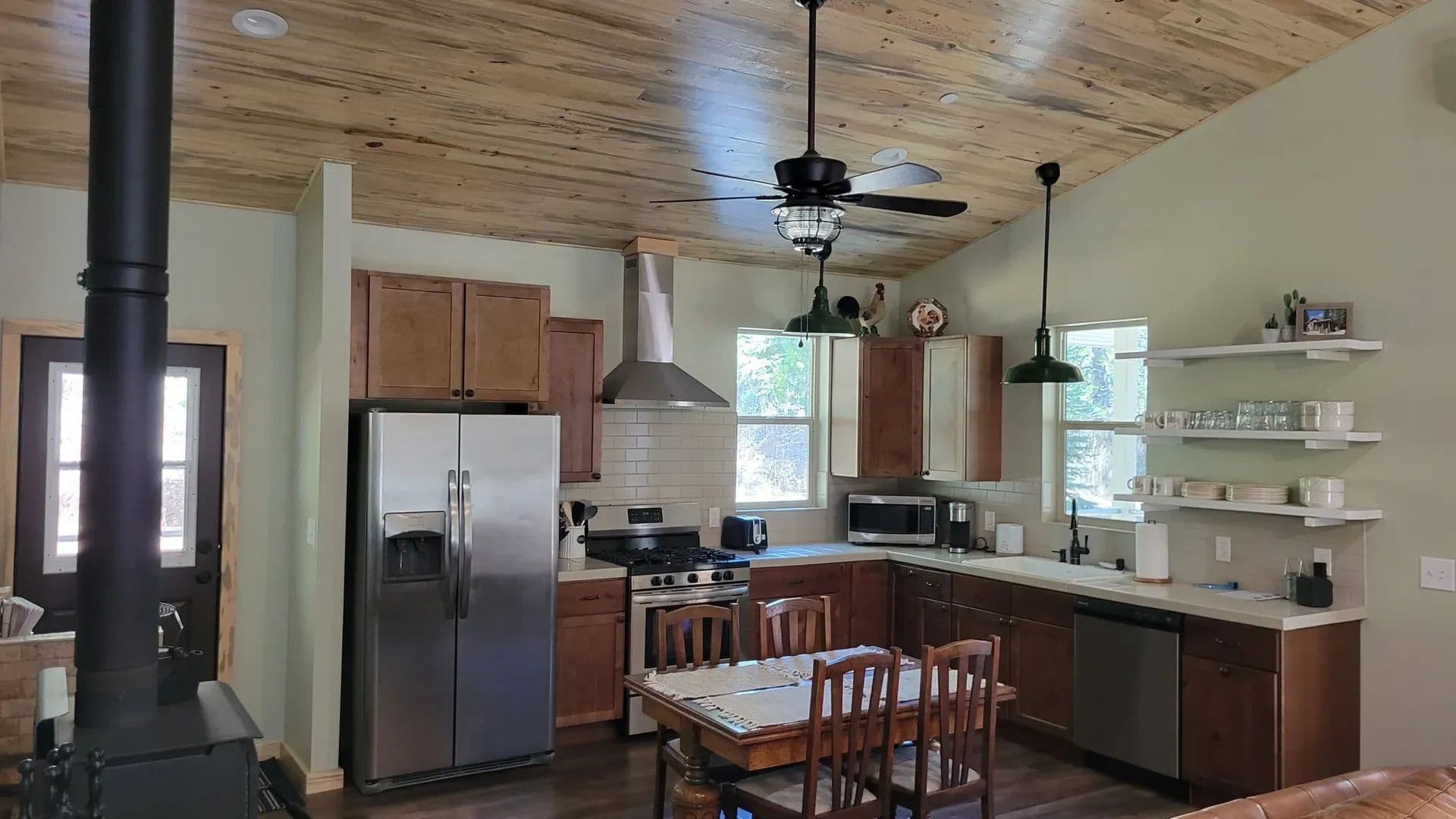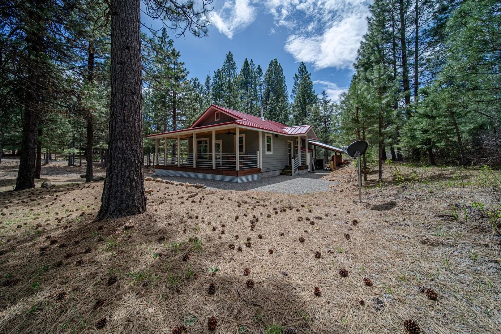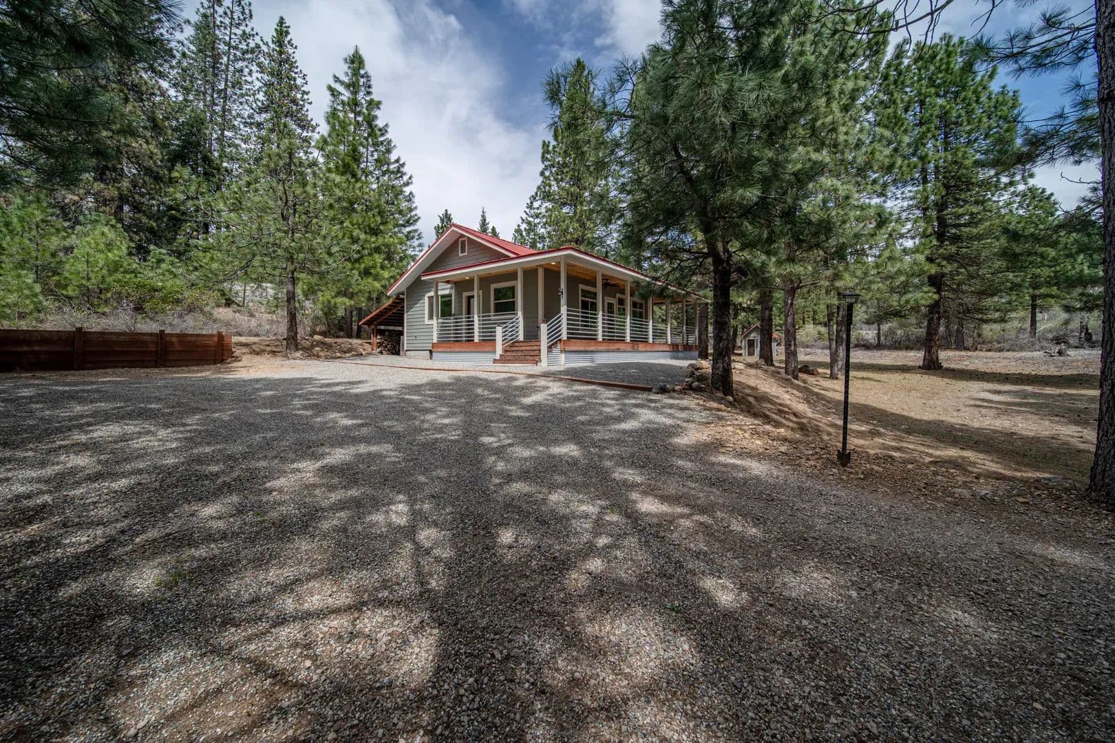 Enjoy the serenity of Siskiyou County from this modern cabin sitting on just over 1 acre at the foot of Mt Shasta. Built in 2021, the 1,008 sq ft home features an open floor plan with 2 bedrooms, 2 bathrooms, stainless steel appliances, wood-burning stove, vaulted ceilings, and blued pine trim and panelling throughout. A wrap-around porch provides outdoor living space to soak up the sunshine and fresh mountain air.
