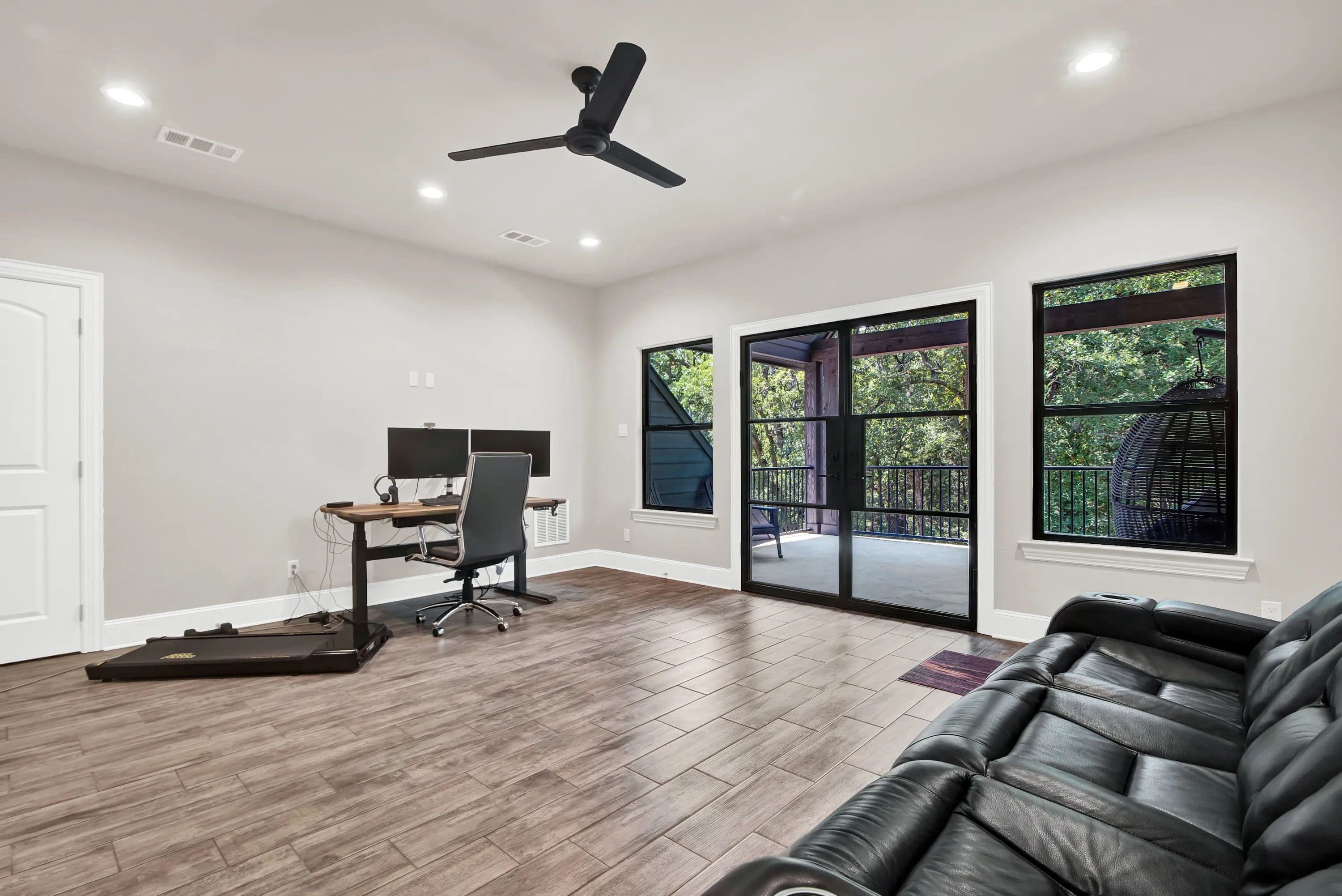Incredible 3858 sq ft custom home on 10+ beautiful wooded acres in a quiet peaceful subdivision surrounded by gorgeous horse ranches. Step inside to a impressive entryway with a curved staircase. The inviting open design family room with a vaulted ceiling and a massive stone fireplace with remote control gas logs and the kitchen with a large island and custom cabinets. All the appliances are first class with a built-in under counter microwave oversized refrigerator and a CAN'T WAIT TO COOK range. The master bathroom has a large shower with dual shower heads, big tub and dual vanities and sinks. The master closet is enormous with a marble top island in the middle. Upstairs you will find a bedroom-office which opens up to a large vaulted ceiling balcony. The home boast spray foam insulation for incredible energy efficiency, soft close cabinets and drawers throughout, even soft close toilet lids and plenty of attic storage. Step outside to a comfortable patio with an outdoor kitchen.