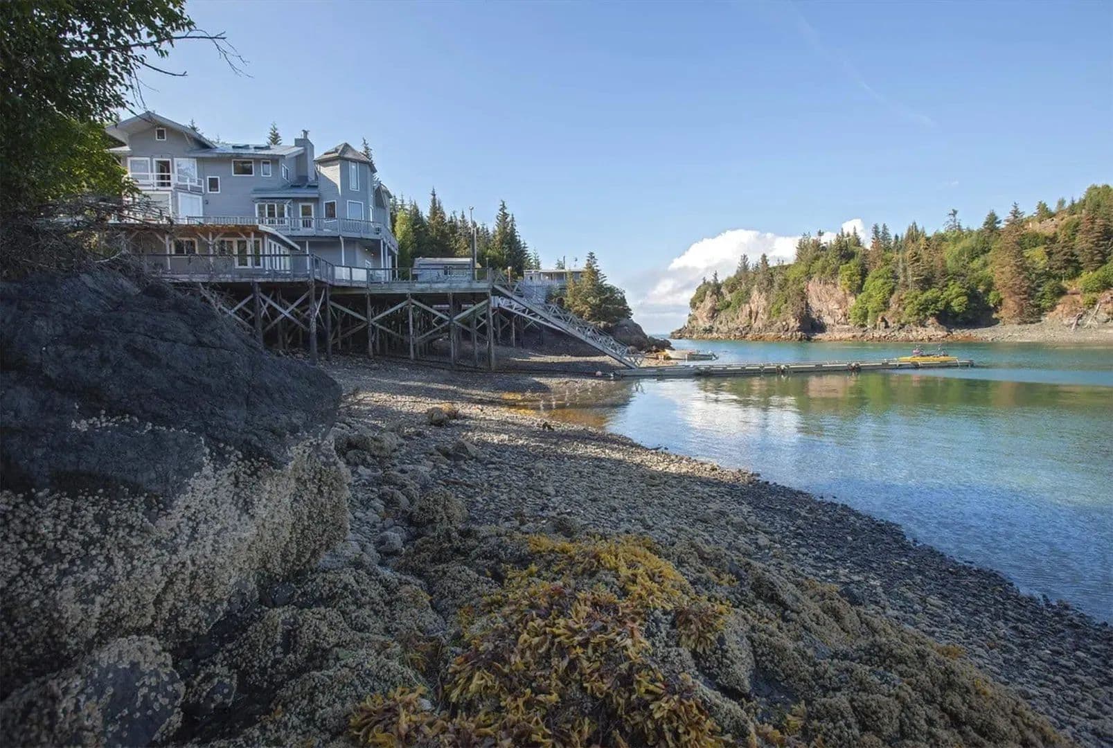 Discover an extraordinary retreat in Halibut Cove, a secluded gem near Homer, Alaska. Accessible only by boat or floatplane, this property offers an unparalleled escape into the pristine beauty of Kachemak Bay.