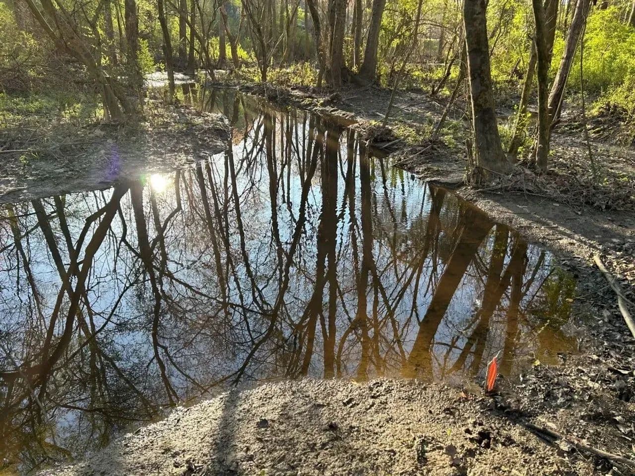•Topography: The parcel features a mix of gently rolling hills and a hardwood-bottomed area along Pole Branch Creek at the back of the property, adding to the natural beauty and potential uses for the land.