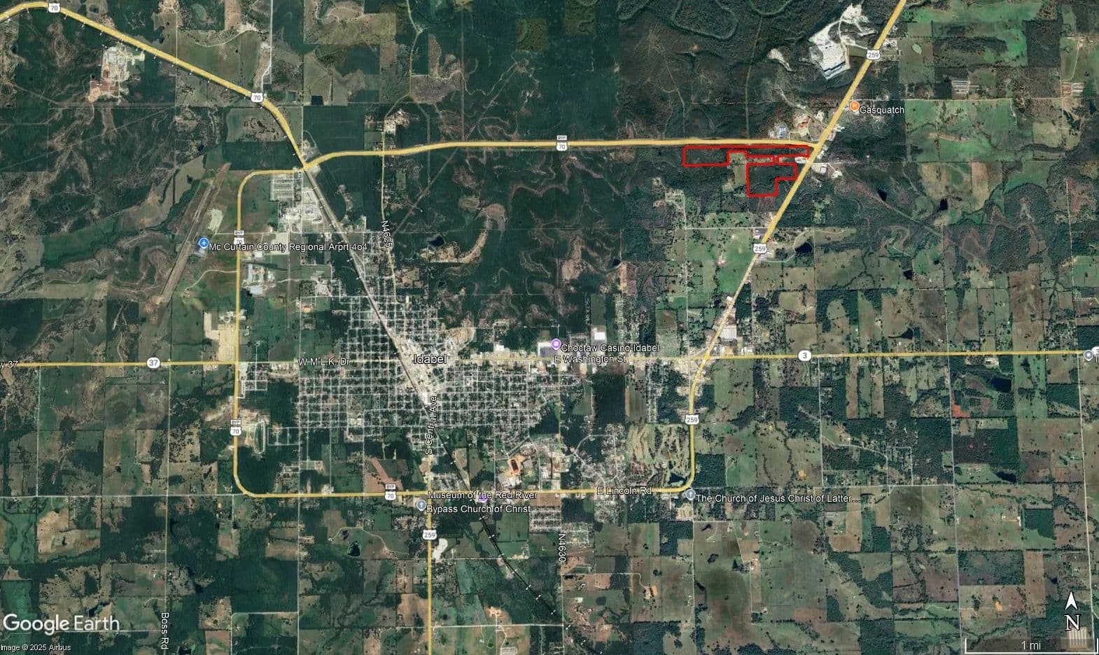 Prime commercial location at the intersection of Highway 70 Bypass and Highway 259 on the northeast side of Idabel and only 7 miles from Broken Bow and 16 miles from Hochatown. You will find 1 mile of frontage on the Highway 70 Bypass and about .1 mile frontage on Highway 259. Property would be a great location for storage units, hotel, RV park, retail or anything else you can put to mind. There is water along the road. Across the road north are the Kiamichi Tech and the Southeastern Oklahoma State University campuses. There are also several other businesses scattered along the highway around the parcel. Call today and find out just how this land can fit your future business dreams.