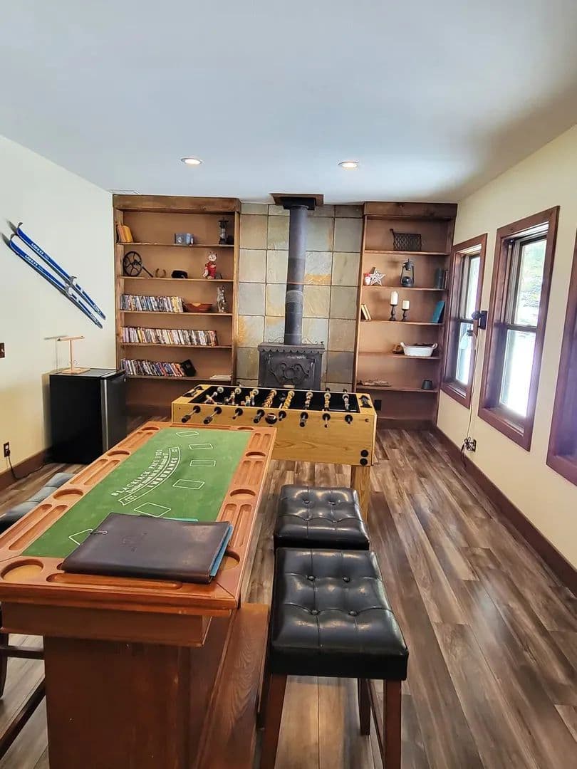 The Mountain Modern Home is the perfect high altitude getaway. Located in the well-known Valley of the Sun Subdivision, this amazing property is the perfect mountain escape. Nestled within a pine forest, with quick access to National Forest and within view of the 13,021 ft. Pennsylvania Peak. Improvements The Mountain Modern Home is an impressive 2,646 square feet of entertaining space. Featuring an open design living space to keep everyone involved in the conversation, the kitchen, dining area, and living room are all conveniently placed to provide ease of access. The primary bedroom suite is located just off of the dining area and the guest half bath completes the main floor. Heading downstairs you find a cozy game center with a blackjack table and a foosball table. There’s also a wood stove downstairs that can keep the entire home heated. To complete the downstairs, the two guest bedrooms and a bonus room are all located just off of the game room.