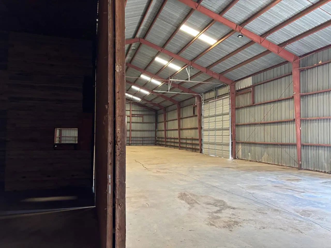 1 Storage/manufacturing Shed 50 feet by 140 feet dual overhead doors with seperate storage or office space. Full electric LED Lighting, one welding plug, and 110 volt plugs. Fully code compliant. electrical outlets can be added to meet the lessee's needs.