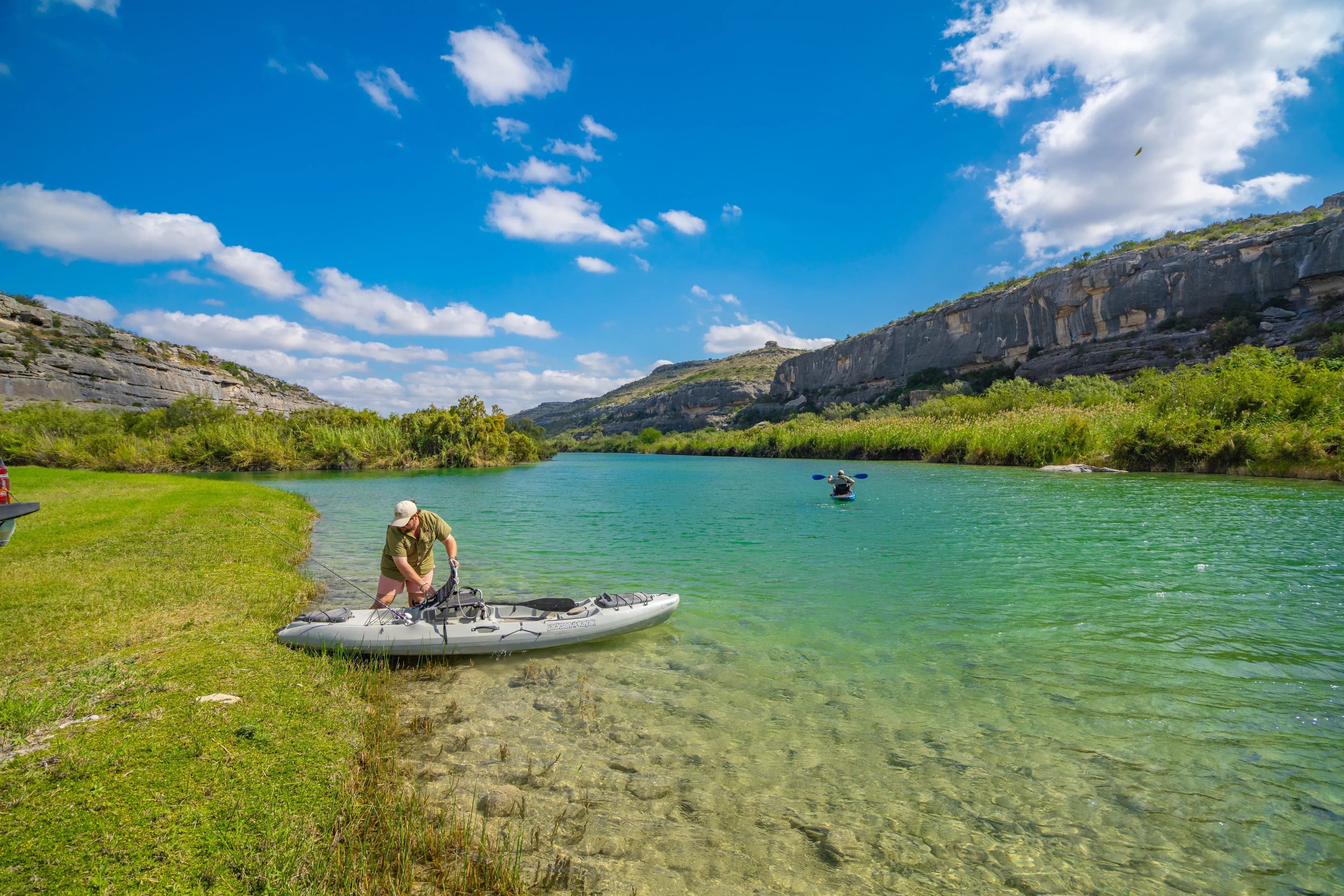 The 9.25 mile stretch of the Lower Pecos River is a mesmerizing sight, featuring clear spring-fed waters, towering canyon walls and incredible fishery. This secluded river corridor offers deep holes and small rapids, making it perfect for canoeing, kayaking, fishing, tubing, waterfowl hunting, wildlife watching, and simply exploring. Anglers can anticipate catching largemouth bass, sunfish, freshwater drum, catfish, and carp. The expansive river frontage provides unmatched beauty and endless opportunities for exploration, a feature rarely found on other ranches.
