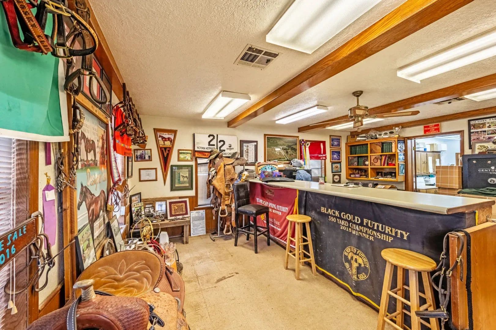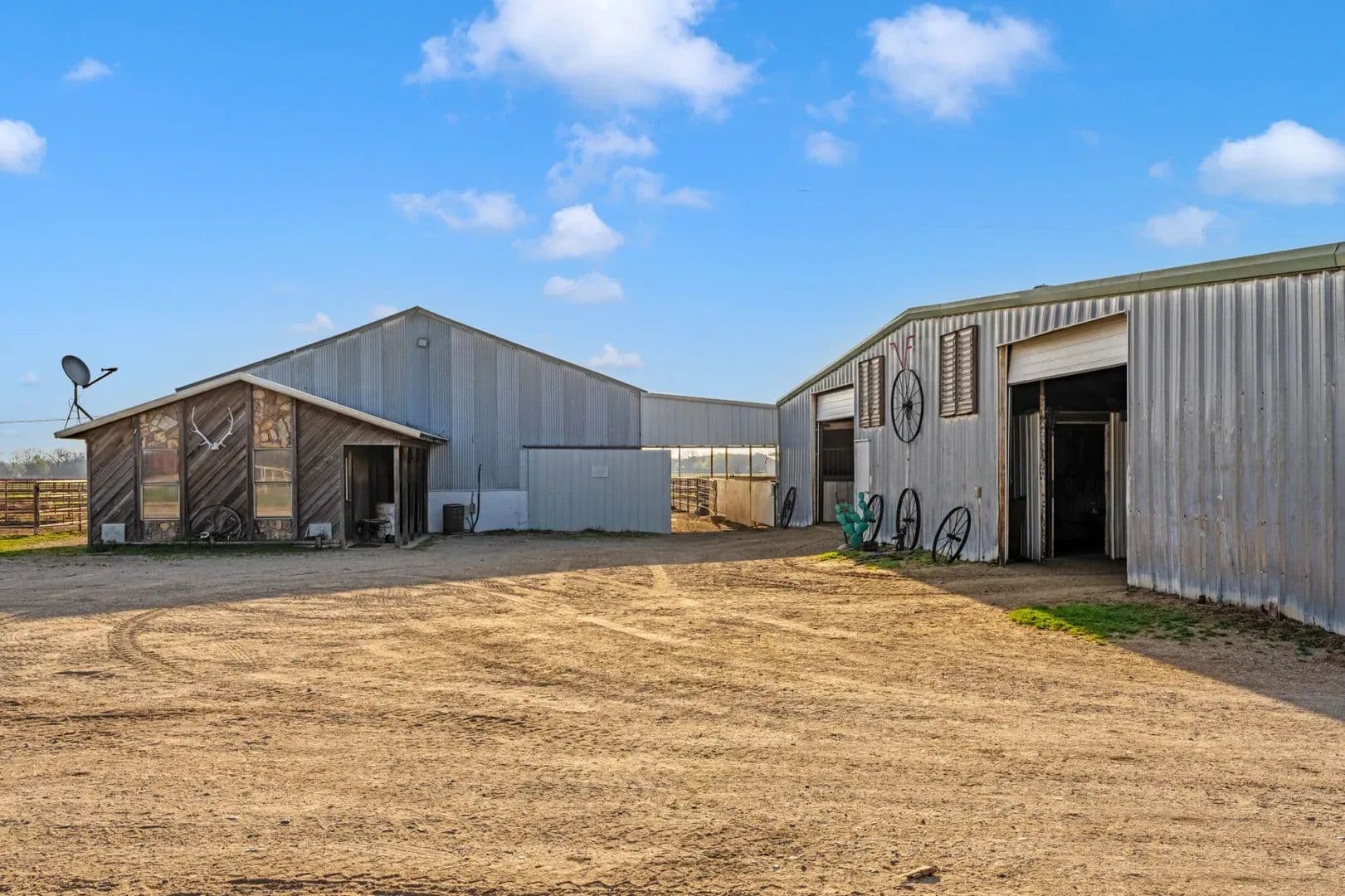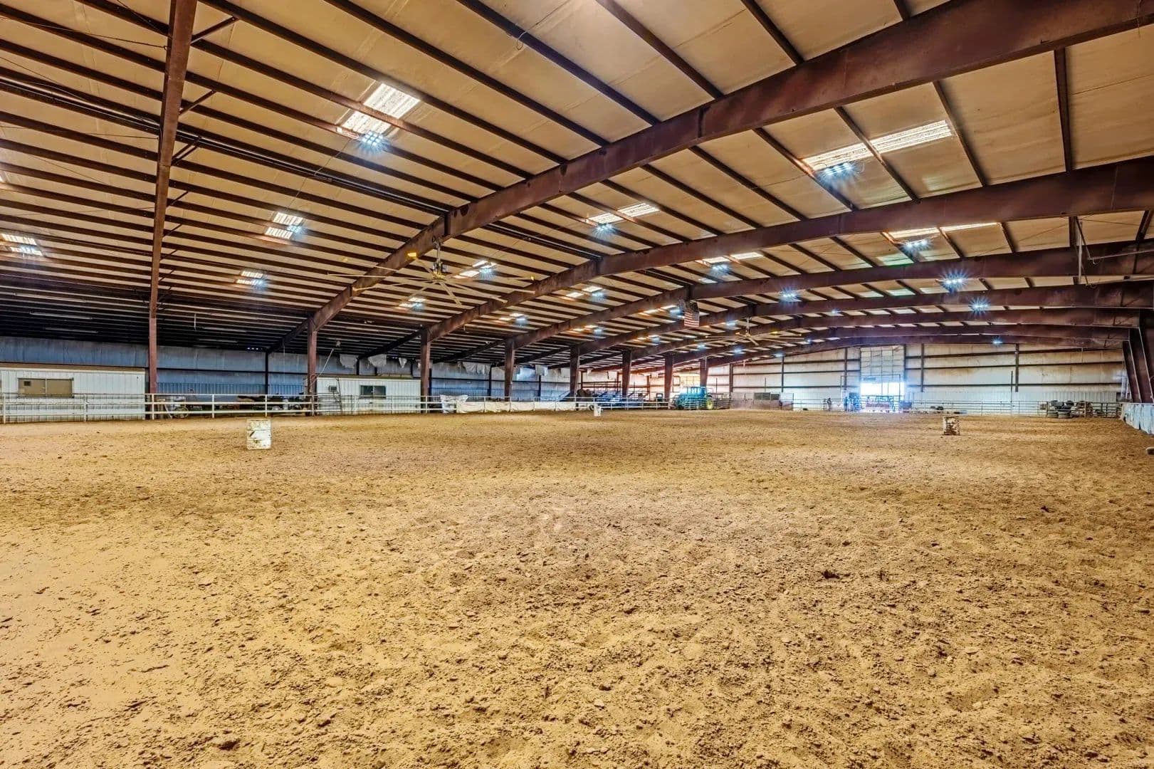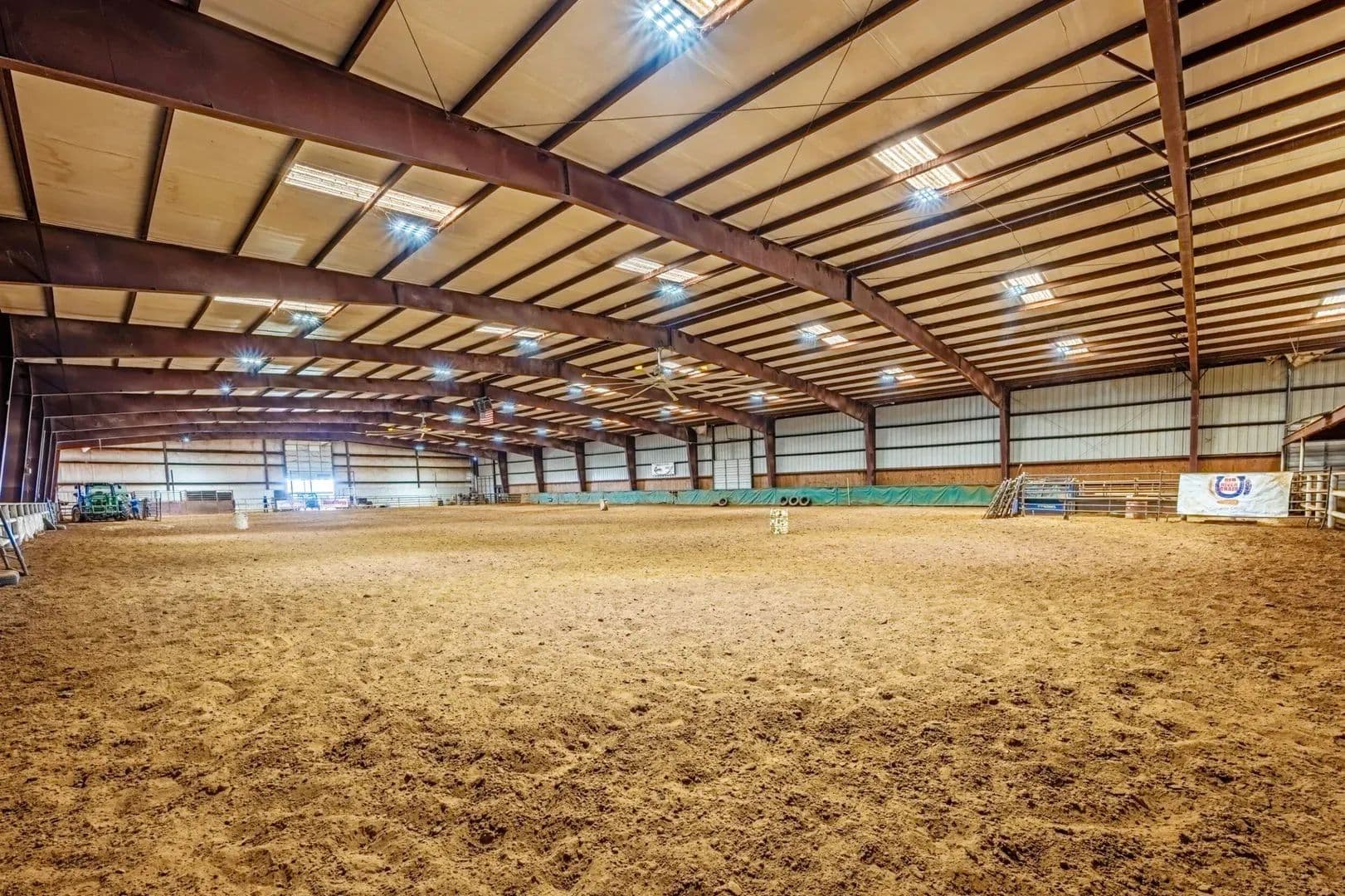 Victory Farms is a renowned horse training facility specializing in breeding and training barrel racing horses. The expansive 360-acre property boasts state-of-the-art amenities, including a 125 x 250 indoor arena, stallion barn, mare motel, covered stalls, turnouts, broodmare pastures, full breeding and collecting stations and RV hookups with full services. Land The ranch offers lots of grazing opportunities with well maintained fences for rotational grazing. There are several pastures that are used for growing hay to support the horse business its currently running very successfully.