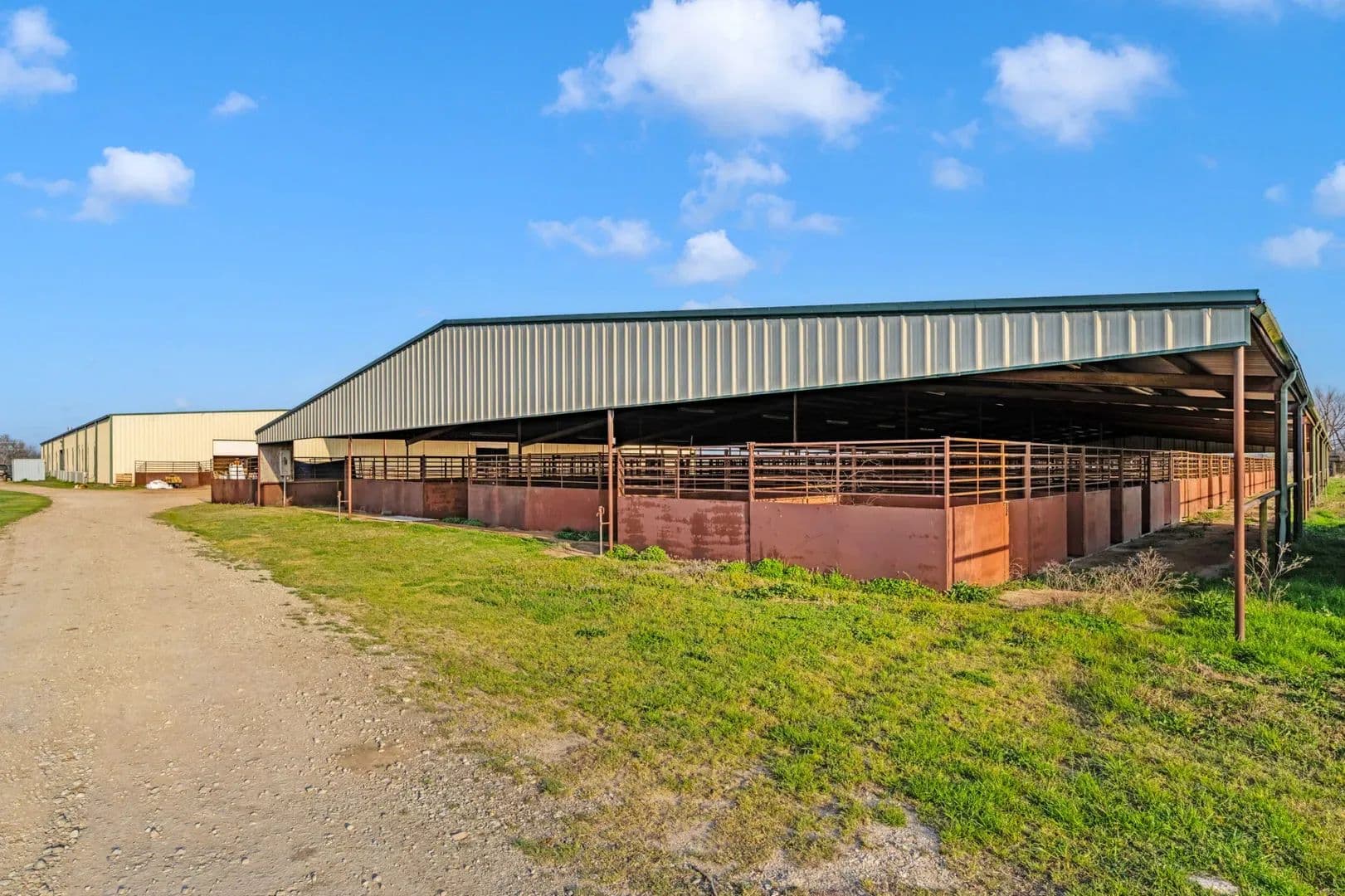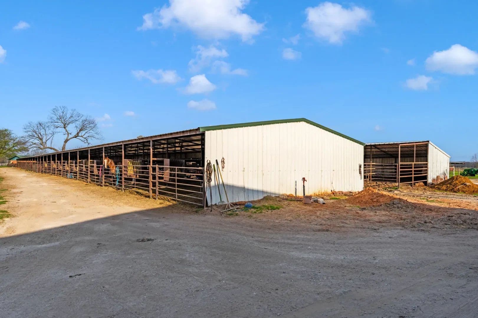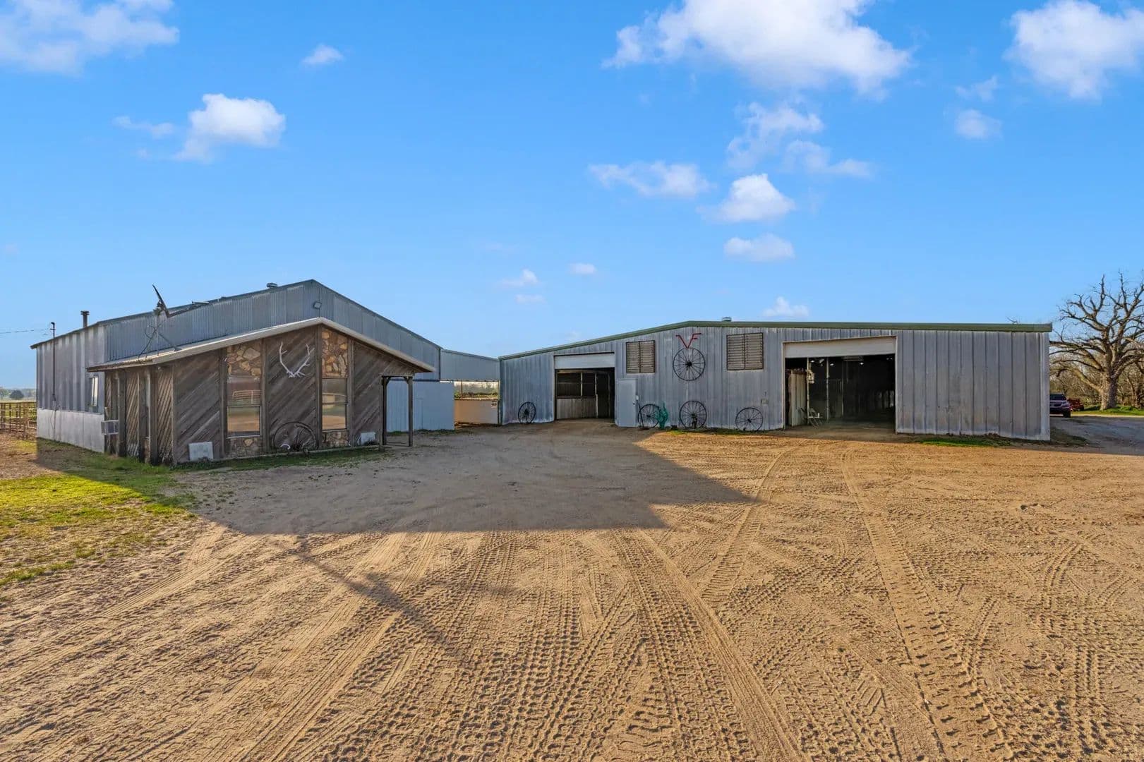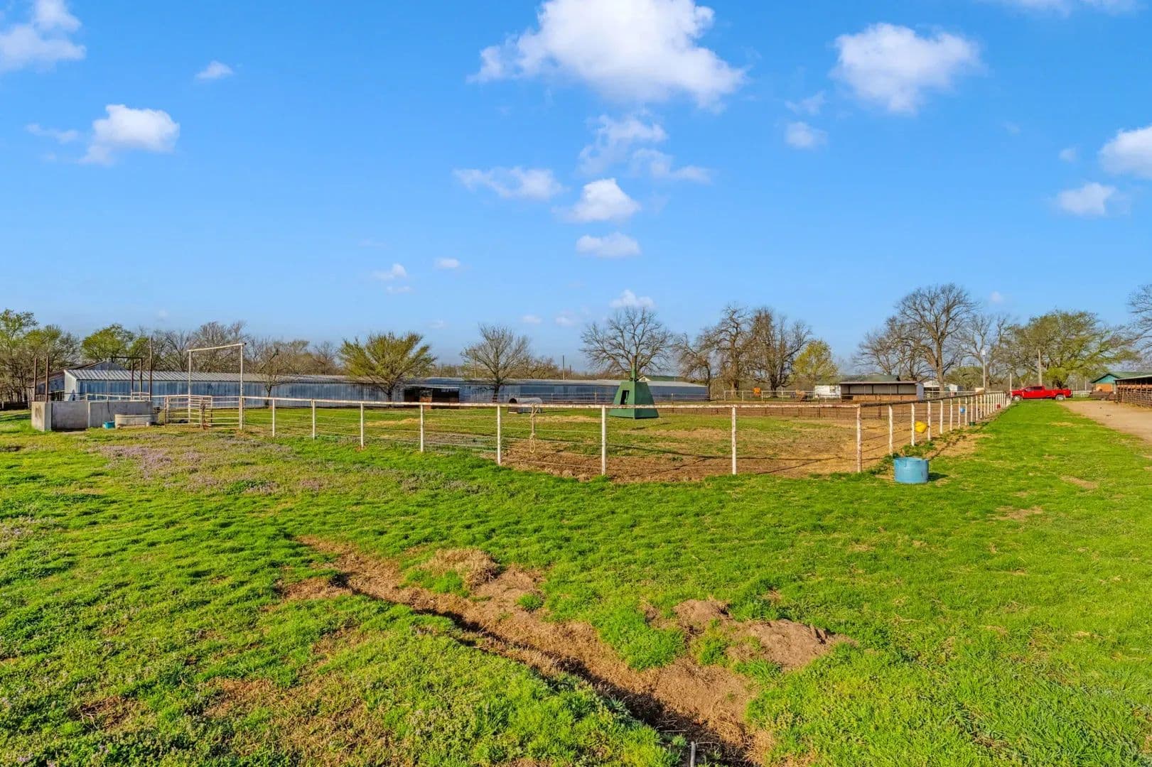 Victory Farms is a renowned horse training facility specializing in breeding and training barrel racing horses. The expansive 360-acre property boasts state-of-the-art amenities, including a 125 x 250 indoor arena, stallion barn, mare motel, covered stalls, turnouts, broodmare pastures, full breeding and collecting stations and RV hookups with full services. Land The ranch offers lots of grazing opportunities with well maintained fences for rotational grazing. There are several pastures that are used for growing hay to support the horse business its currently running very successfully.