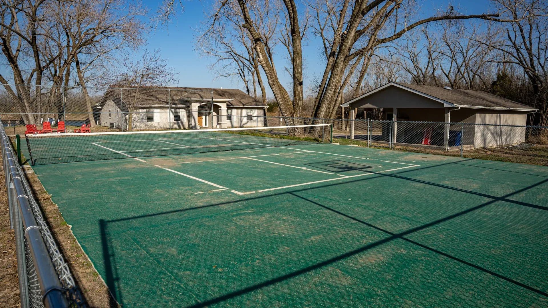 For those seeking outdoor adventure, the property features private ATV trails, a 300-foot outdoor shooting range, and a private tennis and basketball court. Additional amenities include BBQ grill, cornhole, firepit with seating, extra tables/chairs, and much more! Wildlife thrives here, attracting ducks, geese, deer, and turkey, with established hunting infrastructure, including an elevated Redneck blind, three Texas Wildlife Supply feeders, and a Big Game two-person tree stand.