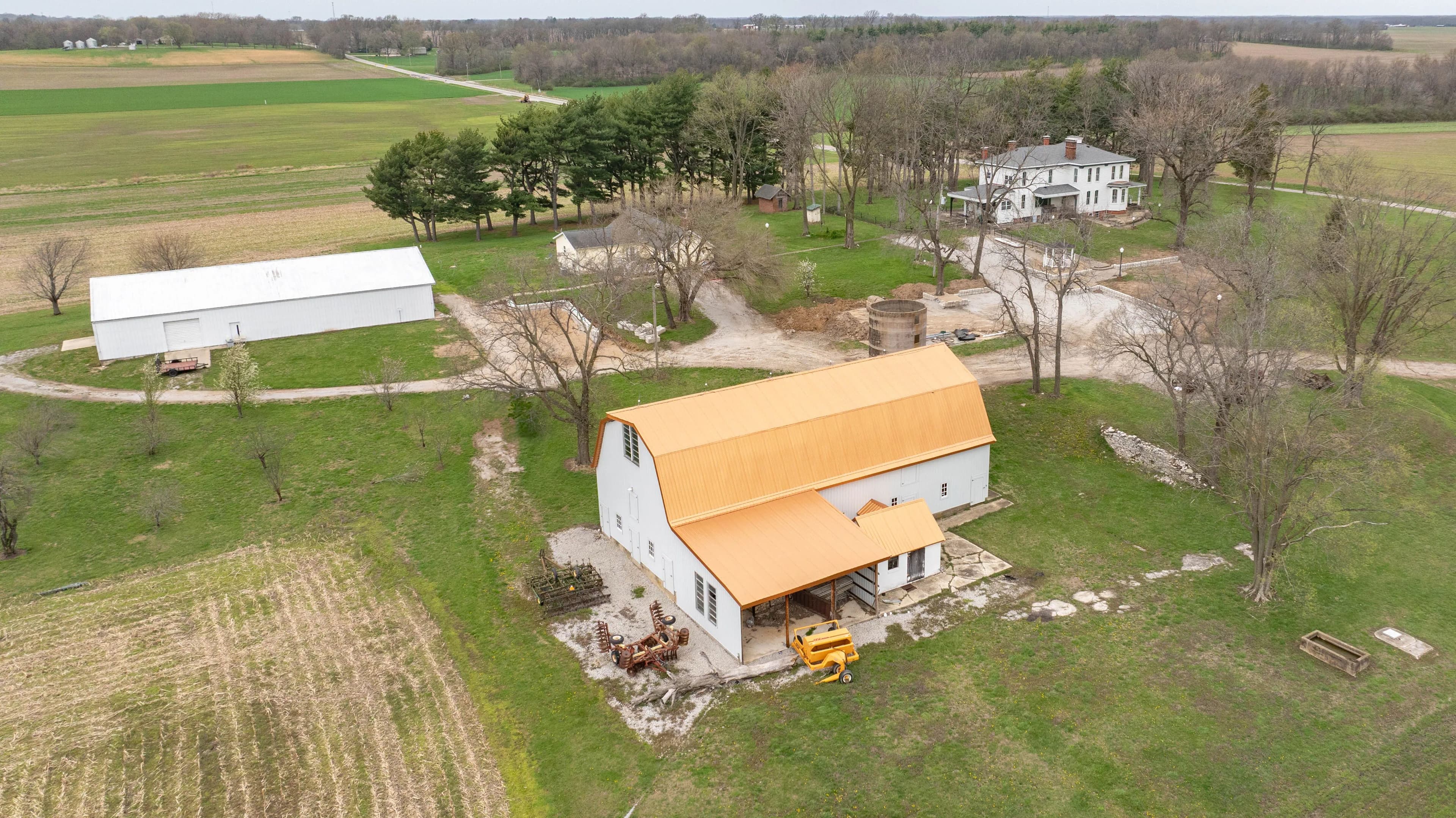 Expansive 16-acre property blending historic charm & modern potential. Estate features spacious main house, second home, & two large barns/outbuildings. Main house boasts a two-story entryway, spacious living & sitting rooms, formal dining room, breakfast room w/ wood flooring throughout, 6 bedrooms & 2 partially finished baths. Partially finished kitchen offers customization potential. Upstairs includes a large sitting area, all 6 bedrooms, & a second partially finished kitchen accessible via back staircase. Lower level is an unfinished brick space w/ laundry hookups. Second home features a spacious kitchen/dining combo w/ solid surface countertops, center island, & back deck access. Includes 3 beds & 2.5 baths. Large barn has two stalls, a feeding room, multiple bonus rooms on lower level, & expansive upper level w/ wood flooring & 22-ft ceiling. Second outbuilding is a multi-purpose metal structure w/ sizable garage, 2 roll-up doors, second private garage, & sleeping room.