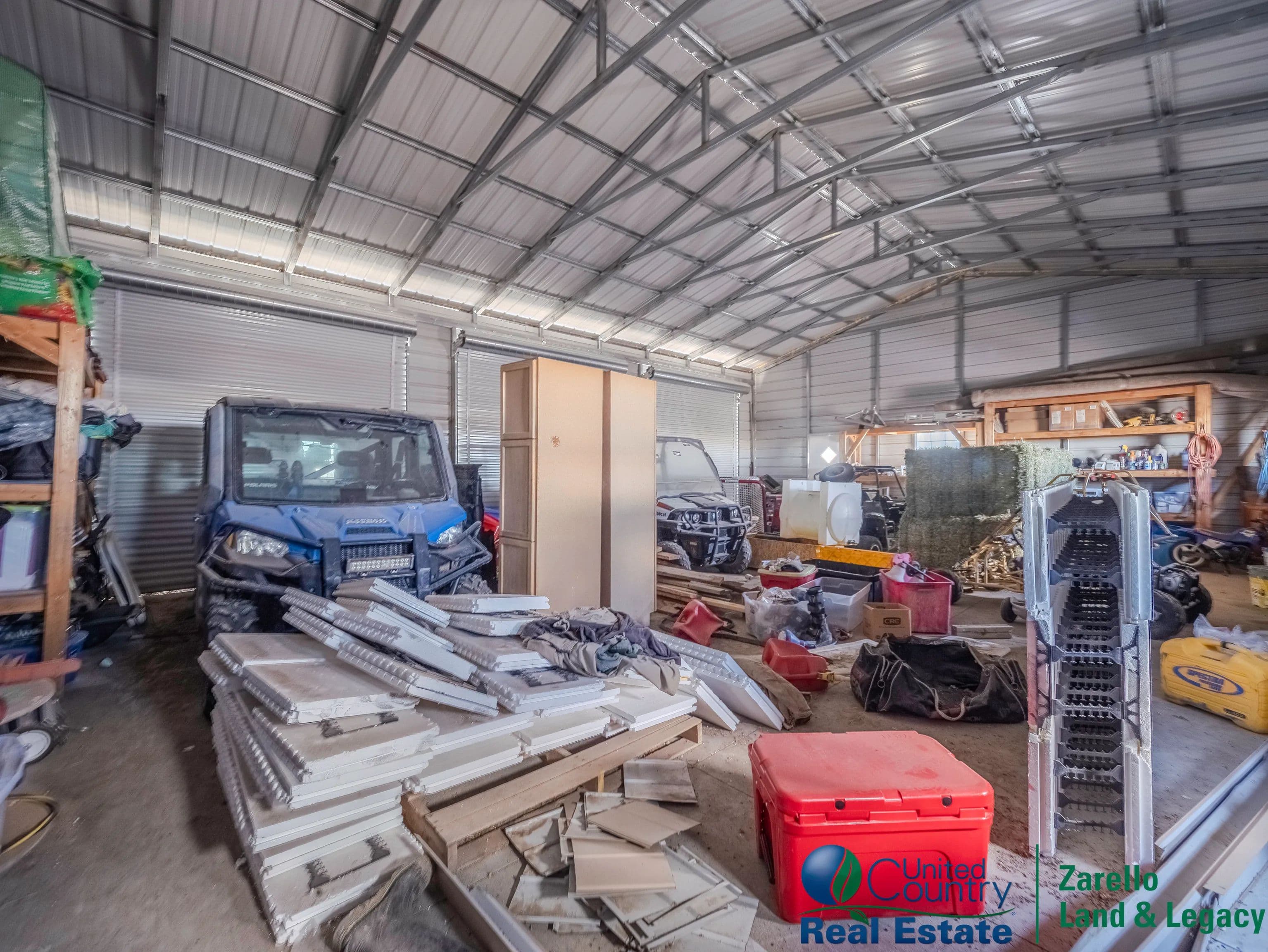 A recently constructed breezeway connects the home to a 1,200 sq. ft. shop with three 12’ roll-up doors—perfect for equipment storage or workshop space. The home is serviced by city water, with an additional outdoor tap and backup well water sources for the rest of the property.