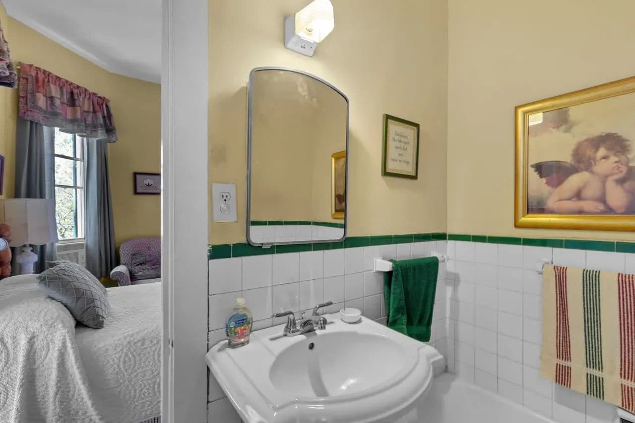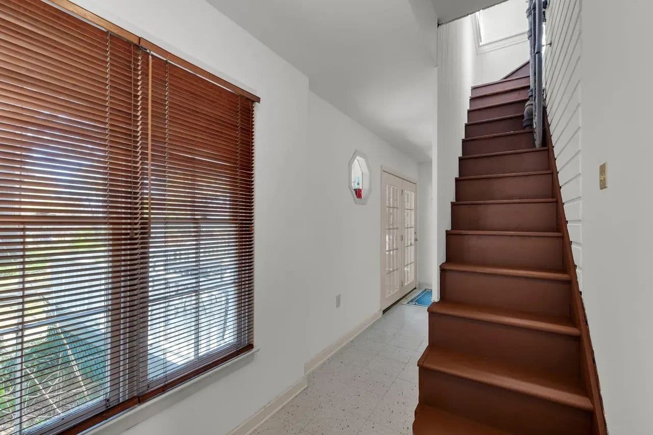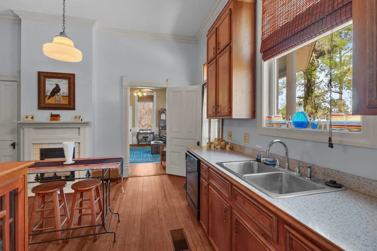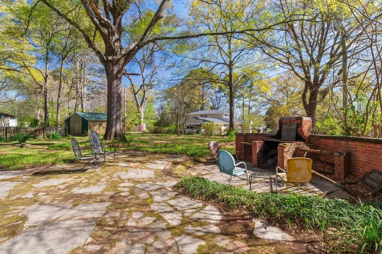 Outside, there are multiple options for relaxation. You can enjoy the tranquility of the back patio under the old oak trees, sit on the front porch, or enjoy from the upstairs balcony. Each offers unique way to appreciate the character this property.