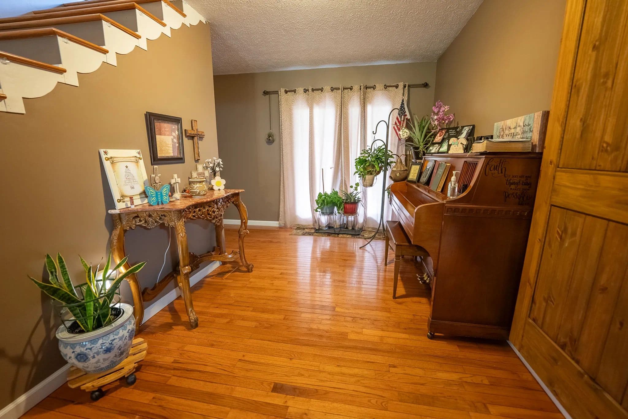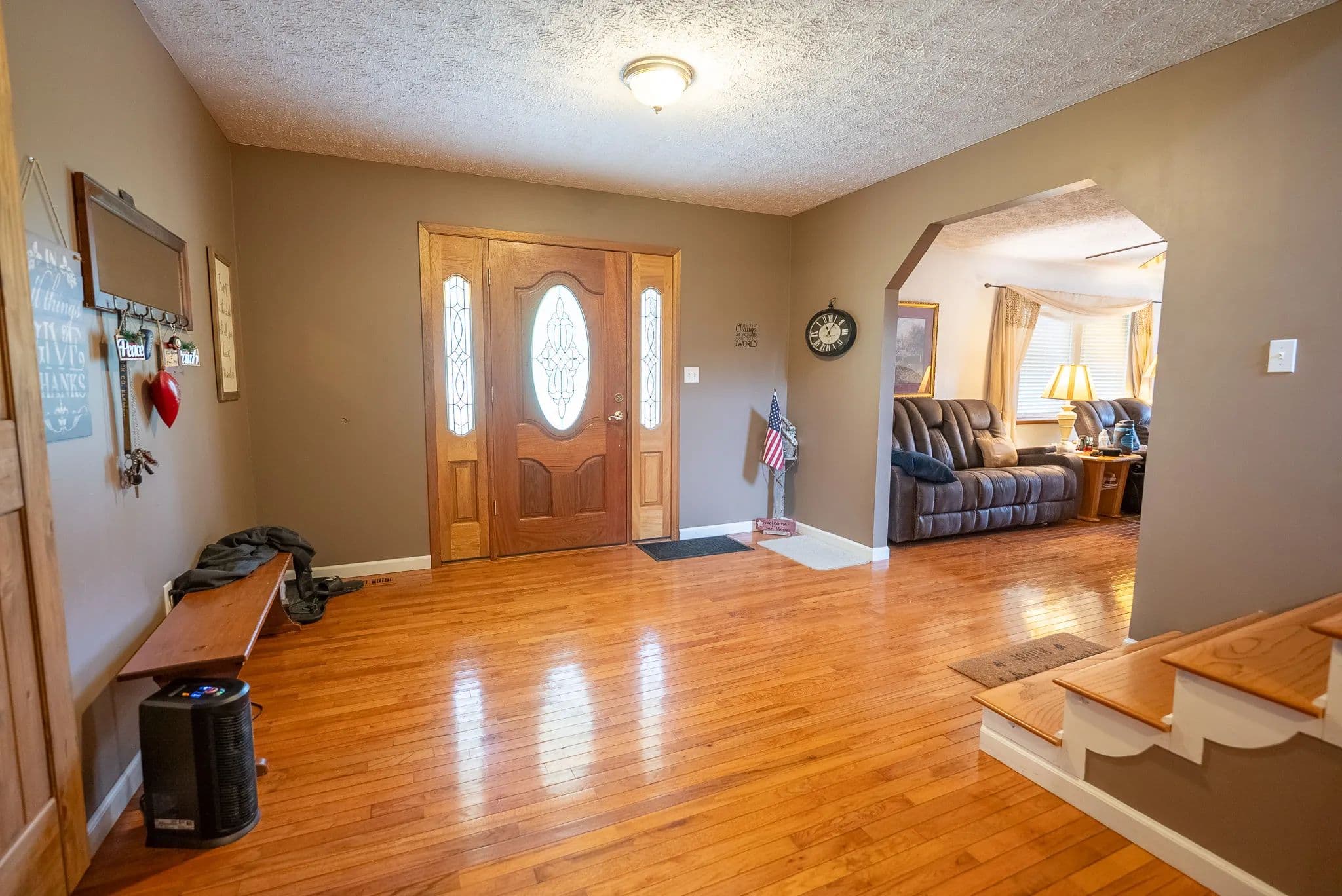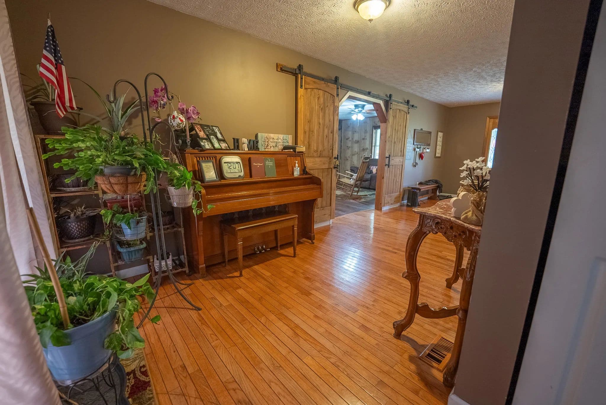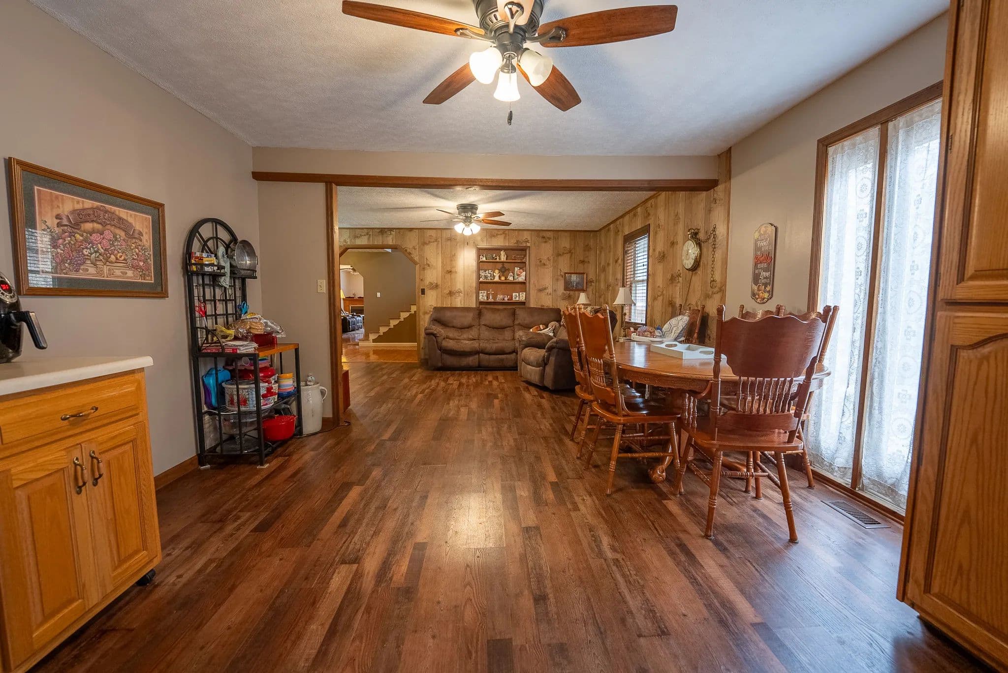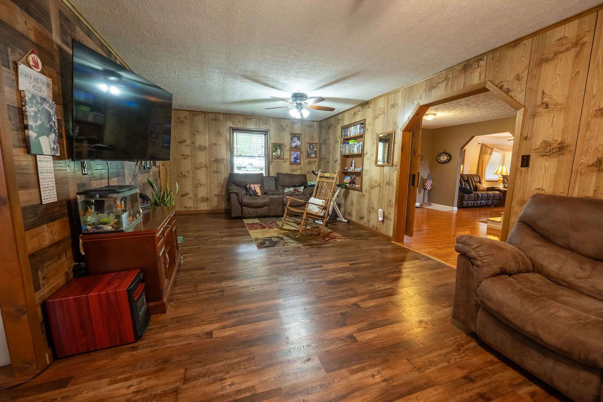 Built in 1985, the home boasts timeless appeal with updates throughout. Step inside to find gleaming hardwood floors, cozy carpeted bedrooms, and stylish tile in all three full bathrooms. The main level offers an inviting layout with a large living area, a bonus room ideal for an office or playroom, and a country kitchen ready for family meals or entertaining. Enjoy year-round comfort with double-pane windows, ceiling fans, and two heat and air units. After a long day, unwind in the luxurious jet tub or relax on the covered porch while soaking in breathtaking mountain views.