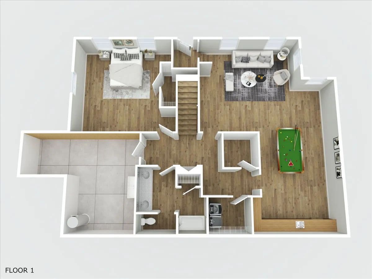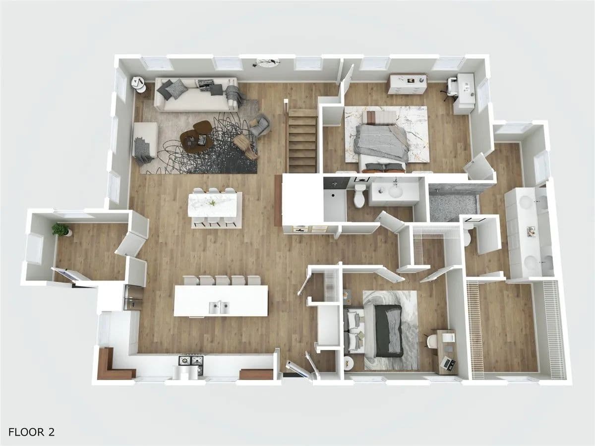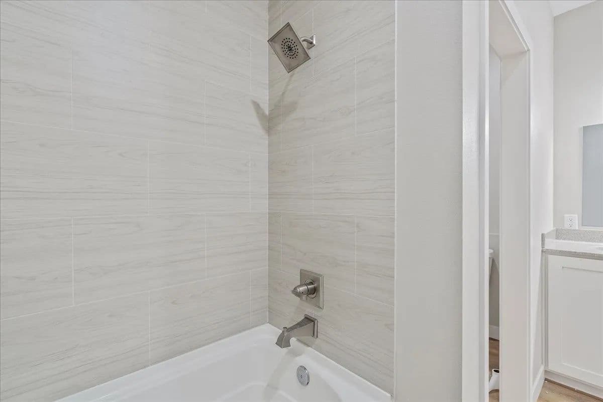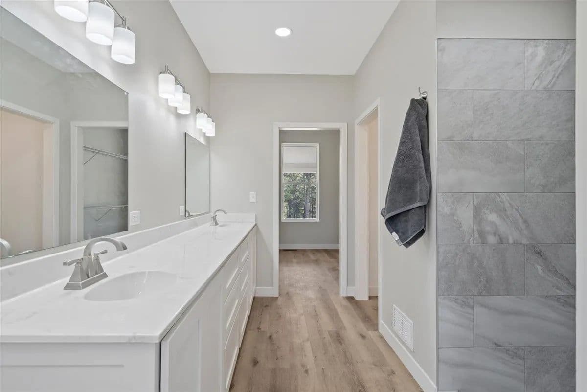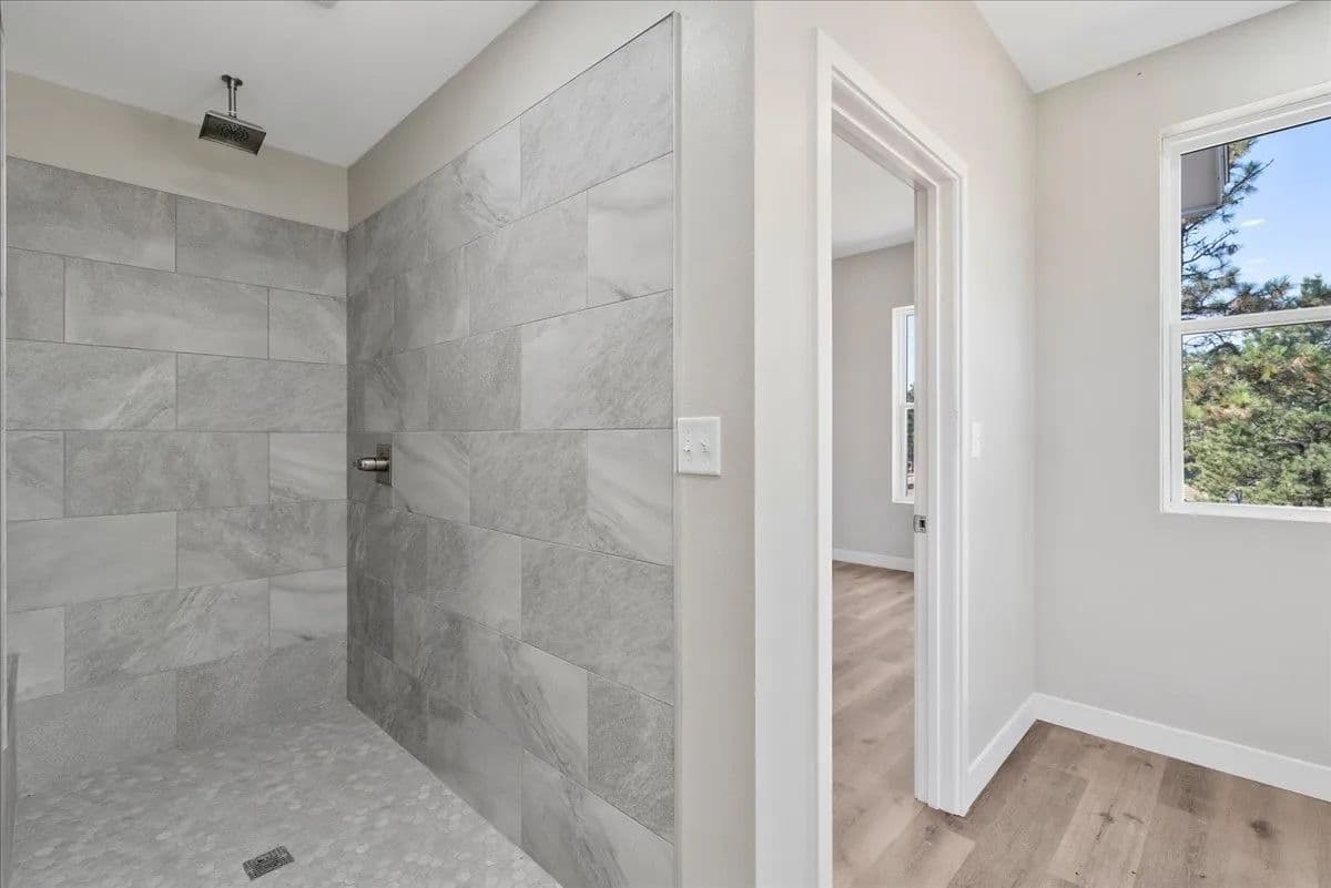 Bedrooms & Bathrooms: This splendid home features three generously sized bedrooms and three luxuriously appointed bathrooms. The oversized master suite is a private oasis, boasting a master bathroom with double vanity sinks, a meticulously crafted tile walk-in shower with a rainfall showerhead and bench, and a separate toilet room for added privacy. The master suite also offers a vast walk-in closet with washer and dryer hookups, ensuring convenience and comfort. An additional upstairs bedroom and a full bathroom with a walk-in shower add to the allure, providing ample space for family or guests.