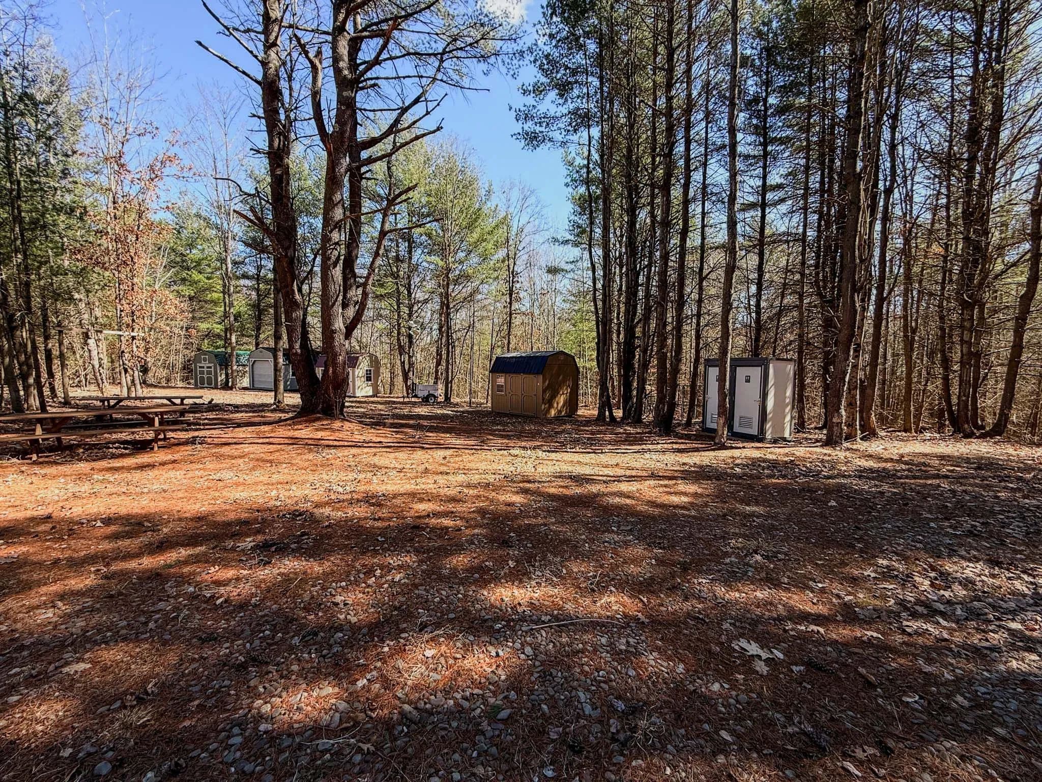 Additional conveniences include two new bathroom trailers and a 2 commercial light pole powered by generator, ensuring comfort in all seasons. Across the road lies the third campsite, home to two more cabins with lofts, RV parking with a pull-through driveway, and a second dog kennel.
