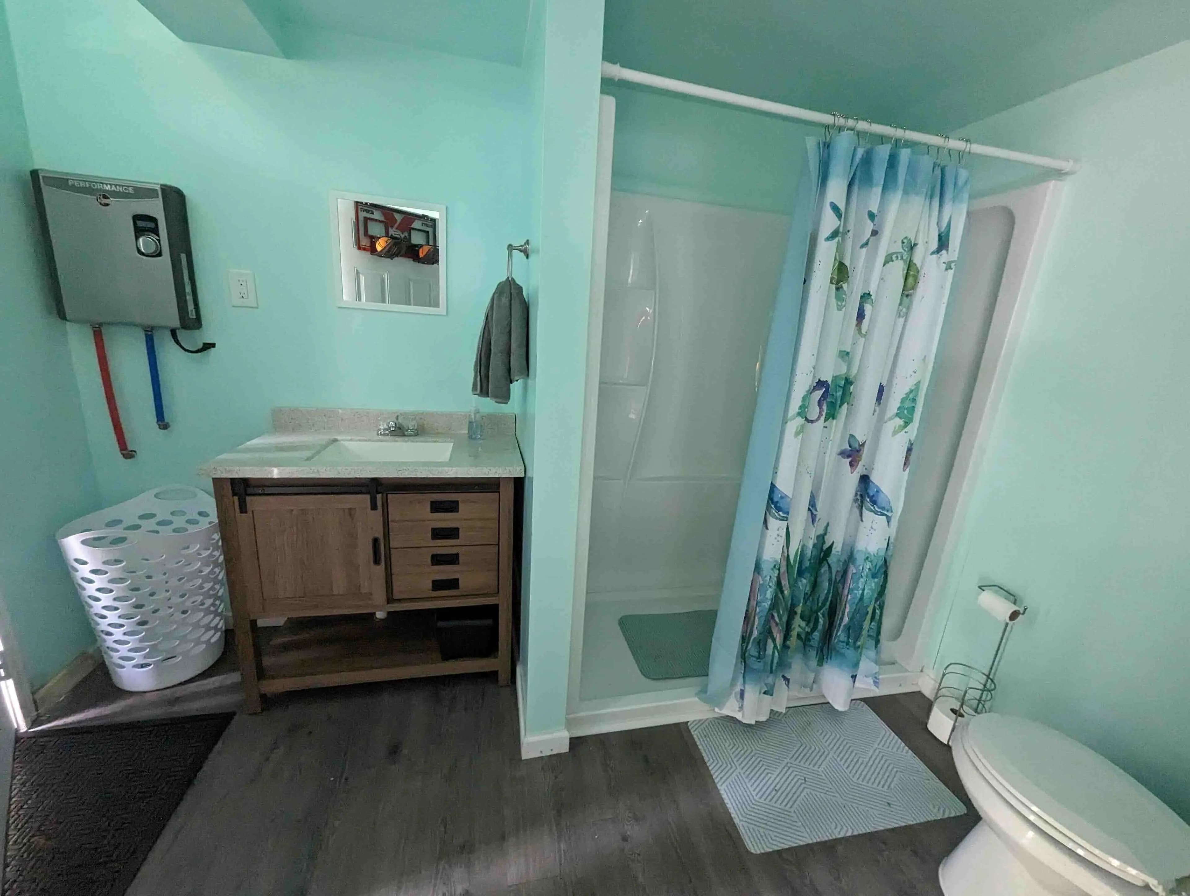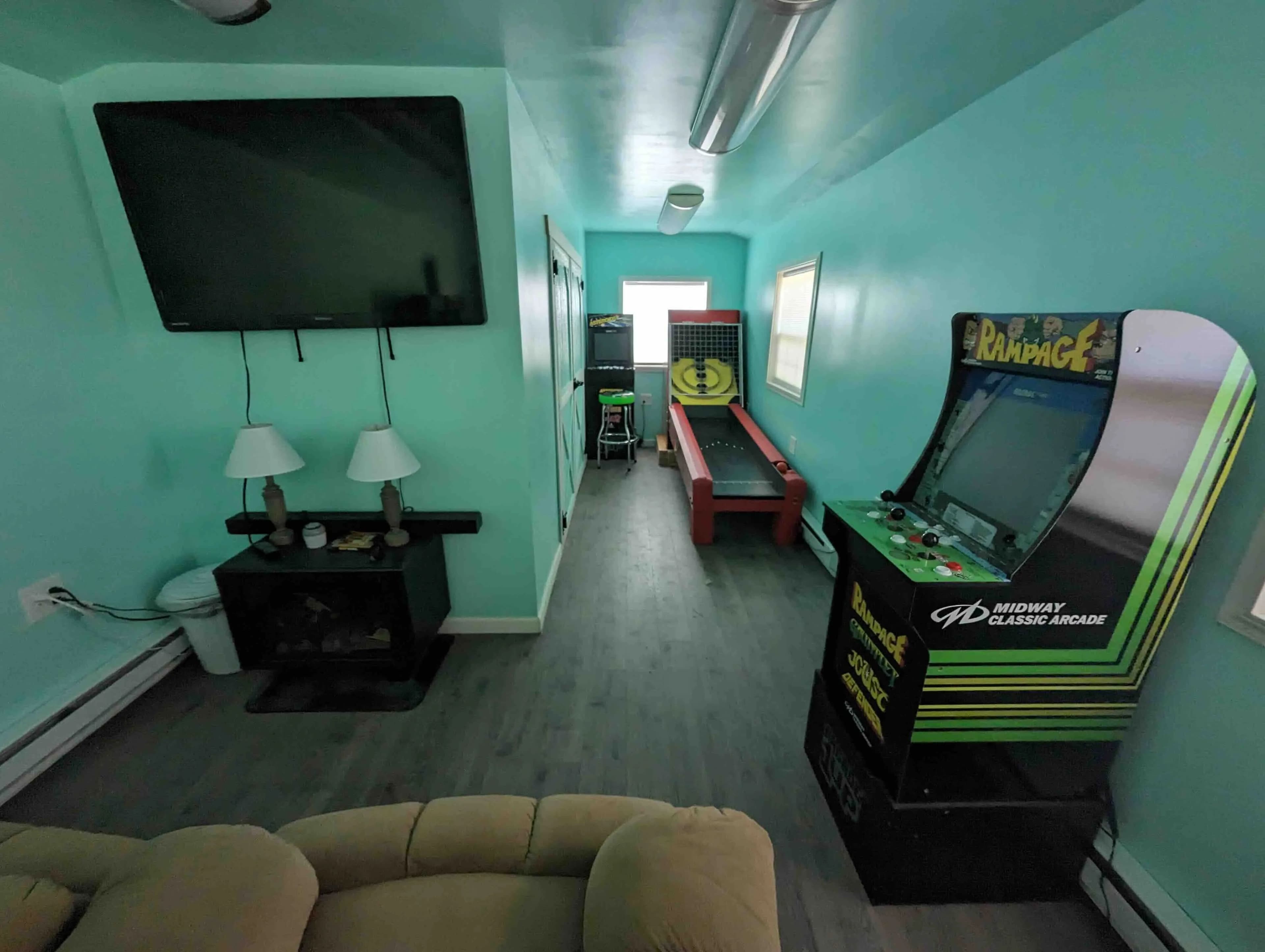 The main camp is packed with features including a playground, volleyball court, horseshoe pit, shooting range, zipline, large dog kennel, and a 20’ x 40’ pavilion. Storage is abundant with two shipping containers, and a spacious 5th wheel camper with four slide-outs may be included in the sale. A newly reconstructed 16’ x 40’ building functions as a game room and includes hardwood floors, a full bathroom with shower and on-demand hot water, providing a fun and functional indoor space for guests.