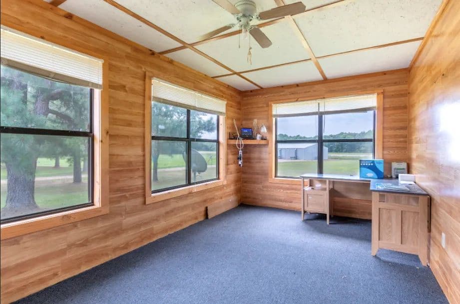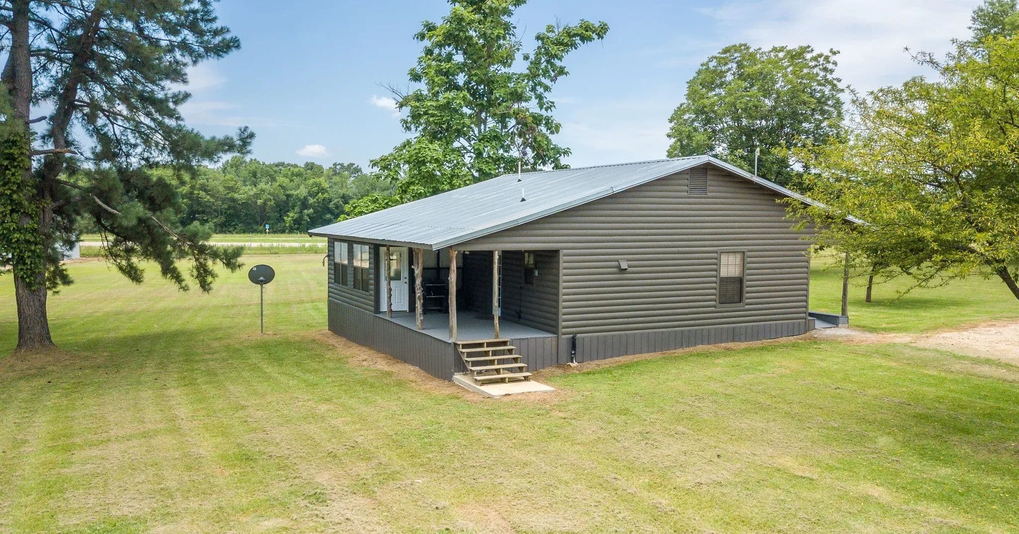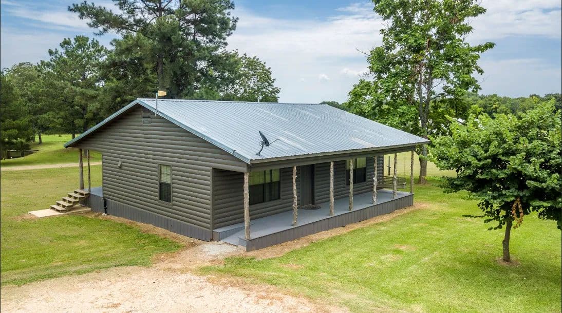 1,250± sq. ft. log cabin with two bedrooms, a full kitchen, and office space—perfect for a peaceful residence or on-site manager housing.