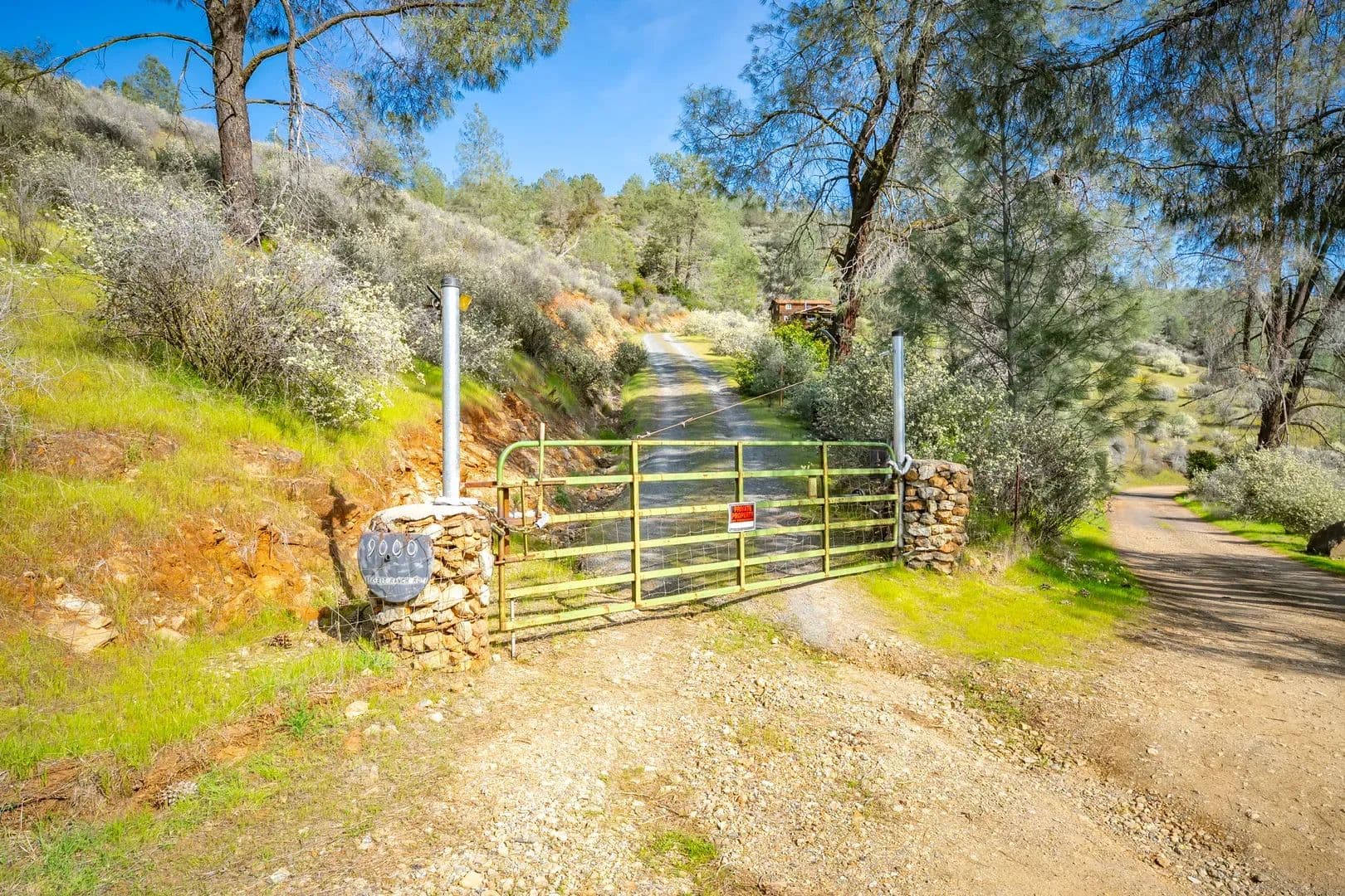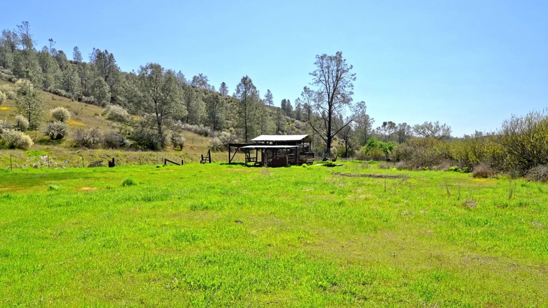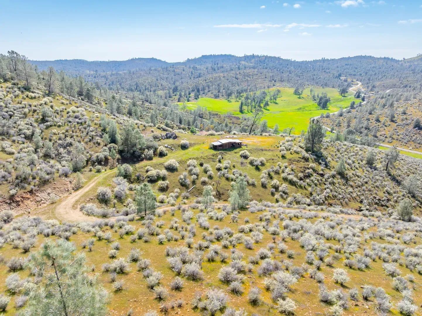 This property ranges from 1,000’ – 1,280 and is adjacent to public land on three sides. The property has convenient, well-maintained access via Red Hills Road and Six Bit Ranch Road. The gravel driveway to the ranch center features tree-covered rolling hills, valleys and expansive vistas. A second internal road provides access to a hilltop pad and another outbuilding, providing expansive vistas of the area. The property includes a beautiful creek along Six Bit Gulch winding through the lower meadow area and ending in nearby Lake Don Pedro. A quartz mine is on site and a variety of native conifers, other trees and vegetation populate the land. APN: 064-190-002-000