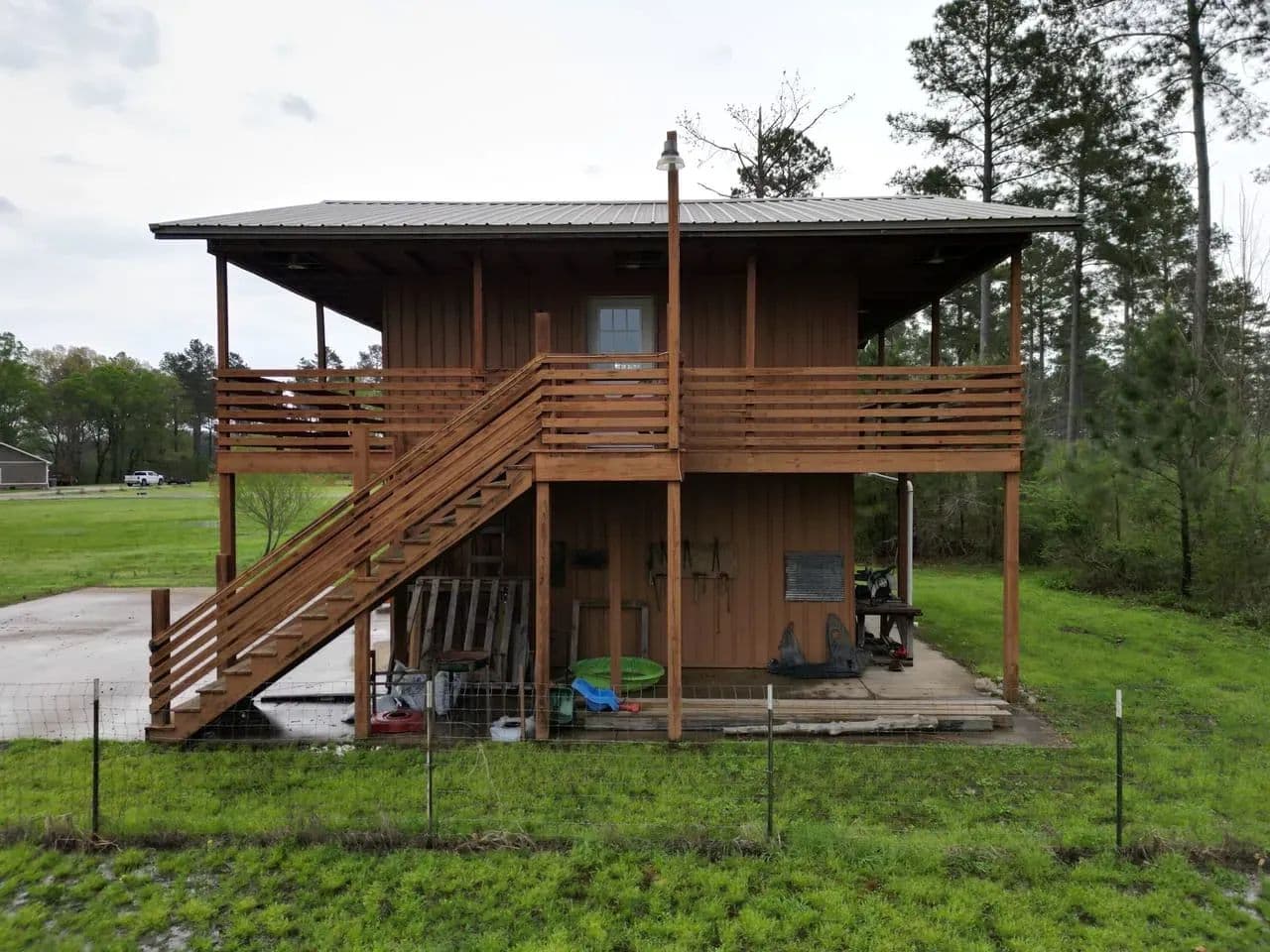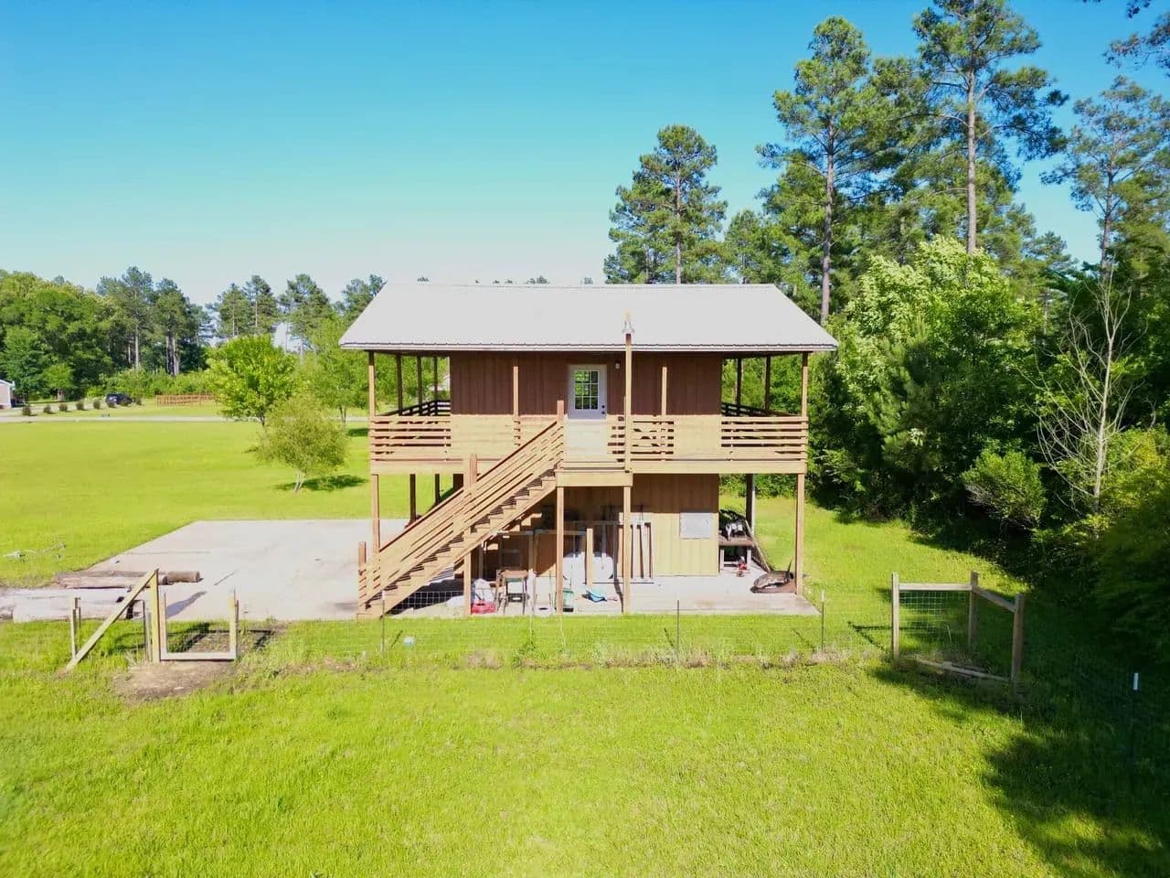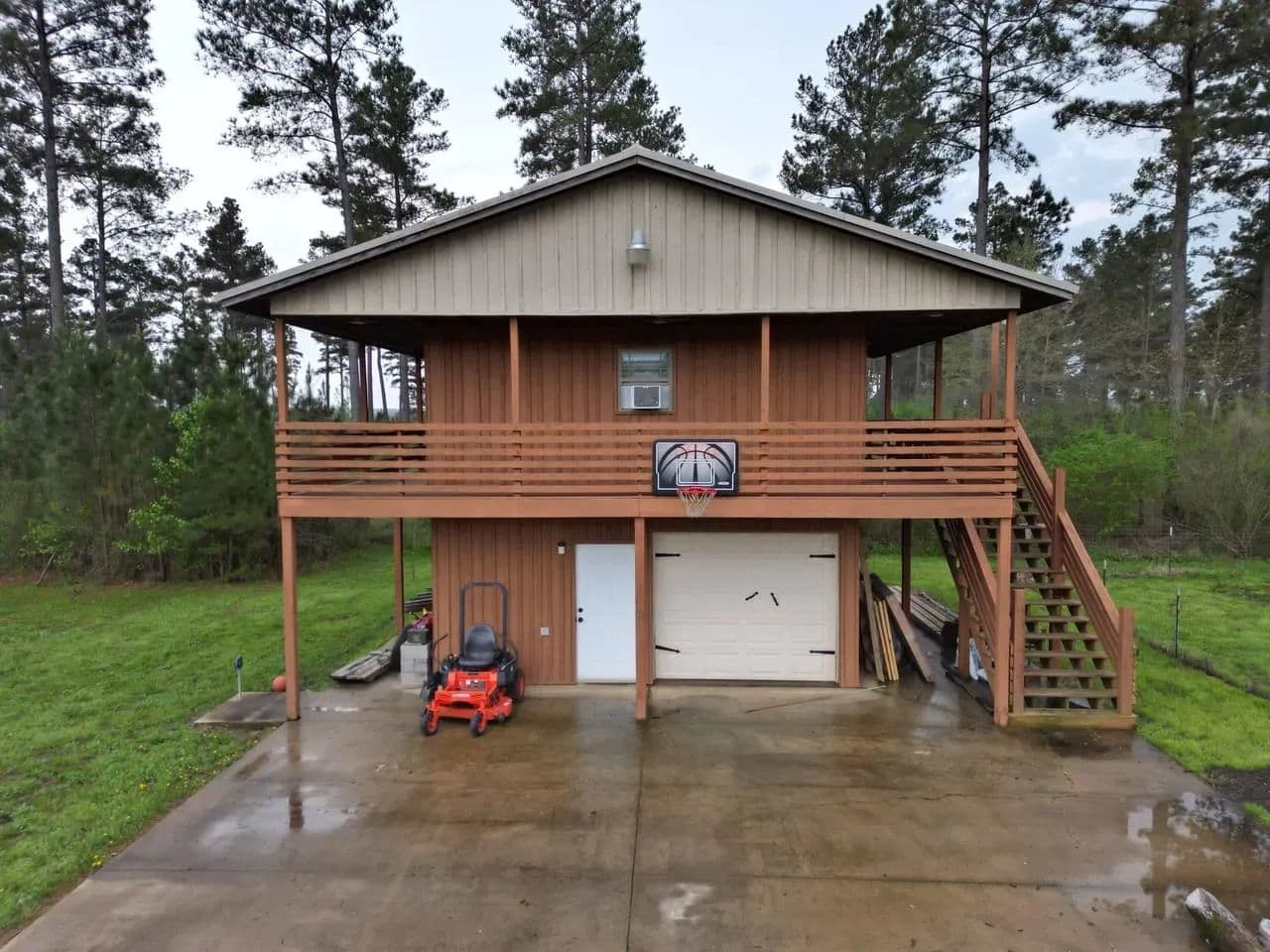 There’s plenty of backyard space for cookouts and hanging out. There’s an awesome hop out back with full living quarters upstairs and wraparound deck.