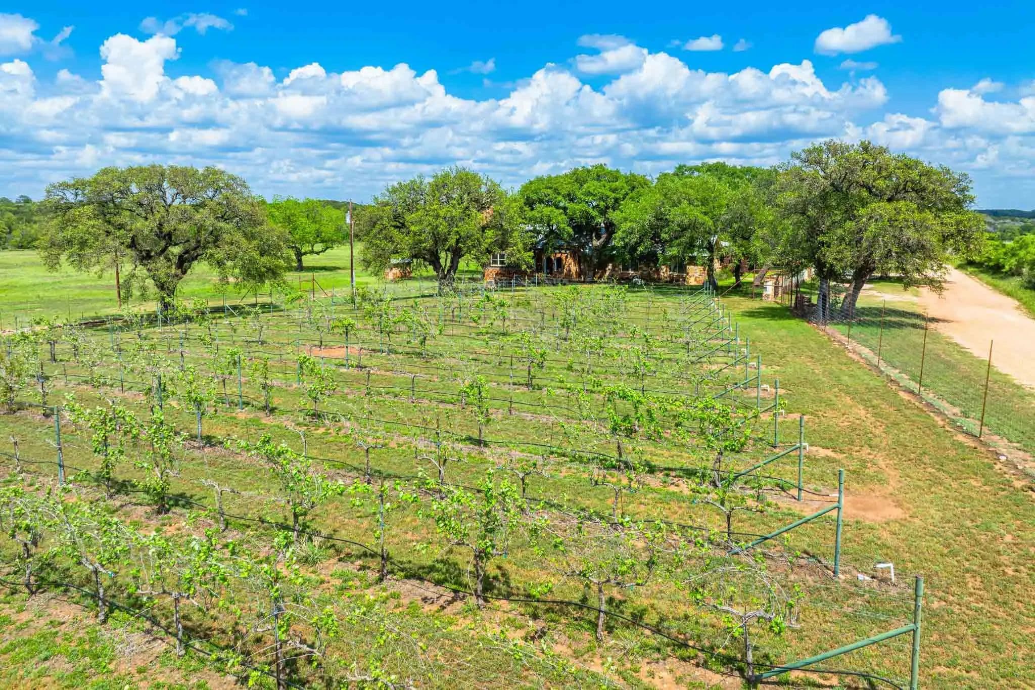 Wedding Oak Vineyard sits on 115± acres and features 4.5± acres of vineyards, a main home, and a guest home. The property showcases 2,100’± of frontage on both sides of Cherokee Creek. The rolling terrain ranges from 1,180’± to 1240’± asl, enhancing the Incredible Hill Country views.