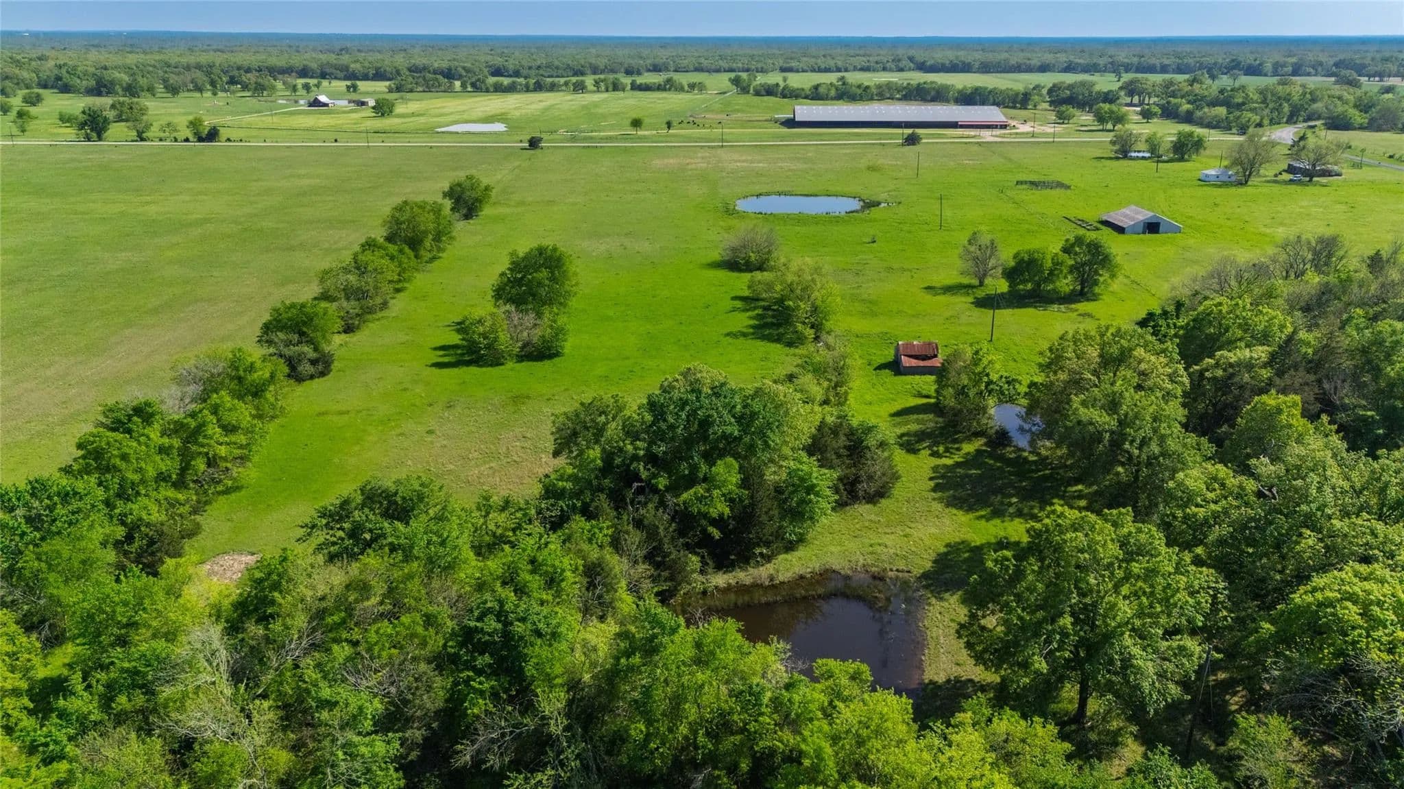 Discover a rare opportunity to own a beautiful 156.54 acres in Hopkins County on a corner tract with lots of road frontage and a brick farmhouse! With a mixture of pasture and woods, you have places for cattle to graze and for hunting habitats. Enjoy the legacy and history of this property that was owned by a family since the Civil War! Some old-growth timber can be found with some frontage on Wolf Pen Creek. For sports enthusiasts, an abundance of deer roam the property. For the rancher, level fields of native grass, 6 ponds, and good fencing with cross fencing provides plenty of support for livestock. A well-maintained milking parlor and pole barn with working pens give you options for storage or other use. And no worries--there are NO solar or lithium leases. Owner will retain 50% of the mineral estate. Inside the solid brick farmhouse, you can spread out with 2 living areas. Or make the oversized family room, with half bath and access to front and back of house, a third bedroom. Lots of cabinets, electric cooktop, and wall oven, come with the u-shaped kitchen that has room for an eat-in area. A separate dining area is connected to the front living room. You'll appreciate the crisp-white walls that brighten up the interior space. Plus you have an attached carport and a storage building near the house. Take advantage of the boundless options of this amazing ranch at the corner of two FM highways!