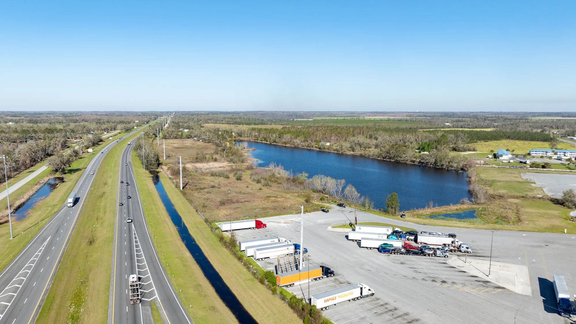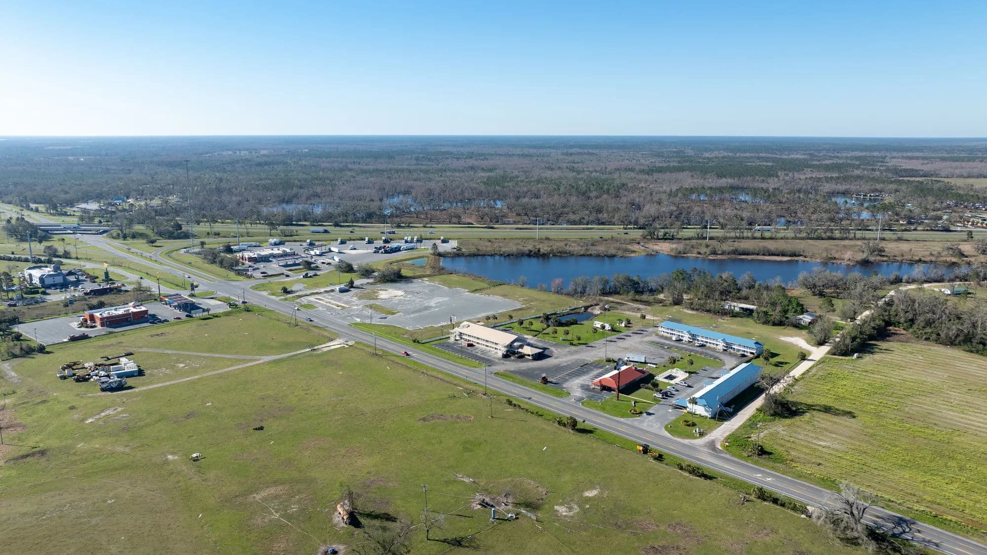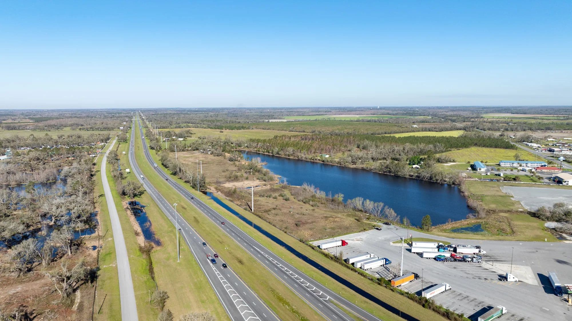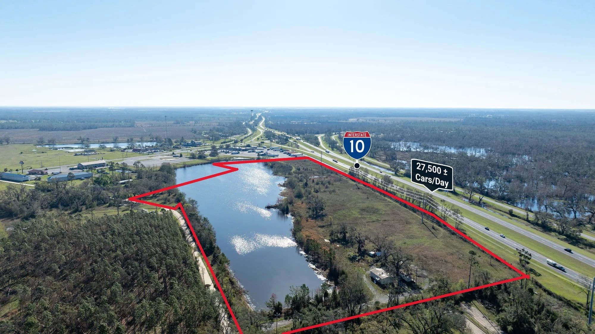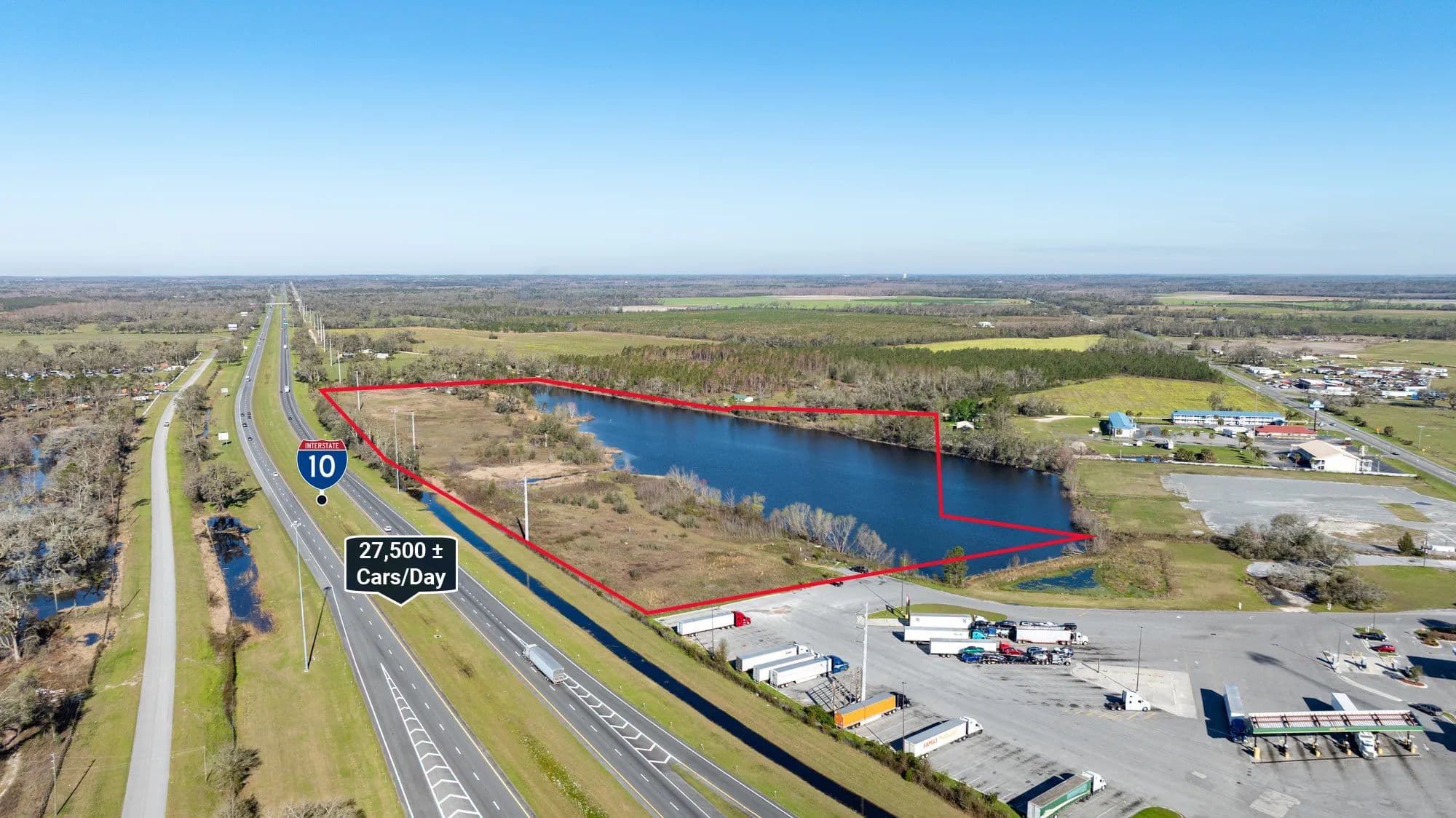The Madison I-10 Interchange property offers a unique chance to acquire a substantial commercial tract situated along a high-traffic interstate at a prime exit location, with business-friendly zoning already in place. With multiple entry points from State Road 53 and Genoa Way, the property allows flexibility for separate access roads or multiple points of entry to suit your business needs. A picturesque pond adds a recreational element and enhances the property's appeal. Boasting over 1,990 feet of Interstate frontage, the site provides exceptional visibility for your business.