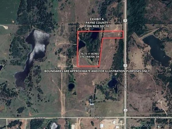 16.73 +/- ACRES WITH MULTIPLE PONDS IN STILLWATER – JUST 6.5 MILES TO OSU AND 7 MILES TO ESKIMO JOE’S, WALMART, CHICK-FIL-A, AND MORE! This property is a great fit for OSU professors, administrators, or students looking to build a forever home or income-producing rental. Whether you’re planning a farmhouse, a modern build, or a weekend cabin, the open space, mature trees, and natural landscape give you the room and setting to do it. Two ponds add real value and flexibility to the land. Whether you're into fishing, livestock, or just want water access on your own property, these established ponds give you built-in water sources—ideal for livestock, fishing, or wildlife. The layout offers a strong setup for small-scale ag operations, hobby farming, or recreational use. Whether you're running cattle, setting up food plots, or building out rental cabins, the groundwork is here. The property has direct road frontage on US-177, just 2 miles to the Cimarron Turnpike, under 5 miles to US-64, 7 miles to US-412, 8 miles to HWY 51, and 14 miles to I-35. That means easy access for equipment, materials, or tenants. You’re also close to Boomer Lake (4.5 miles), Lake McMurtry (8 miles), and Carl Blackwell Lake (9 miles), making this land a great base for hunting, fishing, or weekend use. Positioned between OKC (51 miles) and Tulsa (60 miles), making it easy to tap into both markets for work, services, or entertainment. This property is in a growing area with long-term potential. Whether you're building for yourself or investing with an eye on future growth, this land checks all the boxes. Call today to schedule your showing! Additional land available. Agent is partial owner. Buyer’s agents welcome!