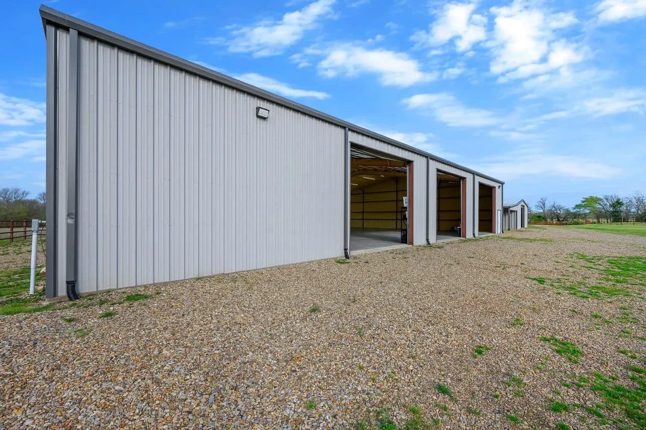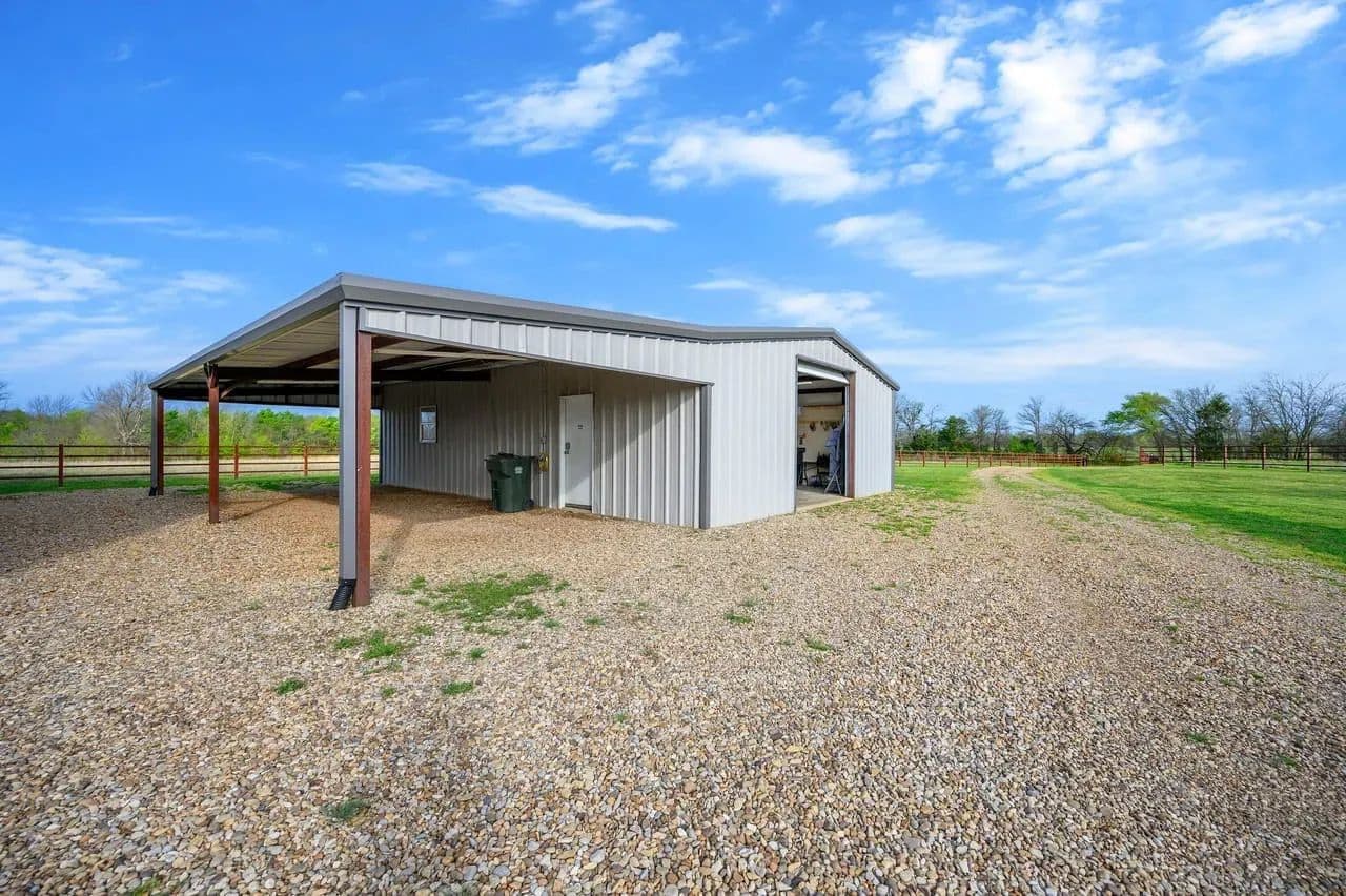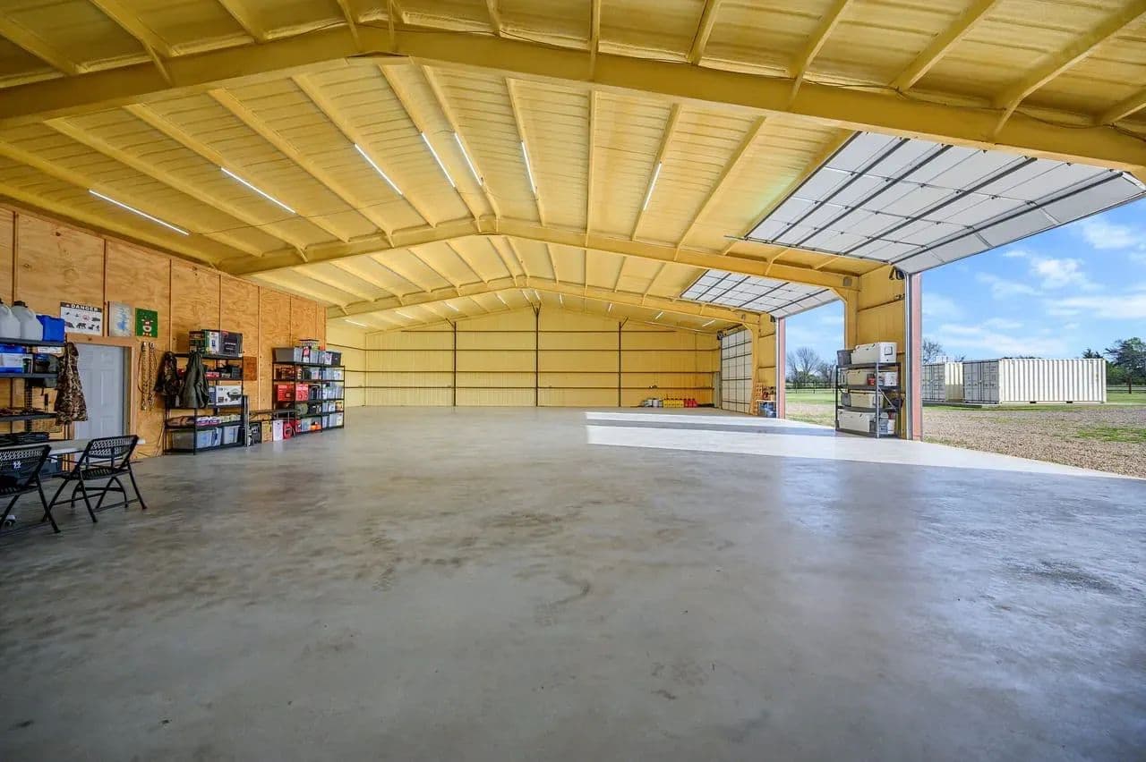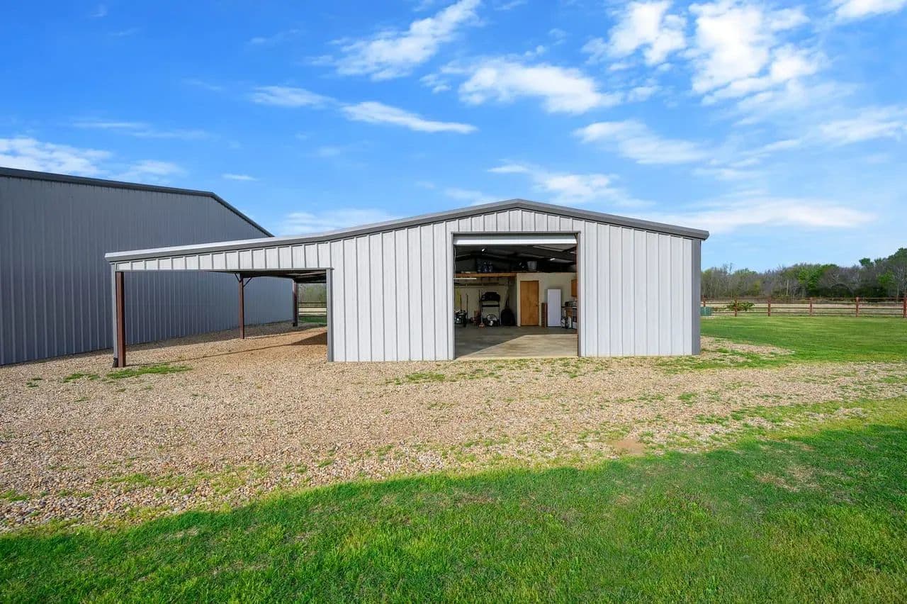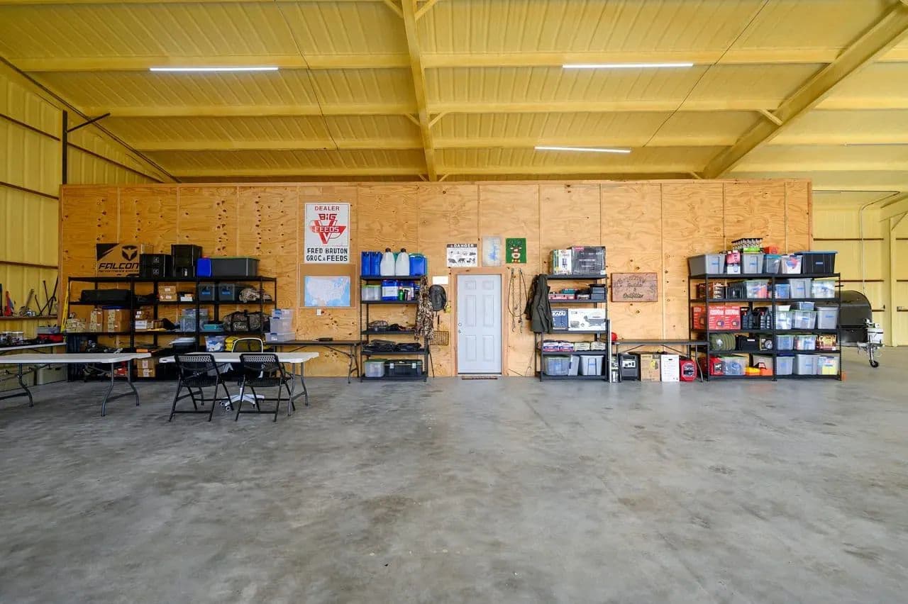 Utility Buildings: There is a large 75 x 100 steel frame utility building featuring climate-controlled heat & air, overhead LED lighting, overhead fixed windows provide additional natural light, 1-inch-thick spray blown insulation allowing a safe, reliable and cost-effective long-term storage option. This insulation seals in gaps and lowers energy consumption creating a more stable indoor efficient environment. This large metal equipment barn is ideal for storing your tractors, mowers, rakes and bailers. The utility building area including 16 ft walls and three14 ft rollup doors, built in shelving and a concrete floor is an amazing storage space and can handle all equipment storage needs. The smaller versatile 30 x 40 utility shop also includes spray insulation, climate controlled with electricity, LED lighting, heat and air system, and is currently utilized as a combination storage/workshop, but also includes a kitchen, stove, sink and bathroom which could be converted into additional living quarters. This structure fits a stereotypical barn image and could be repurposed into a barndominium. The large cattle barn includes 1 set of cattle shoots with electricity/lights, water trough and newly installed water well.