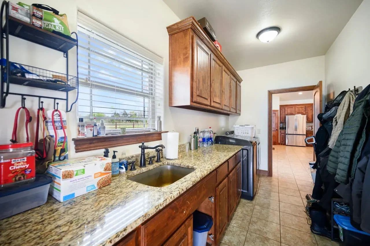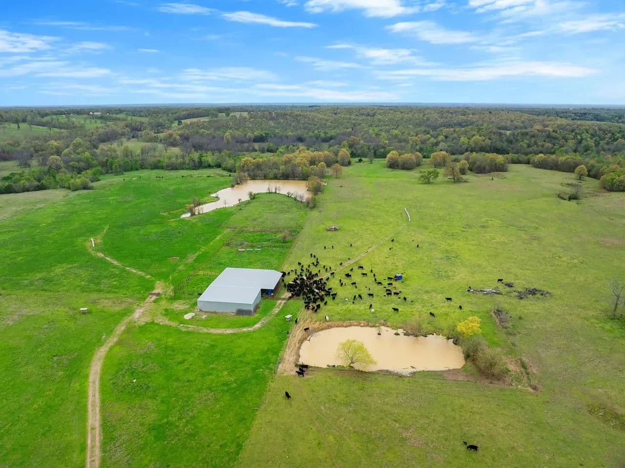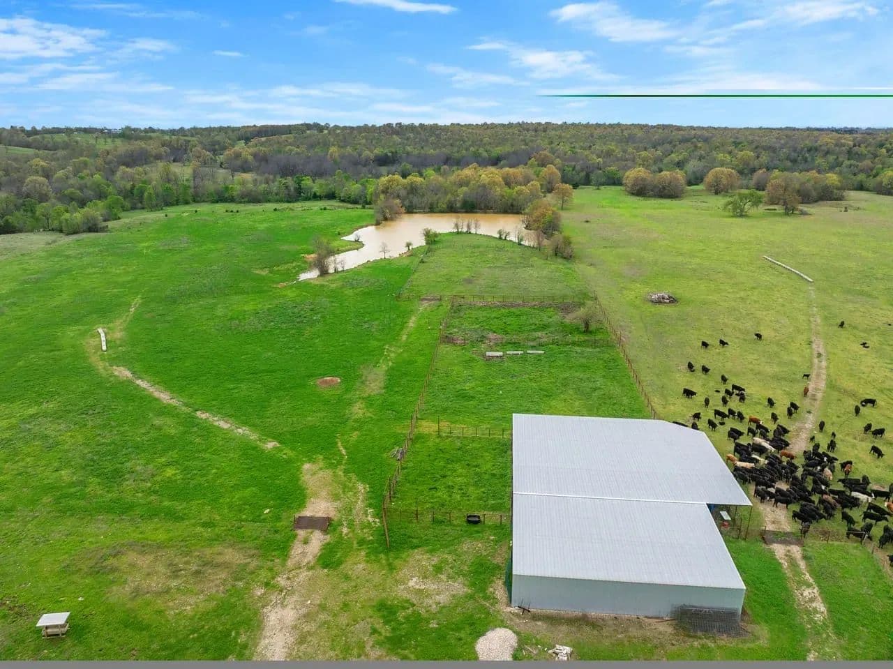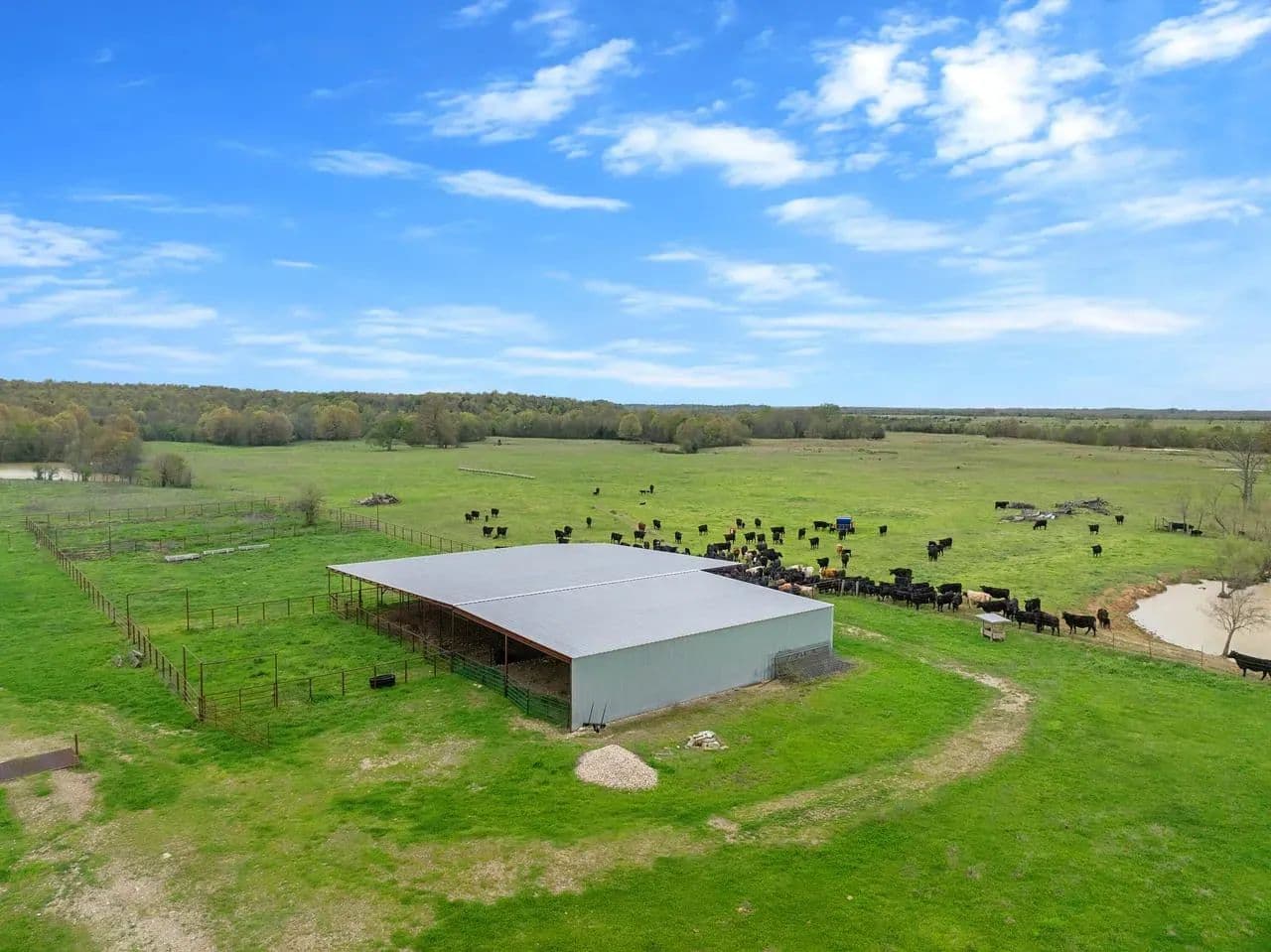 Utility Buildings: There is a large 75 x 100 steel frame utility building featuring climate-controlled heat & air, overhead LED lighting, overhead fixed windows provide additional natural light, 1-inch-thick spray blown insulation allowing a safe, reliable and cost-effective long-term storage option. This insulation seals in gaps and lowers energy consumption creating a more stable indoor efficient environment. This large metal equipment barn is ideal for storing your tractors, mowers, rakes and bailers. The utility building area including 16 ft walls and three14 ft rollup doors, built in shelving and a concrete floor is an amazing storage space and can handle all equipment storage needs. The smaller versatile 30 x 40 utility shop also includes spray insulation, climate controlled with electricity, LED lighting, heat and air system, and is currently utilized as a combination storage/workshop, but also includes a kitchen, stove, sink and bathroom which could be converted into additional living quarters. This structure fits a stereotypical barn image and could be repurposed into a barndominium. The large cattle barn includes 1 set of cattle shoots with electricity/lights, water trough and newly installed water well.