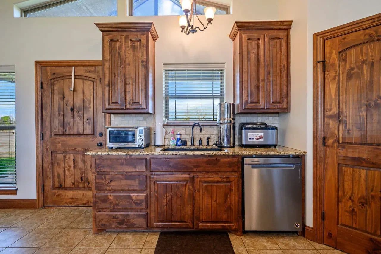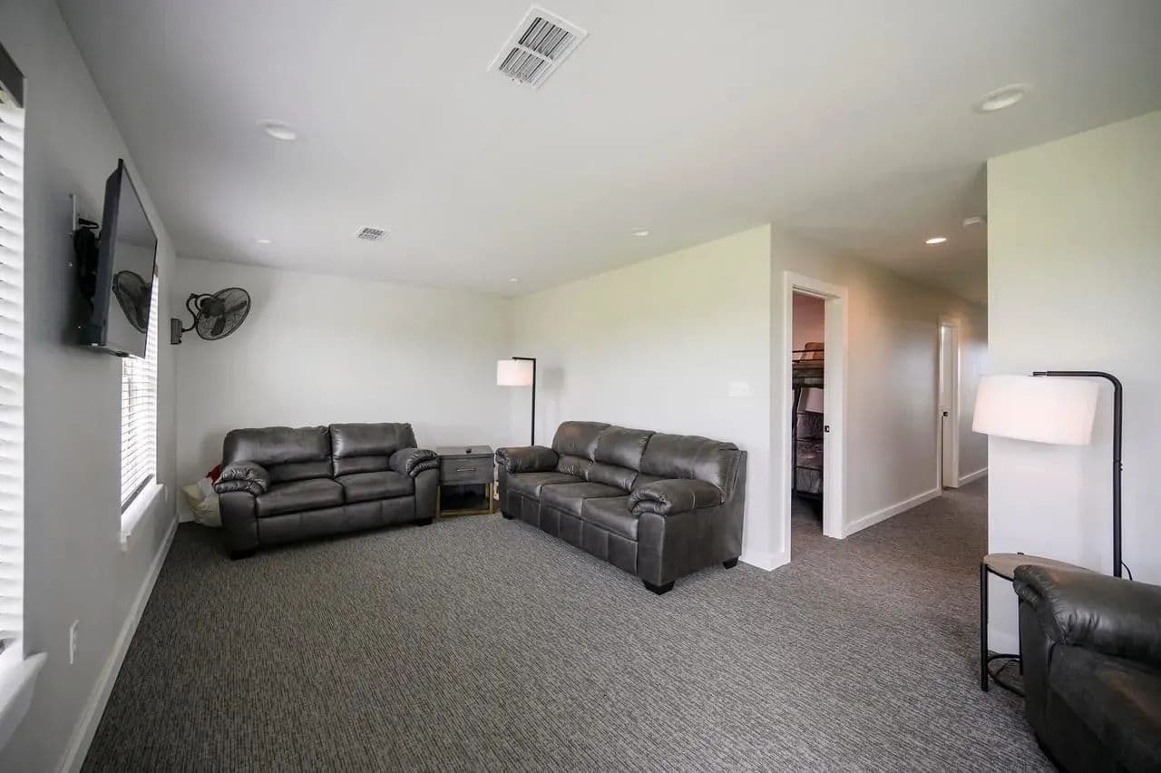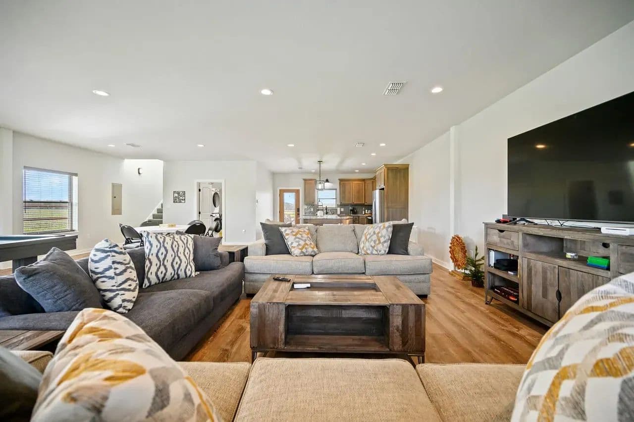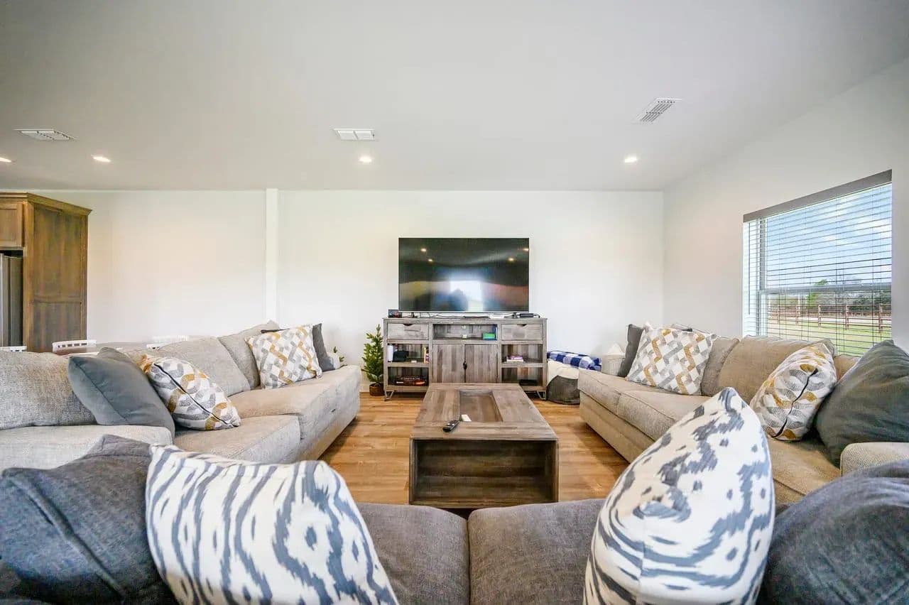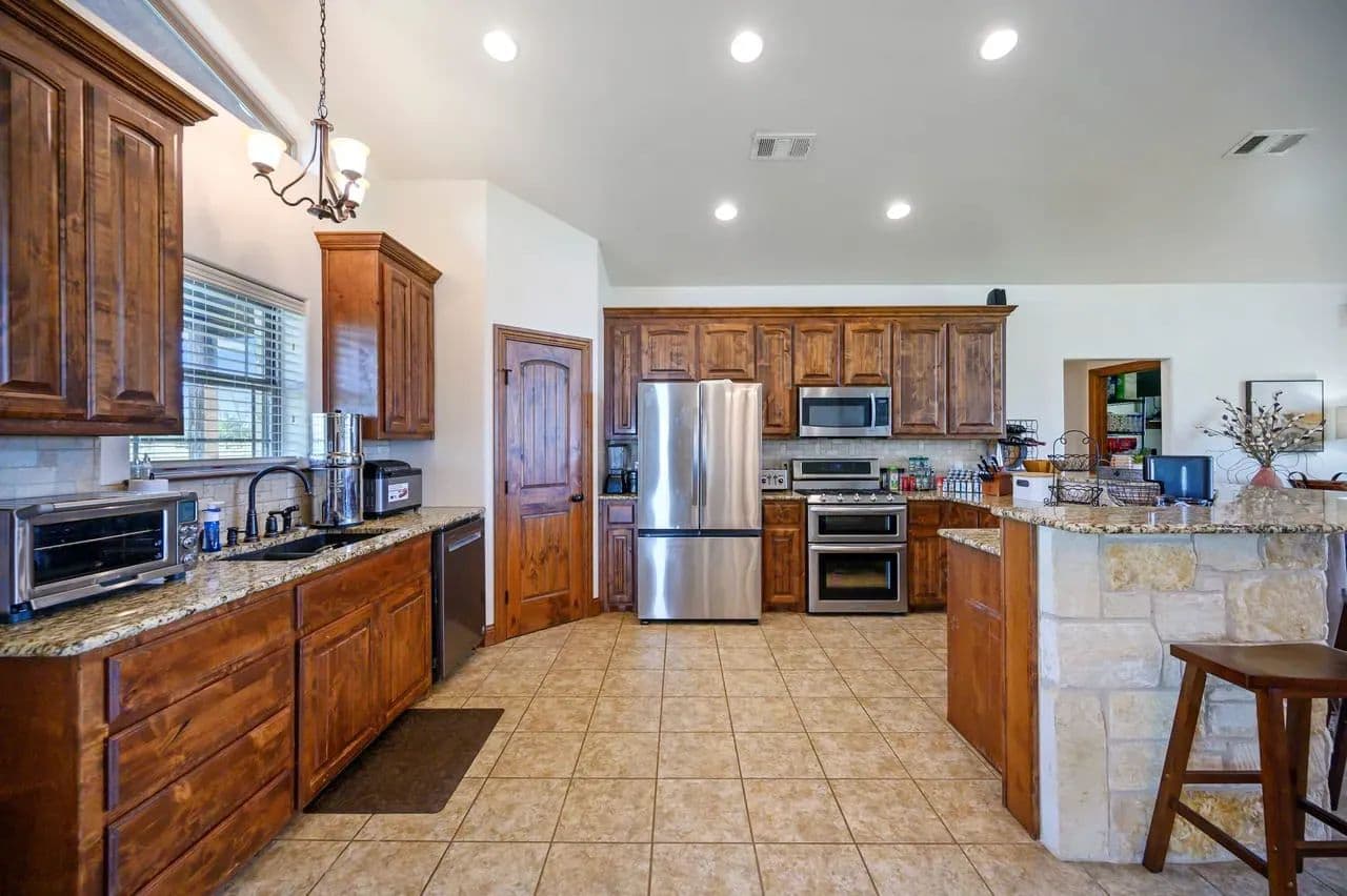 For additional entertainment you will find an amazingly modern 2-story bunk home with 1200 sq. ft on the lower floor boasting a full-service quality kitchen and 1200 sq. ft on the second level, comfortably sleeps 14 and can be expanded to 25. Full-sized quality pool table allows for plenty of entertainment and family fun. This cleverly designed custom bunkhouse with spacious bunkbeds and two primary master bedrooms allows for ideal distribution of space and family management and can serve as a private family retreat. Designed with a blend of modern design and exceptional quality. Every piece was selected to display that it was built with quality to last and a commitment to excellence and craftmanship using only premium high quality sourced materials.
