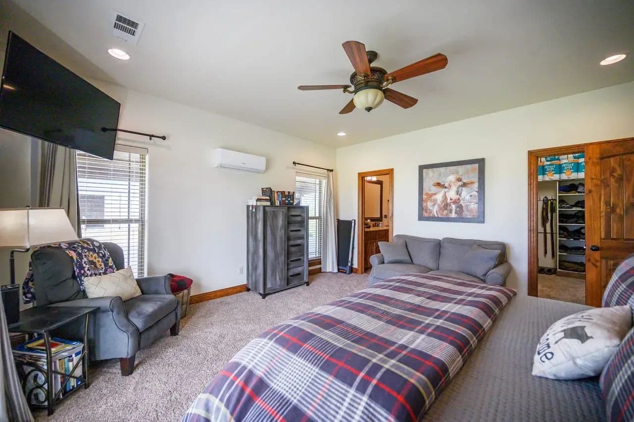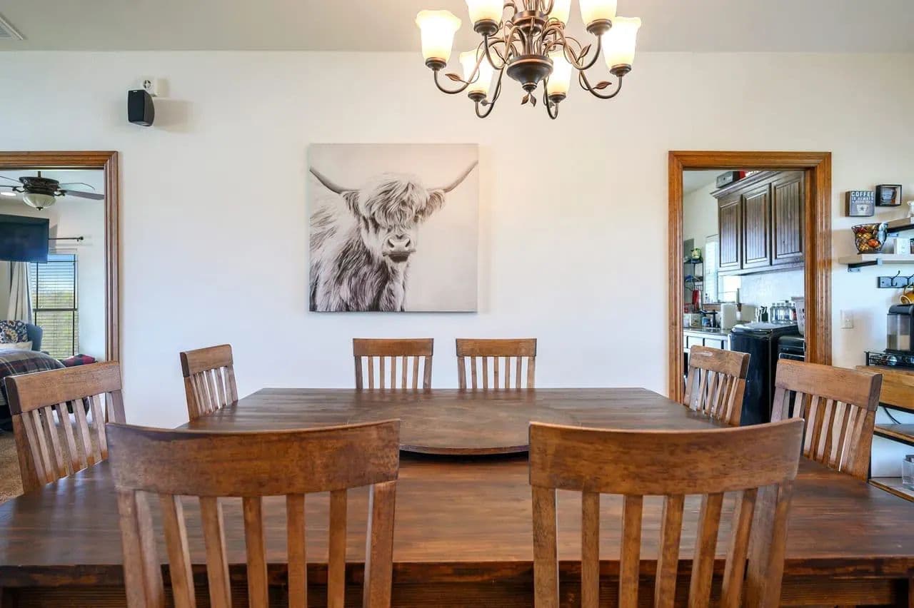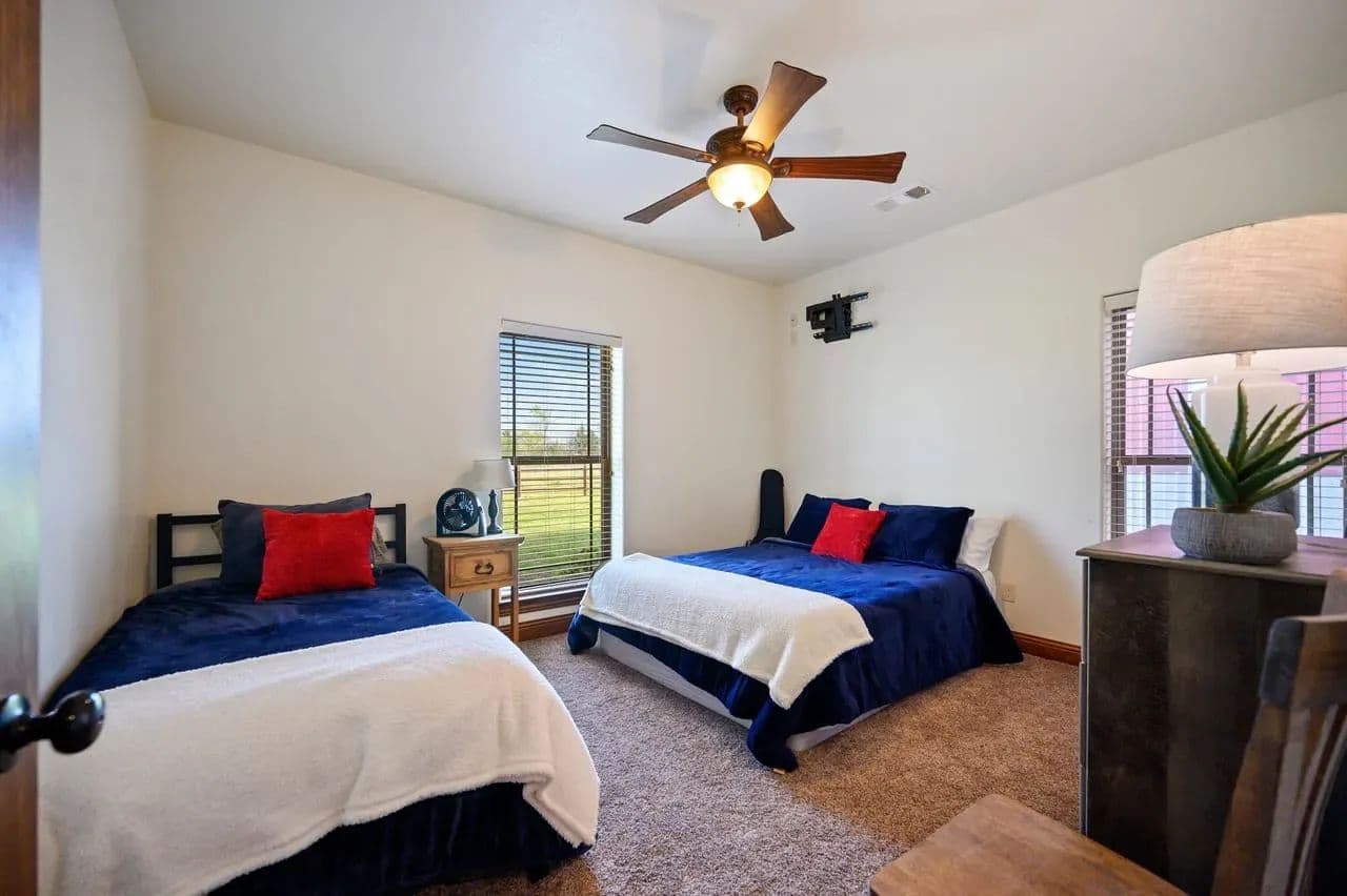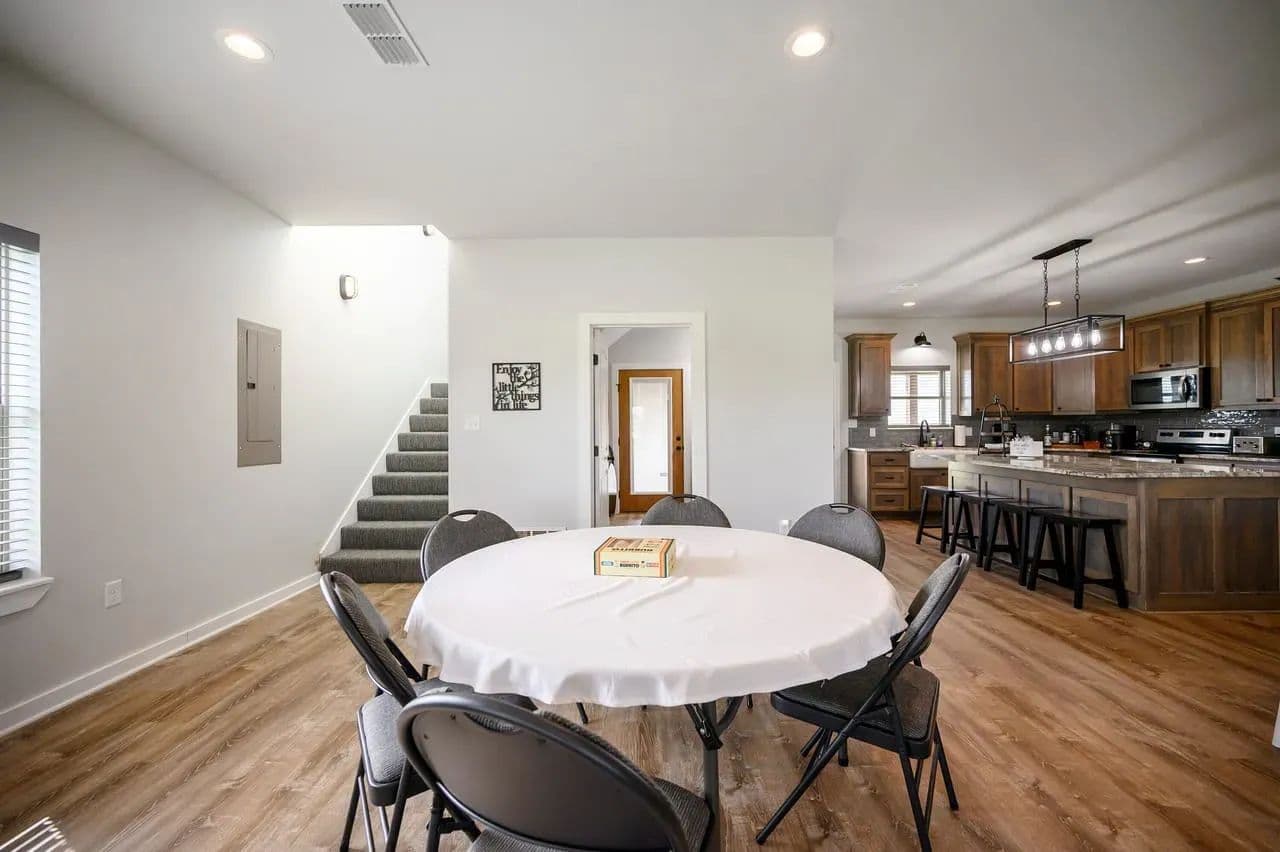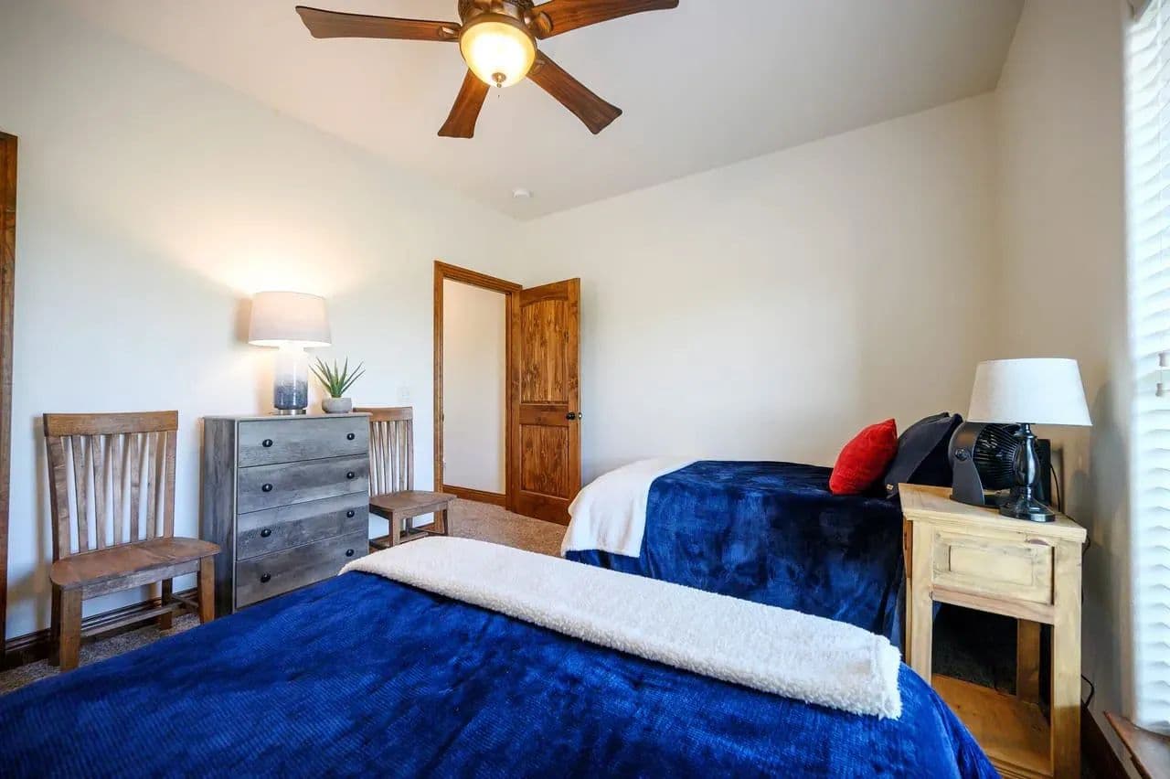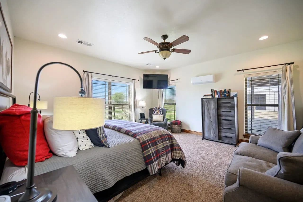 For additional entertainment you will find an amazingly modern 2-story bunk home with 1200 sq. ft on the lower floor boasting a full-service quality kitchen and 1200 sq. ft on the second level, comfortably sleeps 14 and can be expanded to 25. Full-sized quality pool table allows for plenty of entertainment and family fun. This cleverly designed custom bunkhouse with spacious bunkbeds and two primary master bedrooms allows for ideal distribution of space and family management and can serve as a private family retreat. Designed with a blend of modern design and exceptional quality. Every piece was selected to display that it was built with quality to last and a commitment to excellence and craftmanship using only premium high quality sourced materials.