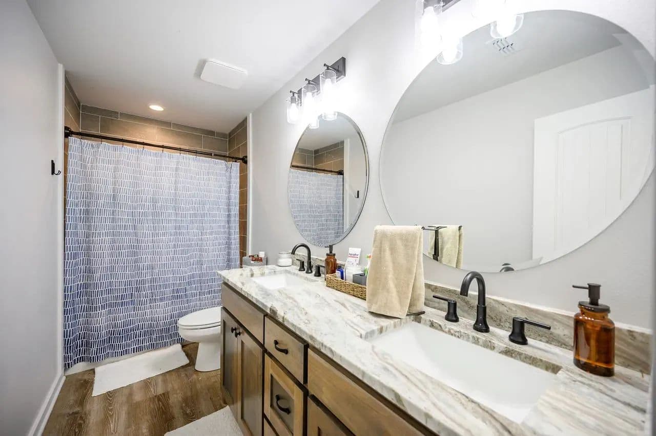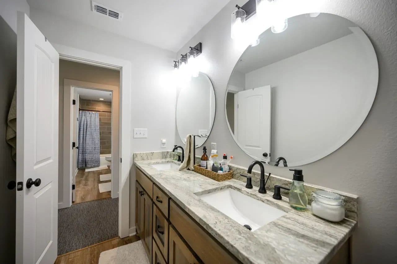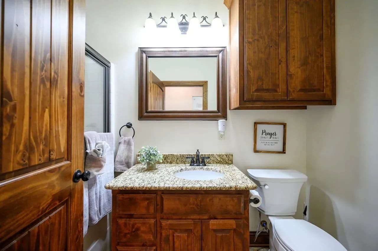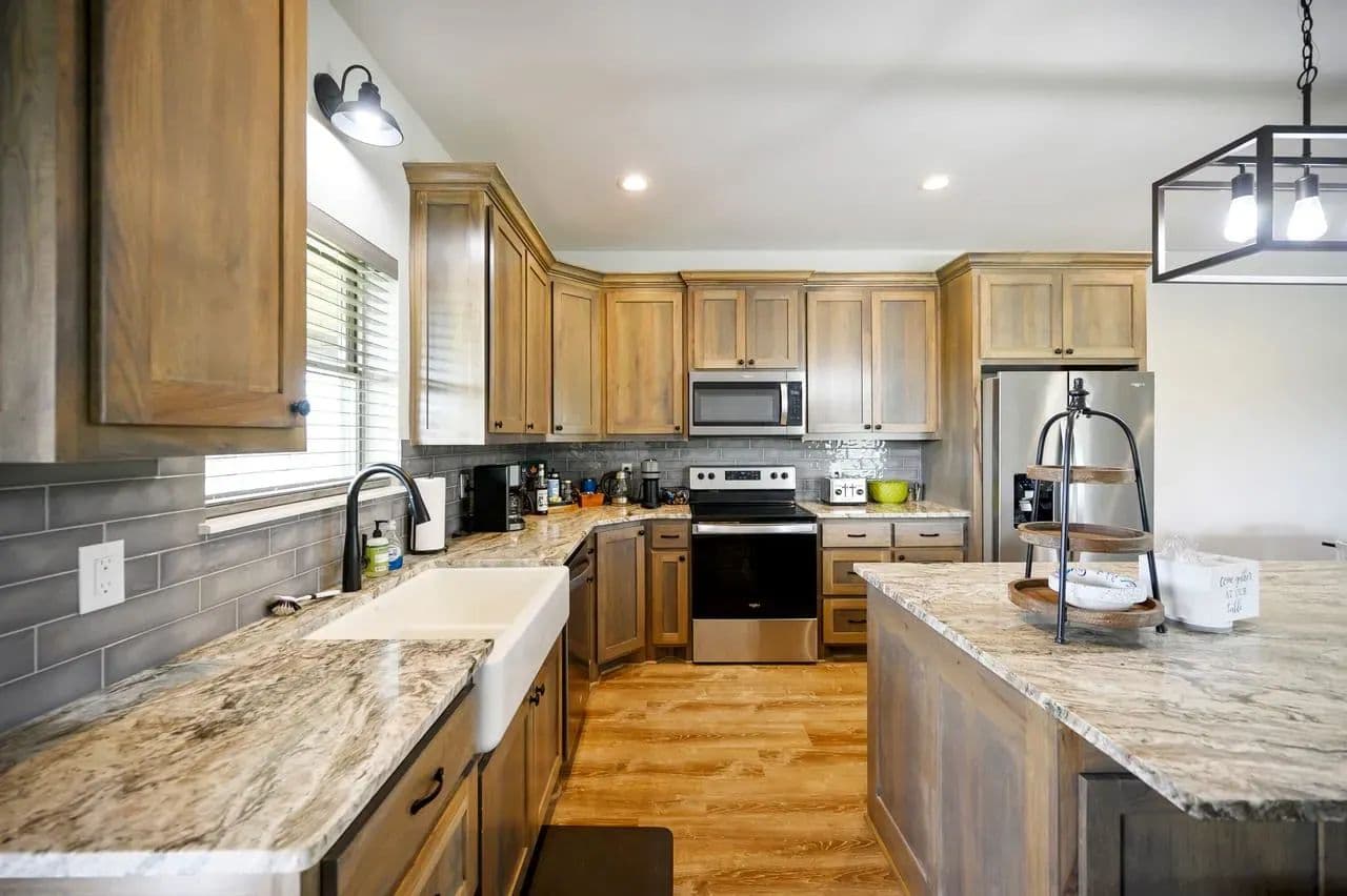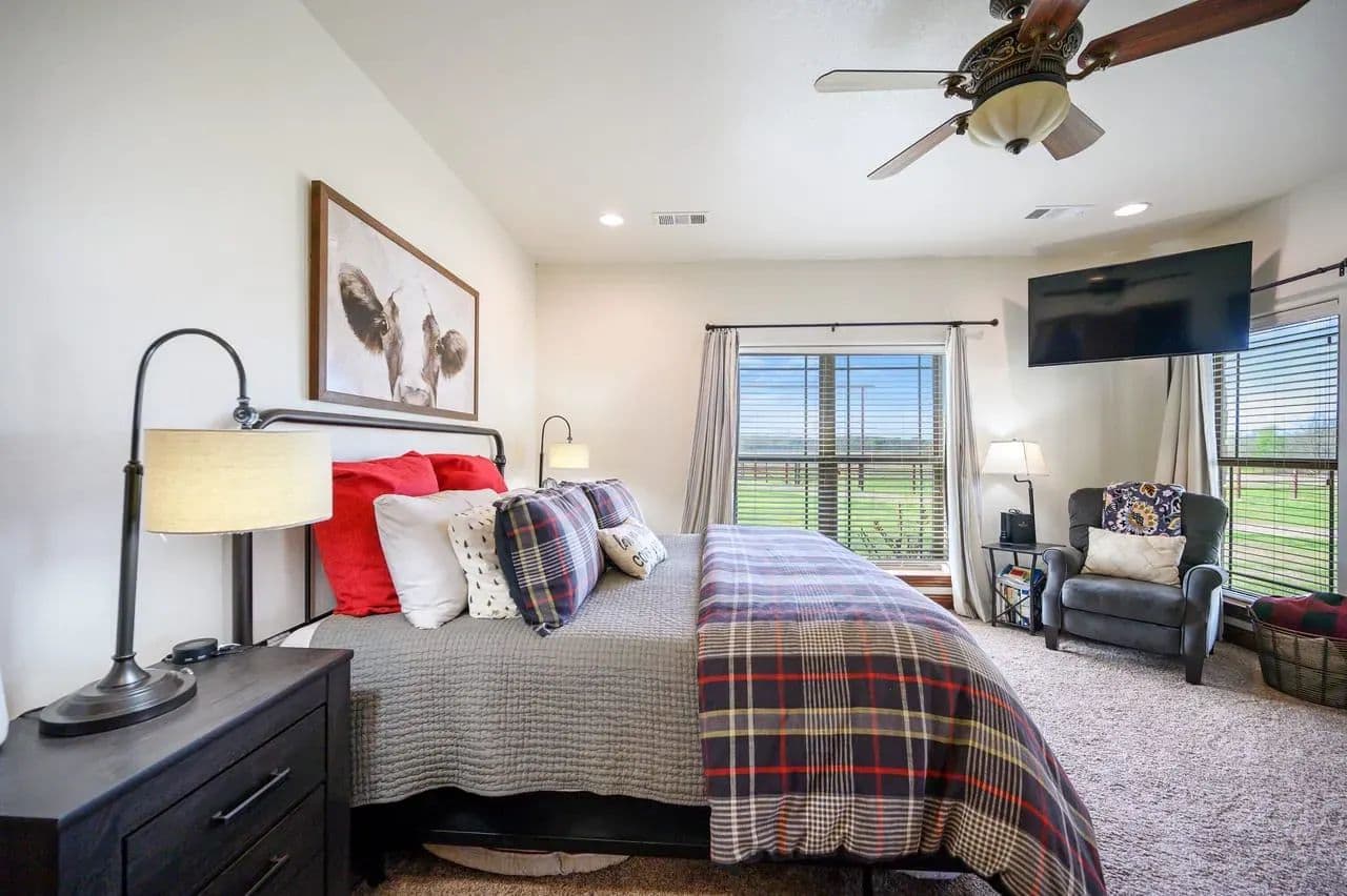 For additional entertainment you will find an amazingly modern 2-story bunk home with 1200 sq. ft on the lower floor boasting a full-service quality kitchen and 1200 sq. ft on the second level, comfortably sleeps 14 and can be expanded to 25. Full-sized quality pool table allows for plenty of entertainment and family fun. This cleverly designed custom bunkhouse with spacious bunkbeds and two primary master bedrooms allows for ideal distribution of space and family management and can serve as a private family retreat. Designed with a blend of modern design and exceptional quality. Every piece was selected to display that it was built with quality to last and a commitment to excellence and craftmanship using only premium high quality sourced materials.