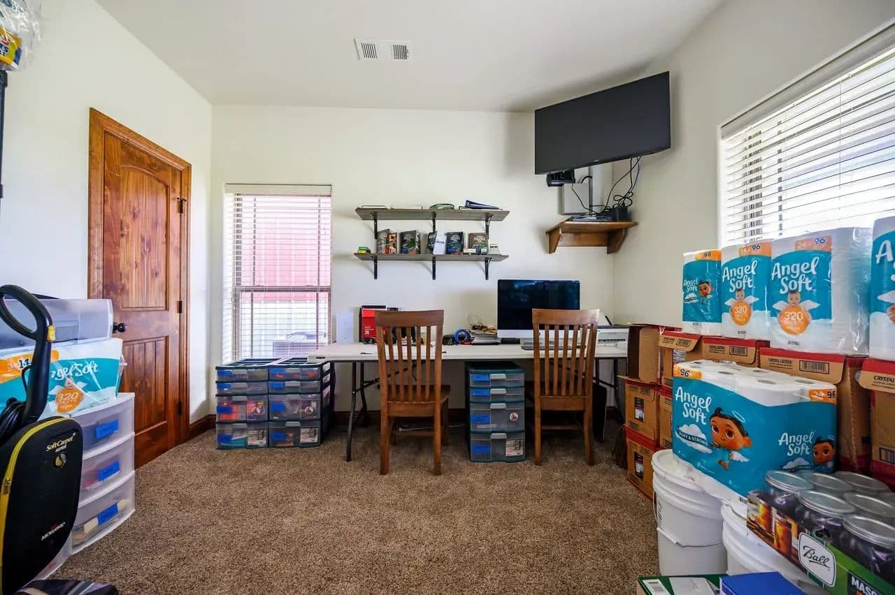The primary suite is a private retreat with a walk-in shower, separate vanities and walk-in closets, and even a cozy desk area. Two additional bedrooms and a versatile flex room provide unlimited potential for guest space or extra storage.