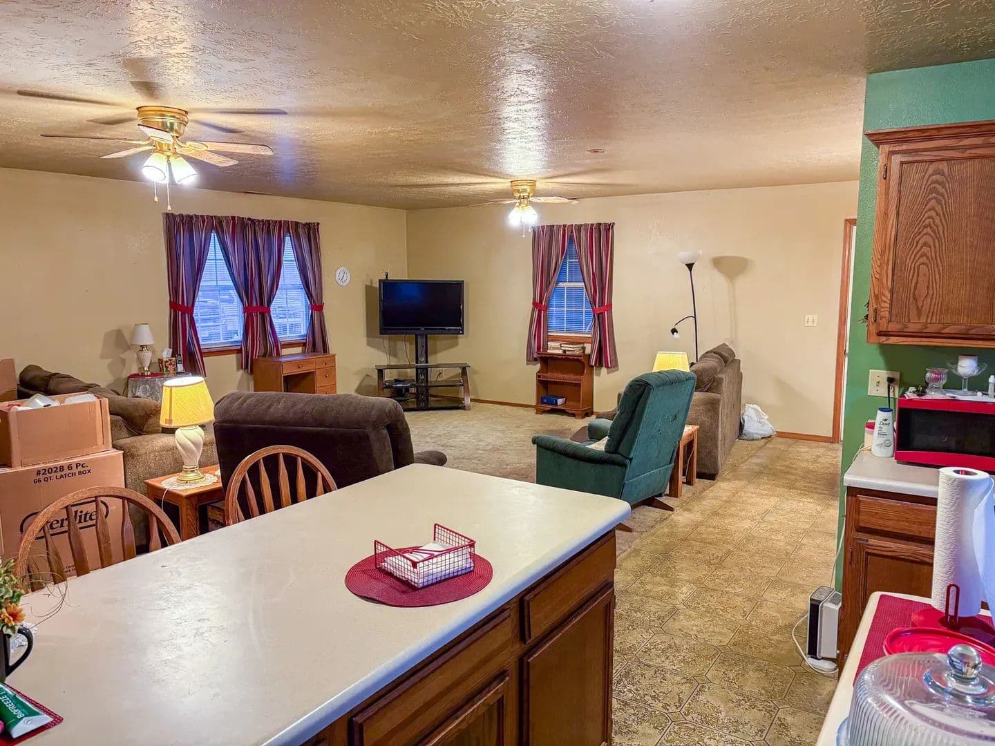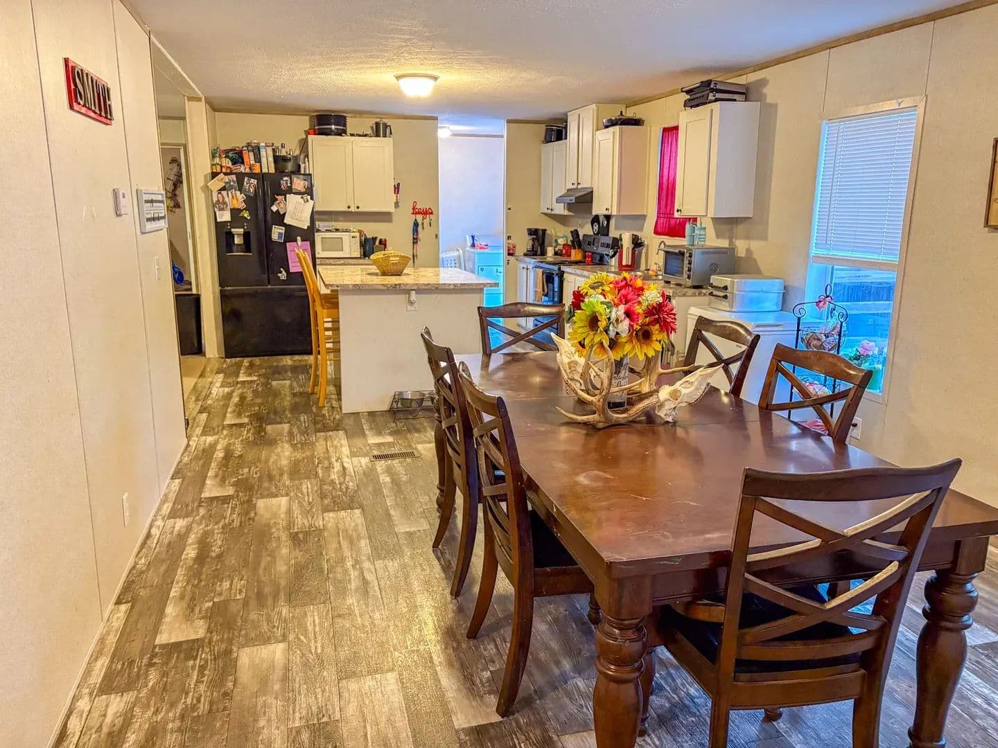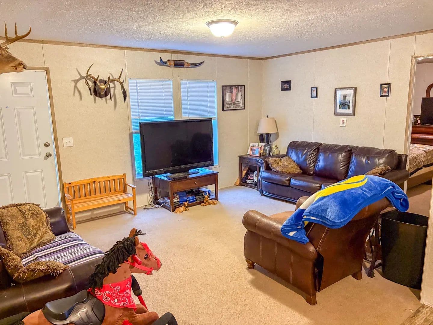 The 2nd home is a 2020 double wide offering 4 bedrooms, 2 baths, 1,404 sq ft, and has its own newly drilled well. The back deck overlooks a large meadow and faces the East making it an ideal location for drinking coffee and watching the sunrise. Both homes have their own power meters, wells, and waste water lagoons.