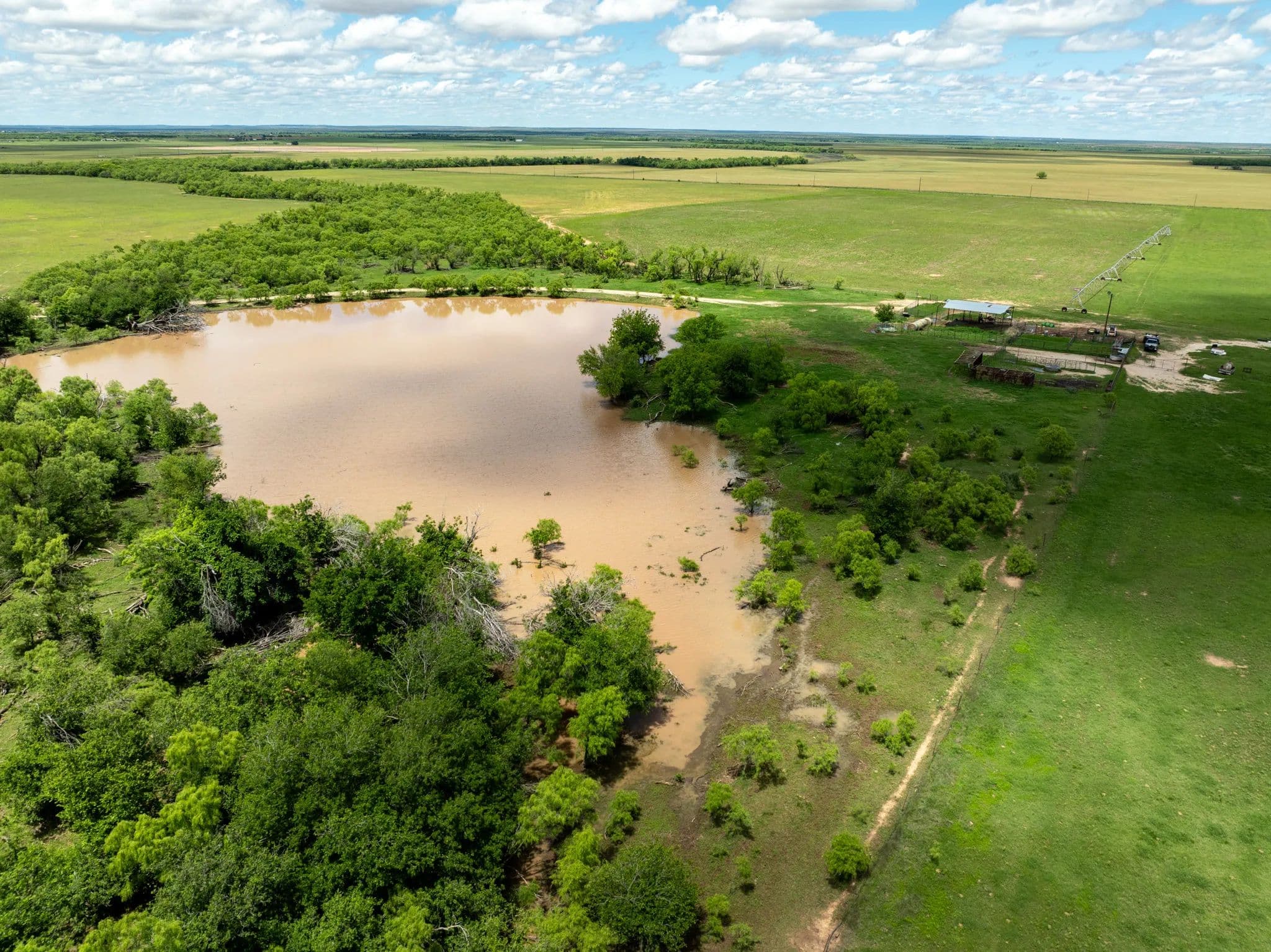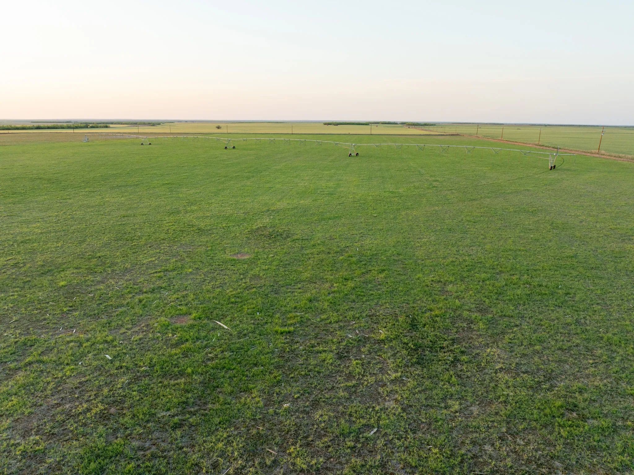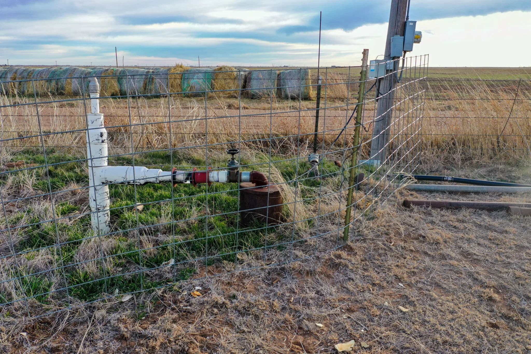 There are 4 water wells in total that can be used with the pivot to water the 40 acres. There is one well that is setup to be used for irrigating ~18 acres of grass with pods.