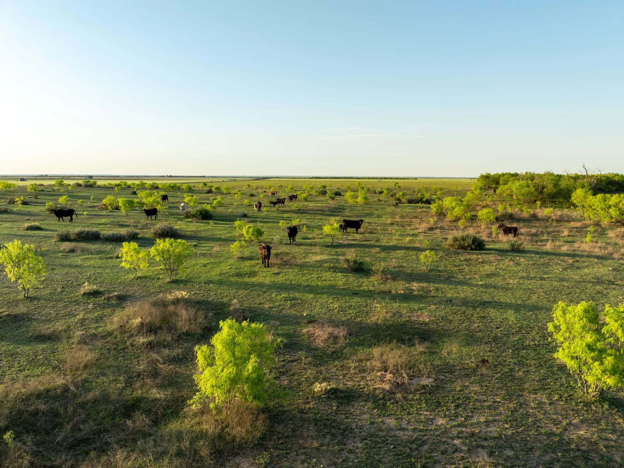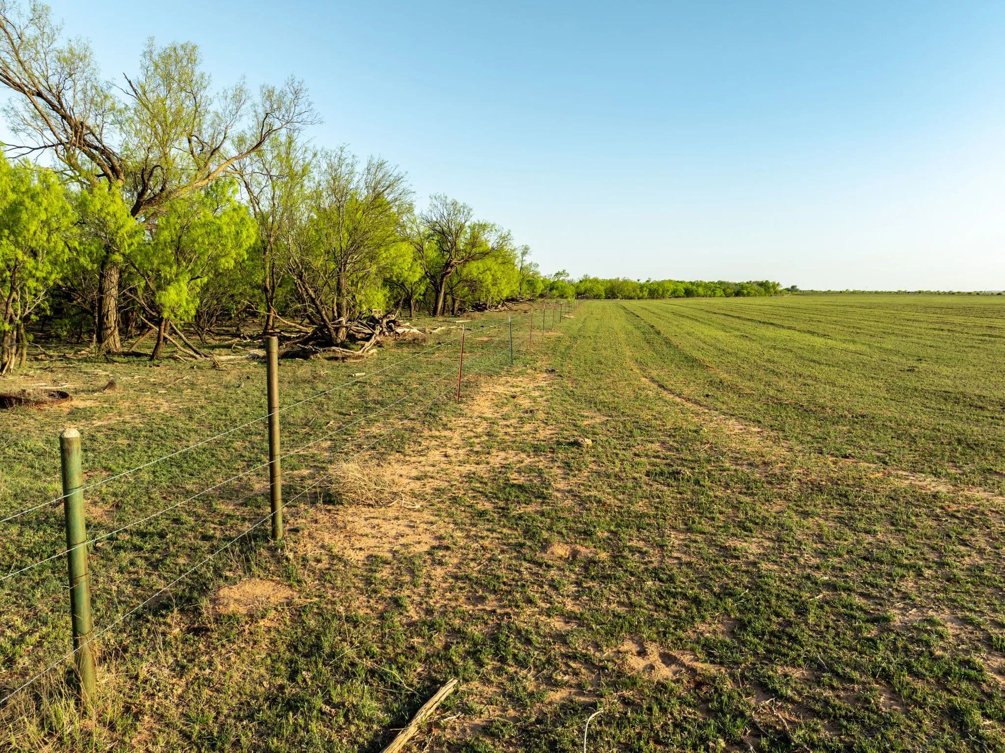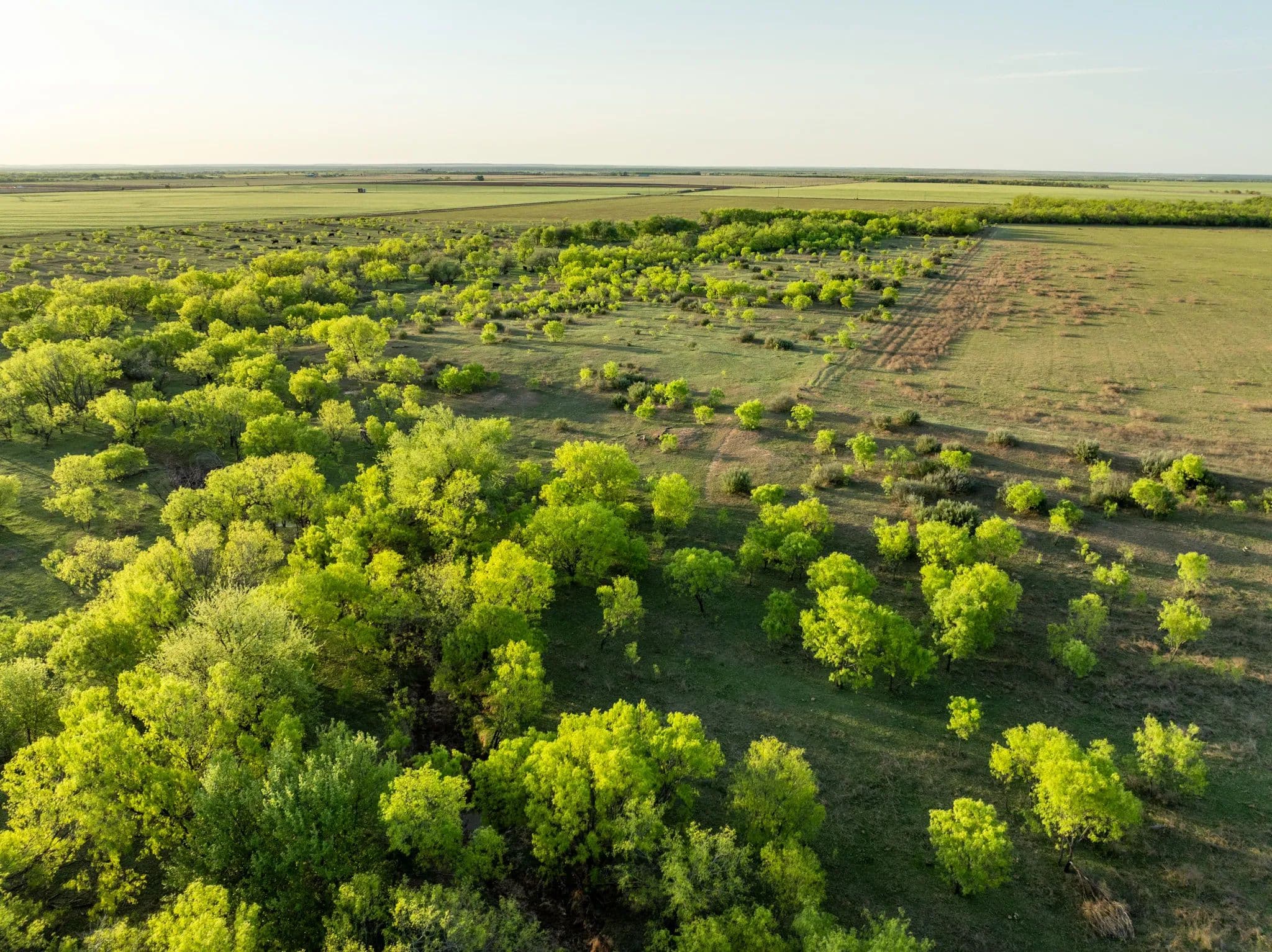 The native trees and Shrubs you can see in the pastures are Bull mesquites, Soap berry trees, Hackberry trees, Lote bush and a few willow trees along the creek.