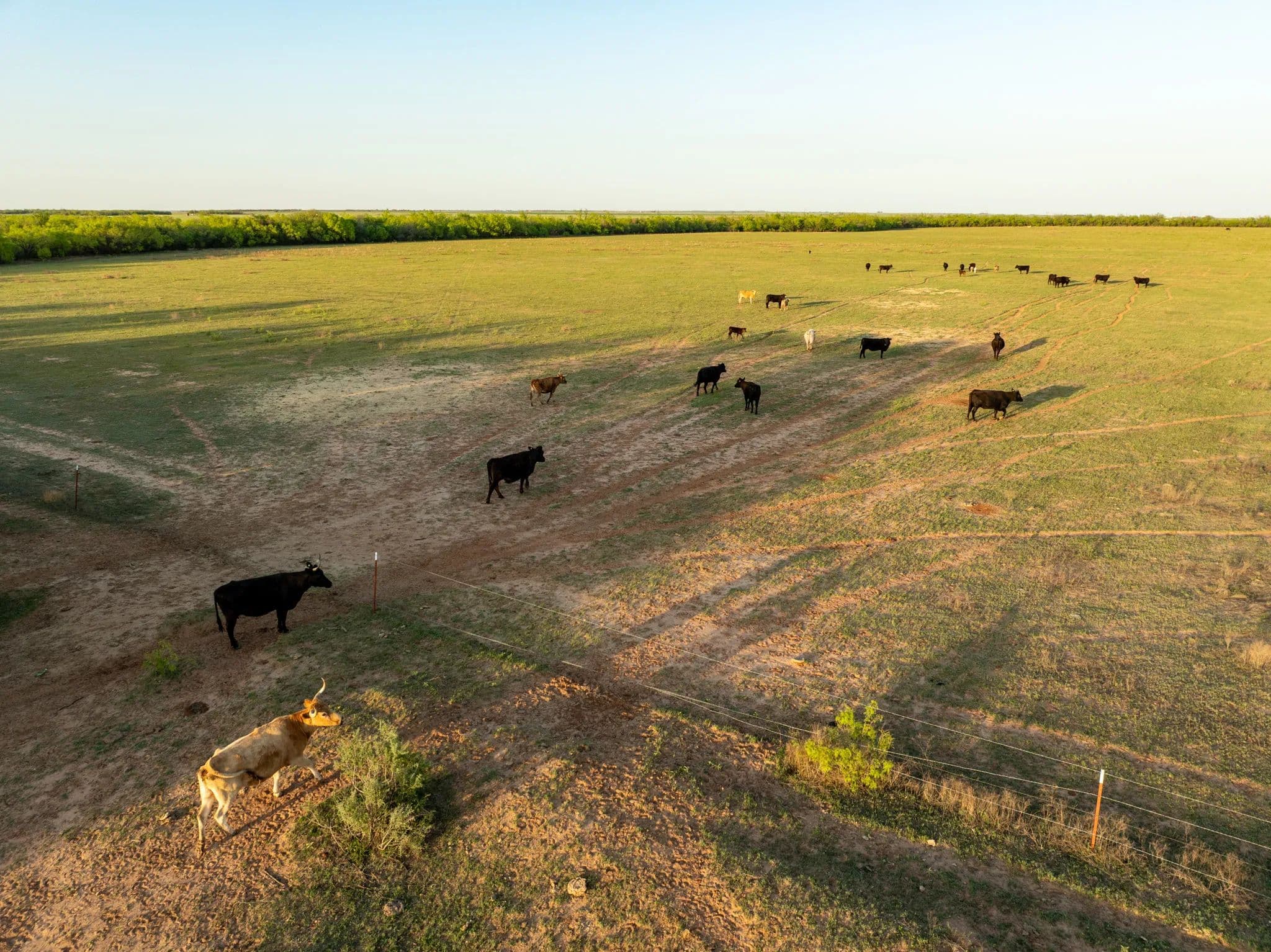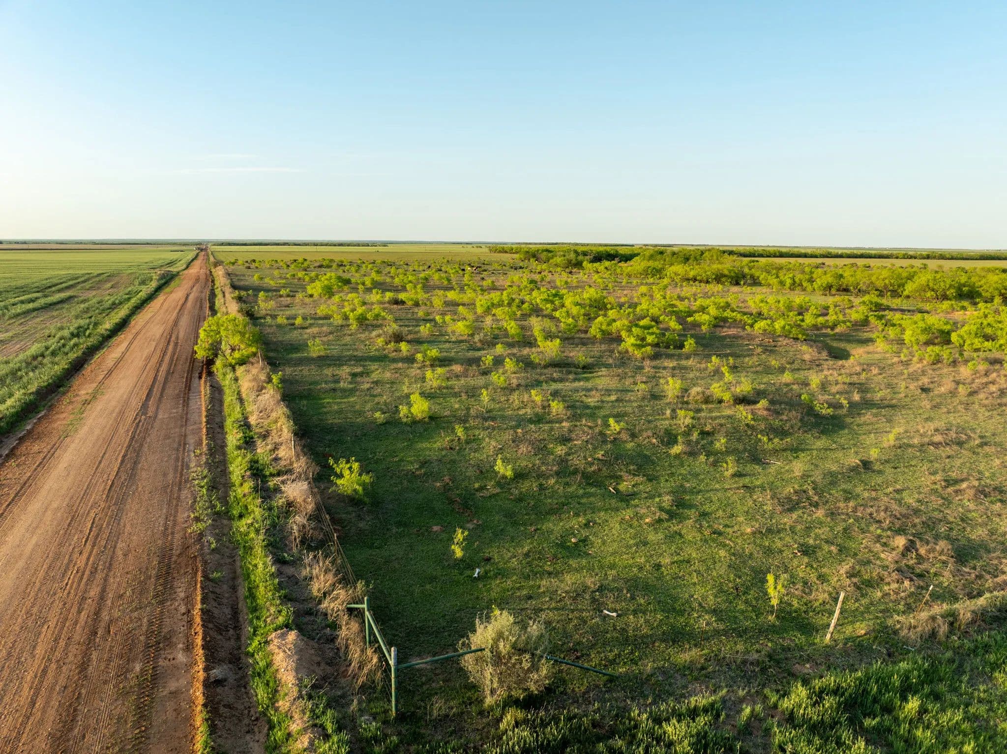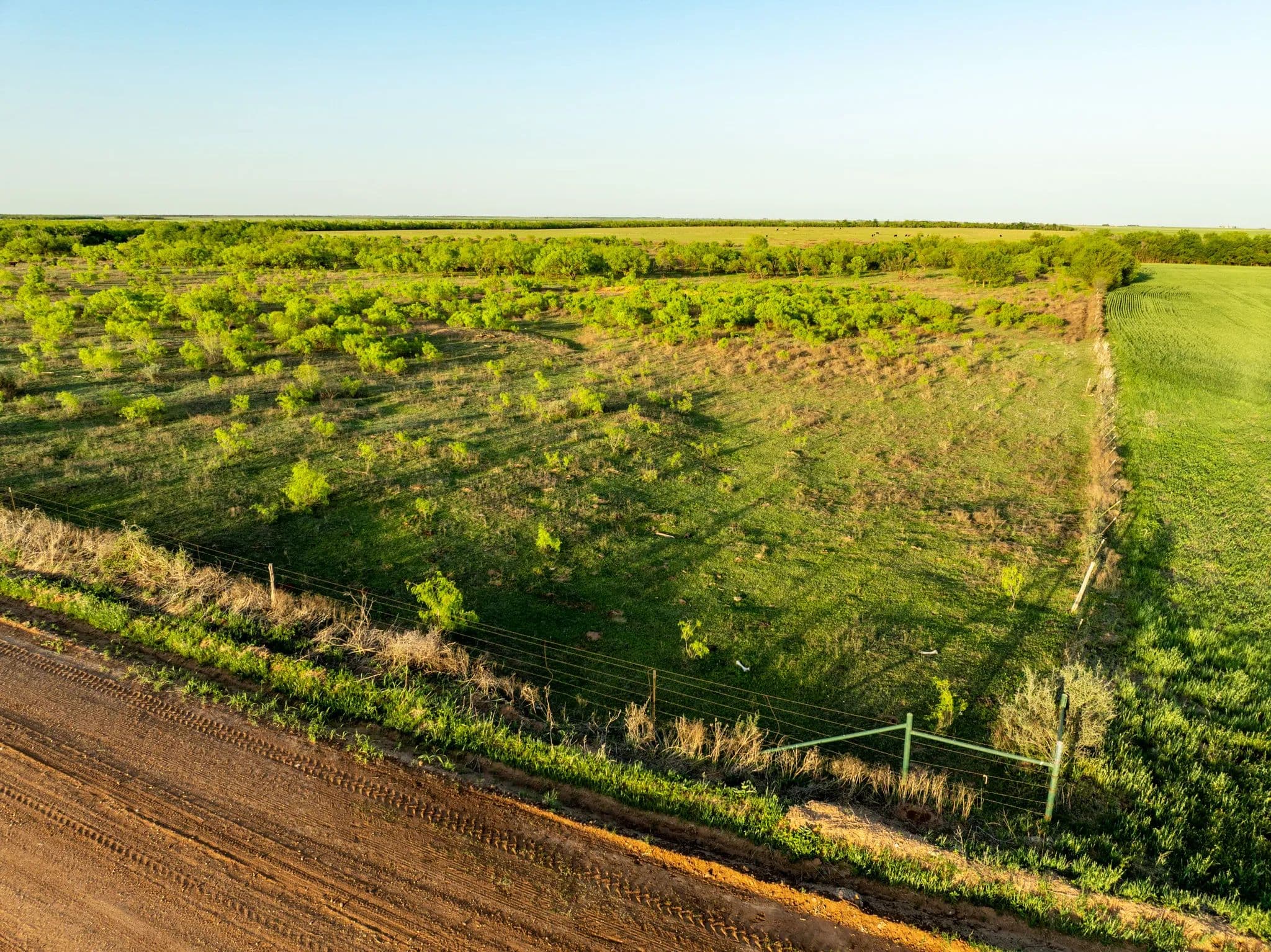 The native trees and Shrubs you can see in the pastures are Bull mesquites, Soap berry trees, Hackberry trees, Lote bush and a few willow trees along the creek.