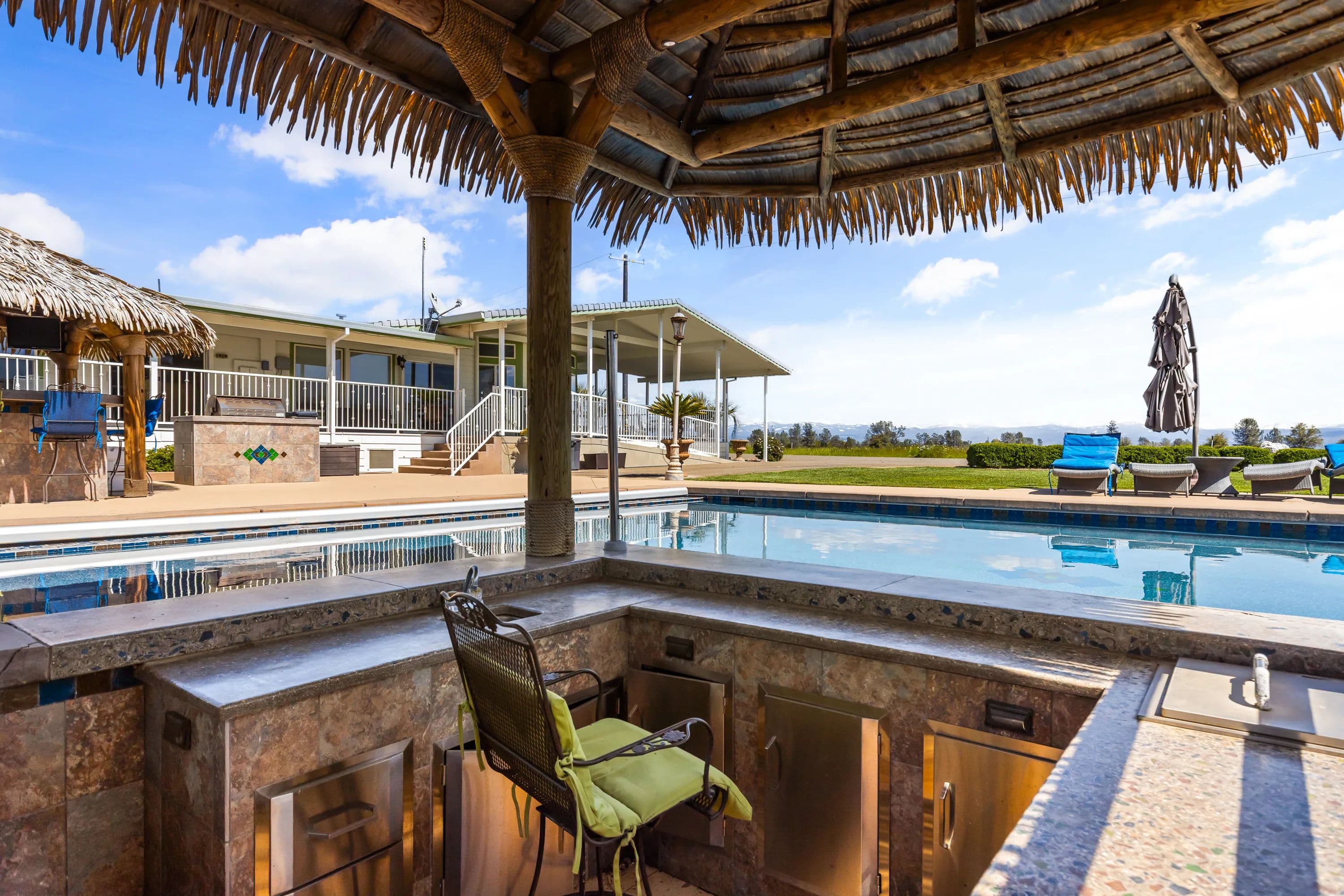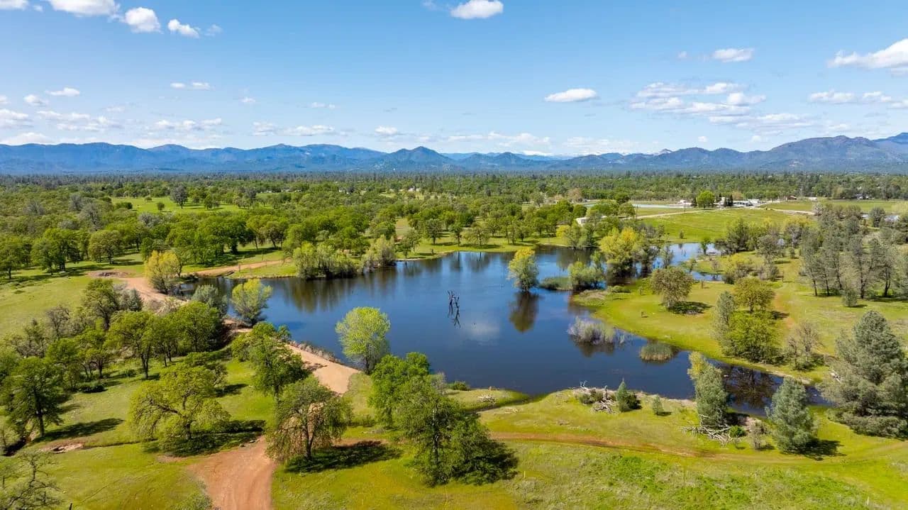 Just ten minutes east of Redding, California, lies the 160-acre Seven Lakes Ranch in Shasta County – a true hunting and fishing paradise. The property’s landscape is characterized by its expanse of beautiful lakes that offer both a refreshing retreat during Redding’s warm summers and endless recreational opportunities. Seven Lakes Ranch offers a unique blend of remote privacy and convenient access to town. A defining feature of this ranch is its exceptional water resource, boasting four substantial lakes. This abundance of water affords excellent outdoor recreational opportunities such as hunting waterfowl and upland birds, bass fishing, horseback riding, paddleboarding, canoeing, and leisurely strolls, as well as providing irrigation for livestock or other uses. There is an underground irrigation infrastructure and two wells. There are three homes on the ranch offering a range of living options for friends/family or potential rental income. Escape to a serene paradise with the main 2,595 SF three-bedroom, two bathroom manufactured home with a wrap-around covered deck overlooking one of the lakes. The entirety of the home from the bedrooms, kitchen, living/dining room, and bathrooms are filled with natural light throughout. There is a large kitchen with an island, gas range, and all the necessary household kitchen appliances. The primary bathroom features a sunken tub, shower, and dual sinks. The additional homes are a custom-built 1,994 SF three-bedroom, two-bathroom home that also enjoys a lake view and a 1,023 SF two-bedroom, one-bathroom home. The landscaping and custom-built-in pool at Seven Lakes Ranch are a dream. With a sunken wet bar with in-pool bar stools, fountain, multiple gazebos, outdoor shower, and complete outdoor kitchen with built-in grill, it’s ideal space for entertaining family and friends. The property is easily accessible with paved roads throughout. There are multiple garages with RV roll-up doors, barns, shop, and an owned solar system. A ranch with plenty of space for ranch equipment, recreational toys, tools, and vehicles. Come discover the pristine natural beauty of Seven Lakes Ranch!