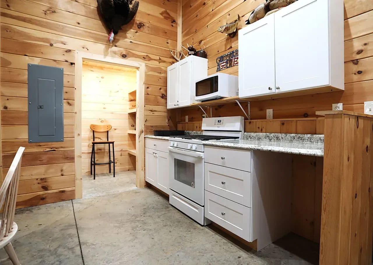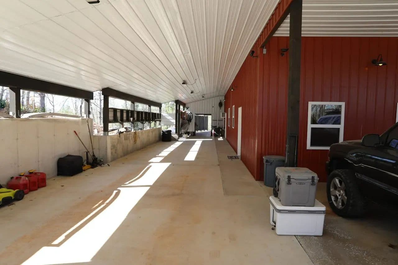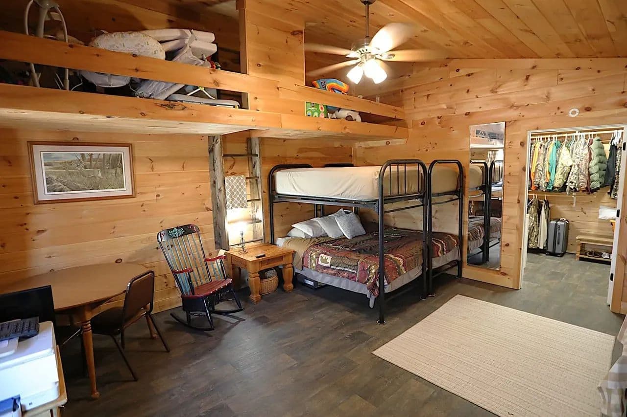 Custom Barndominium w/ private Current River access for sale in Van Buren, Missouri - This unique and versatile build is spacious, efficient and low maintenance, offering a variety of living arrangements for the full time resident or the weekend escape. Located in River Running subdivision, you enjoy private, gated access to one of the top 3 gravel bars along the middle Current, in addition to paid Deer Run privileges. There are essentially 2 homes under one roof: The rear portion of the home offers a full kitchen, living room, formal dining room and an office that could be utilized as another bedroom. The primary bedroom features a generous combo bath / closet complete with WD hookups and ample storage. The river side of the home is set up for river weekends and entertaining, with an additional full kitchen, large living area and 2 more guest suites with full baths and built in bunks easily accommodating 10+ guests. Approx. 2500ft of covered parking for your toys.