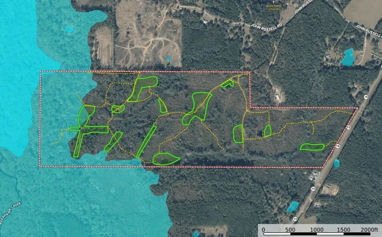 Whether you're after trophy whitetail deer, gobbling turkeys, or small game, this property has it all. The gently rolling terrain provides a perfect mix of cover, browse, and open areas to support abundant wildlife. With strategically placed food plots and existing stands, it's truly a turnkey hunting tract.