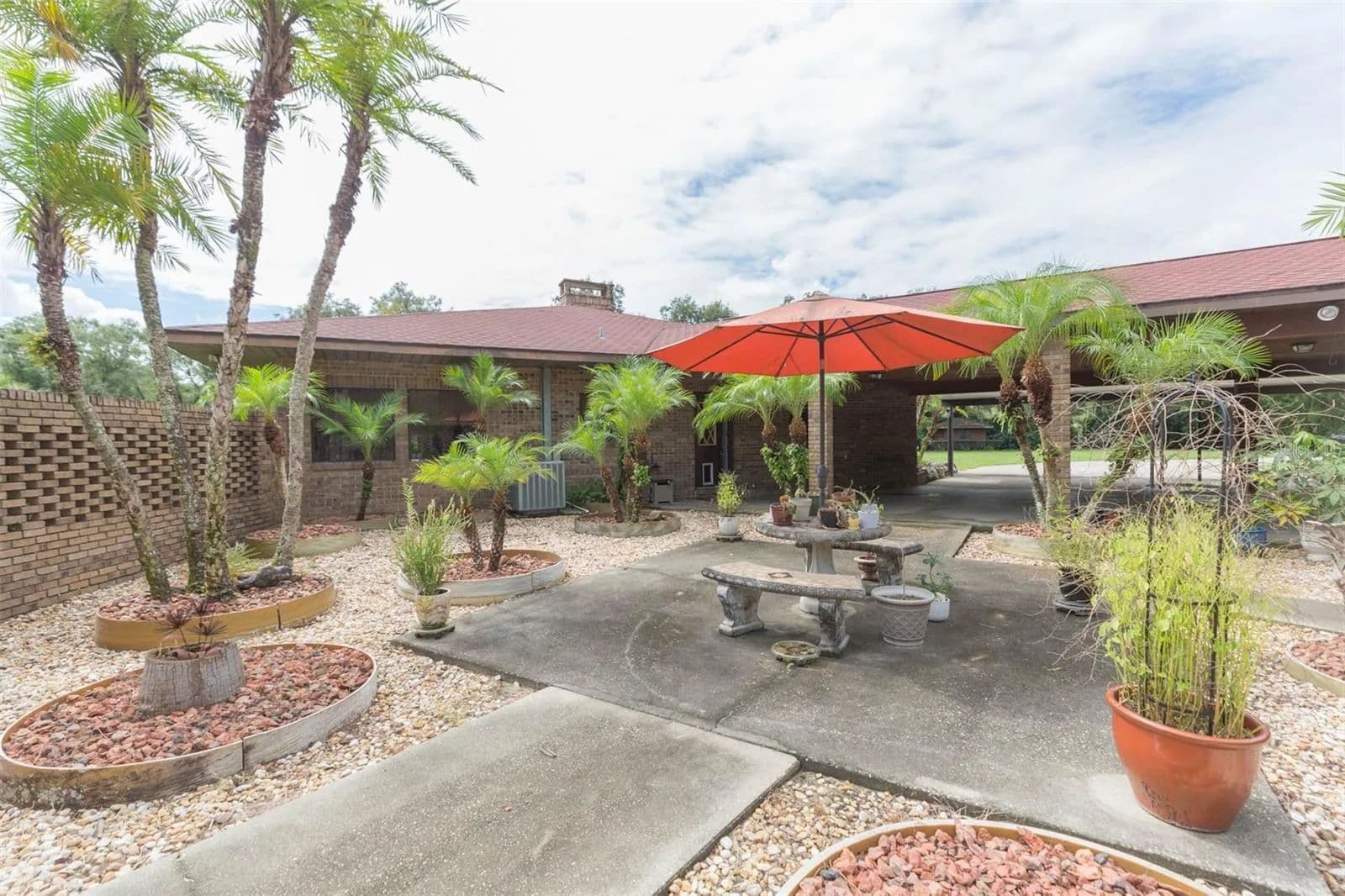 Once in a lifetime legacy property now being offered. Take advantage of this chance to own an 11+ ACRE urban oasis. Never before offered for sale, this unique property includes a private pond, gated access, privacy, workshop, and more. All conveniently located adjacent to the Dade City limits. Local schools and hospital are within 1.5 miles. The classic brick constructed home features a floor plan focused on the large primary bedroom and the spacious great room complete with wood burning fireplace. The 2nd bedroom is offered in an attached wing that would be perfect for an IN-LAW SUITE, hobby room, large home office, student suite, or anyone who needs freedom to come and go. All interior rooms are spacious and oversized with features including solid wood interior doors, "heart pine" wood accent walls and ceilings, custom brick wood burning fireplace, and vaulted ceilings. Enjoy cooking outs and entertaining guests in the huge screen lanai area or enjoy a glass of wine with friends in the private courtyard. Finally, easily feed your guests in the oversized dining area large enough for 2 table settings. Maybe even cook fish for your guests which were caught in your very own private fish pond or sit in the lanai and enjoy the wild ducks and water birds as they come and go each morning and evening. Sale also includes a kennel and workshop with storage for grounds equipment. Super conveniently located just 5 minutes from the active downtown Dade City district offering year round street festivals, craft breweries, parades, car shows, shopping, restaurants, and a new kids splash park with playground