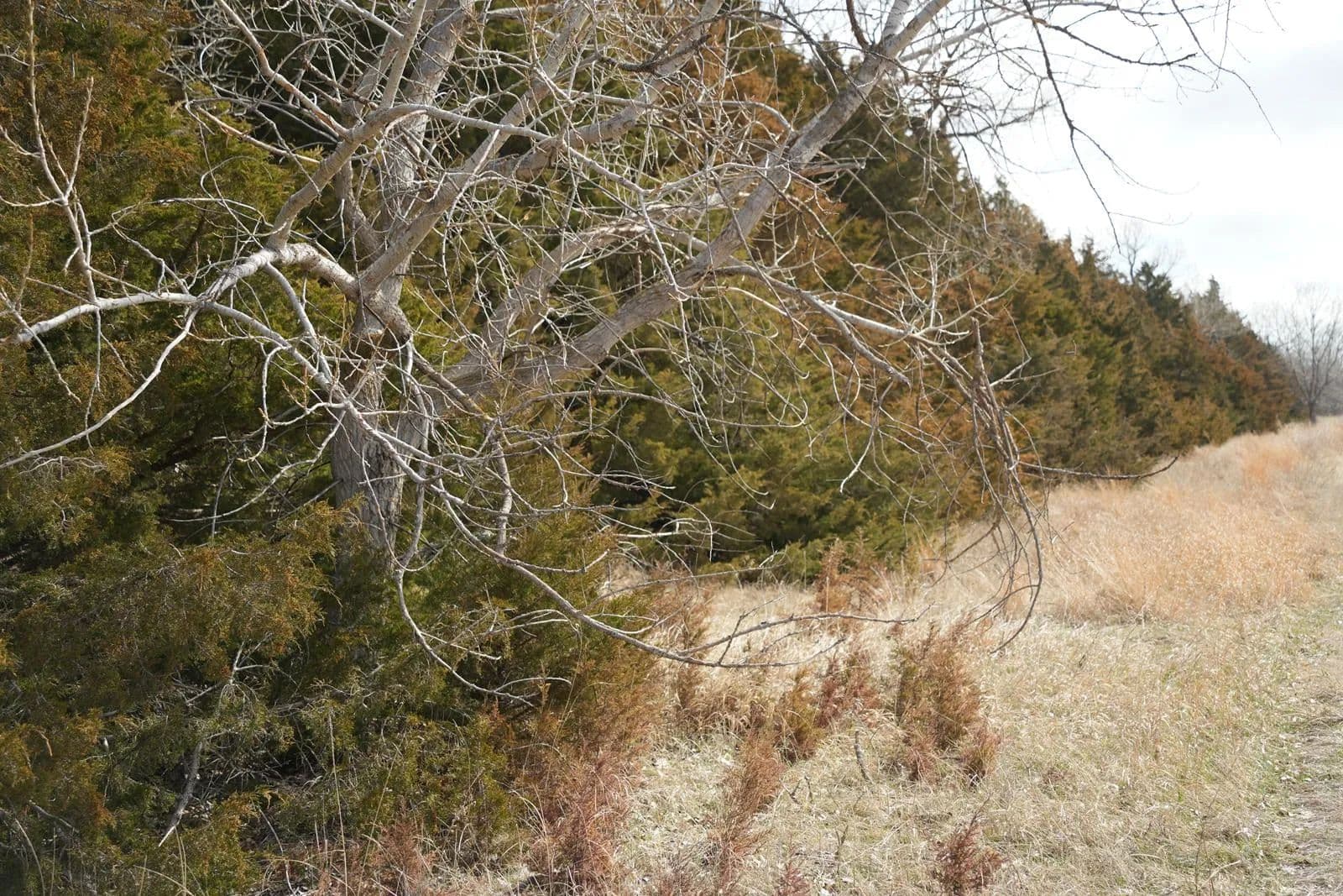 The property also shows strong potential for recreational use, particularly upland and deer hunting. There’s deer sign throughout the property, trails, rubs, and bedding areas are easy to spot, especially along the edge of the crop fields where deer regularly come to feed before retreating into the grass and timber for cover. Upland hunters will also appreciate the mix of grasses and edge habitat that draws in birds year after year.